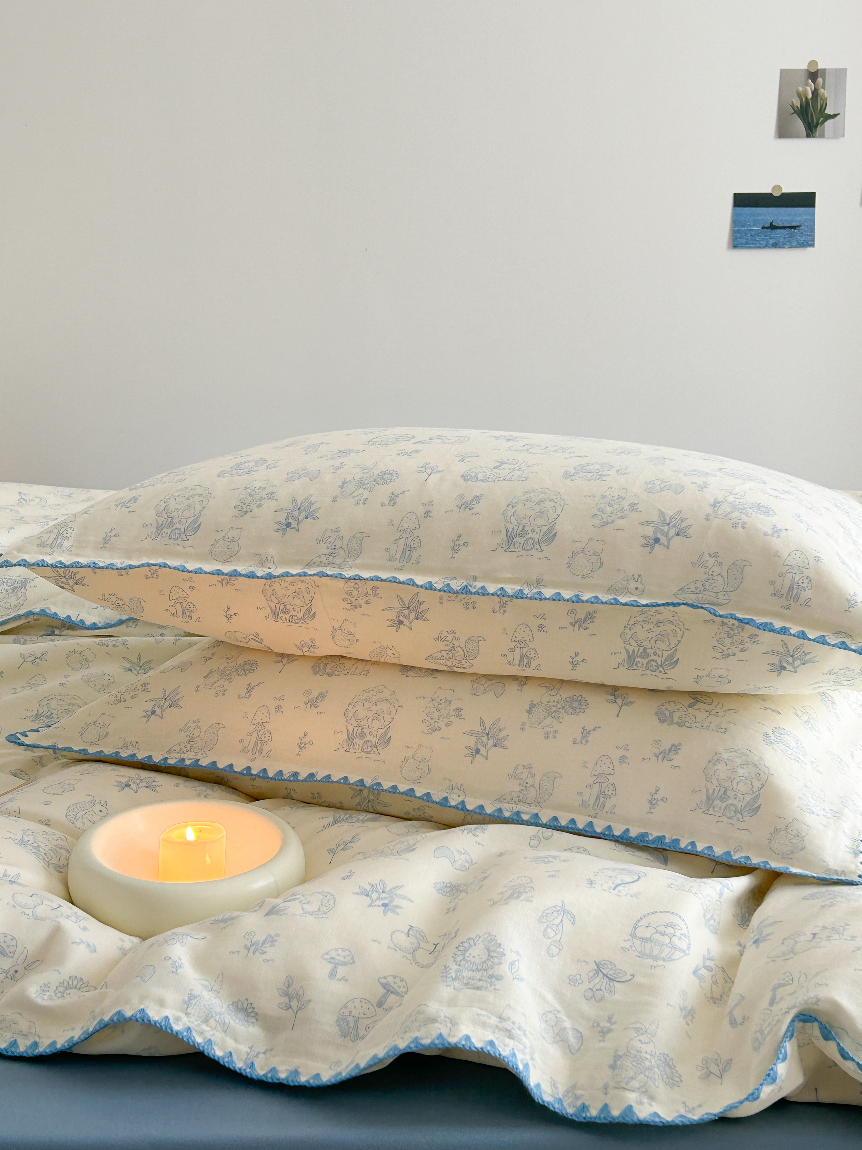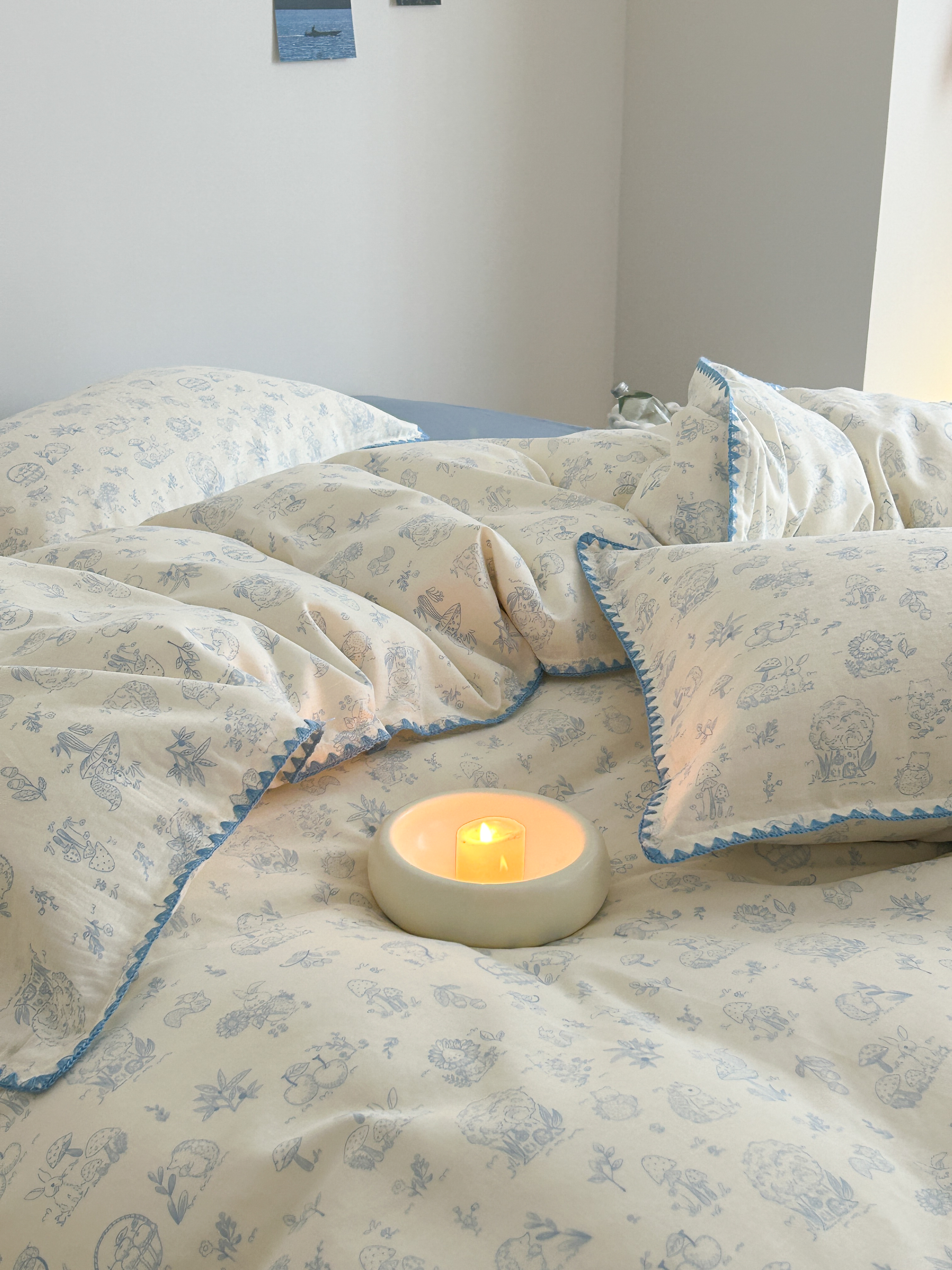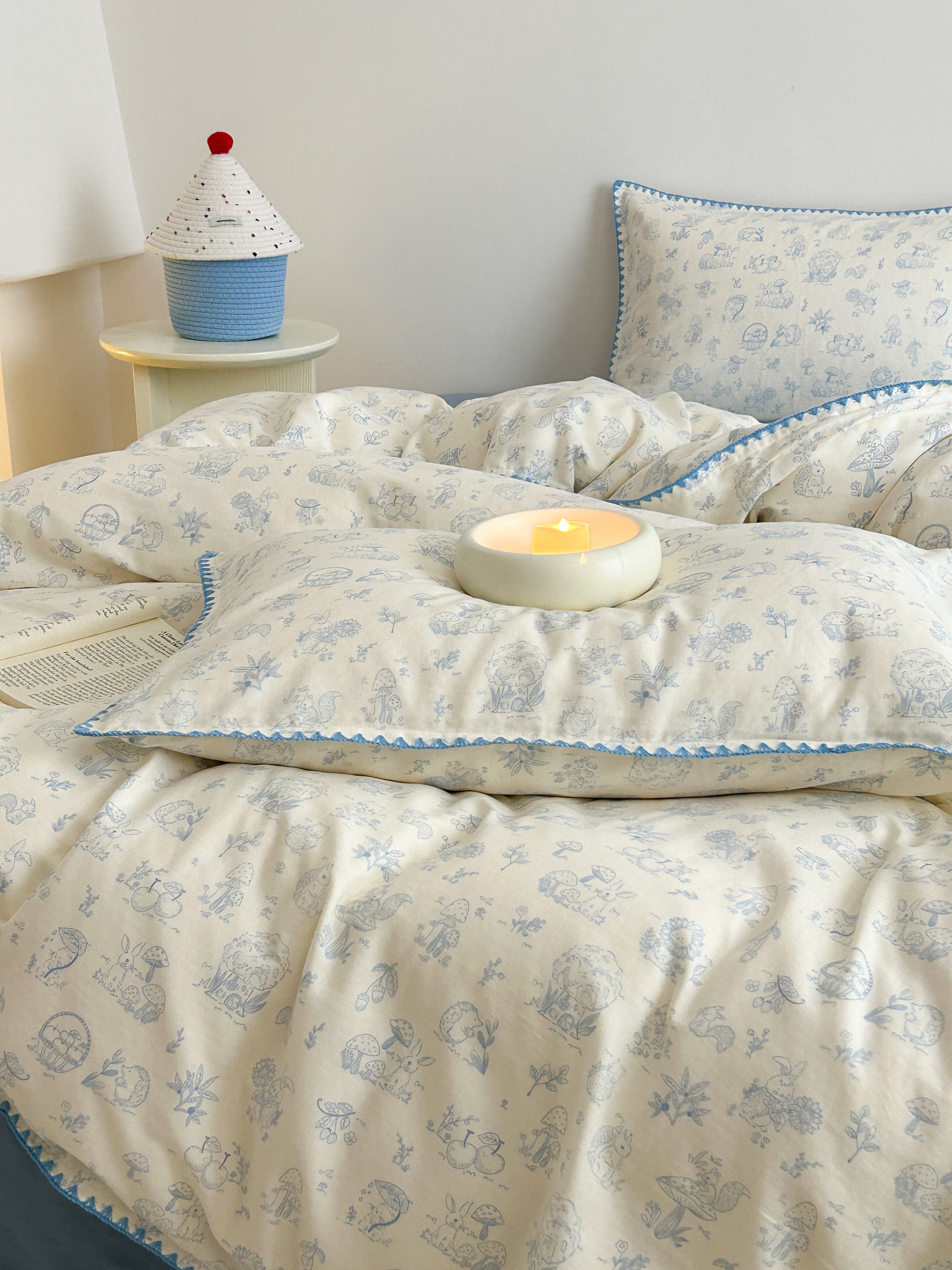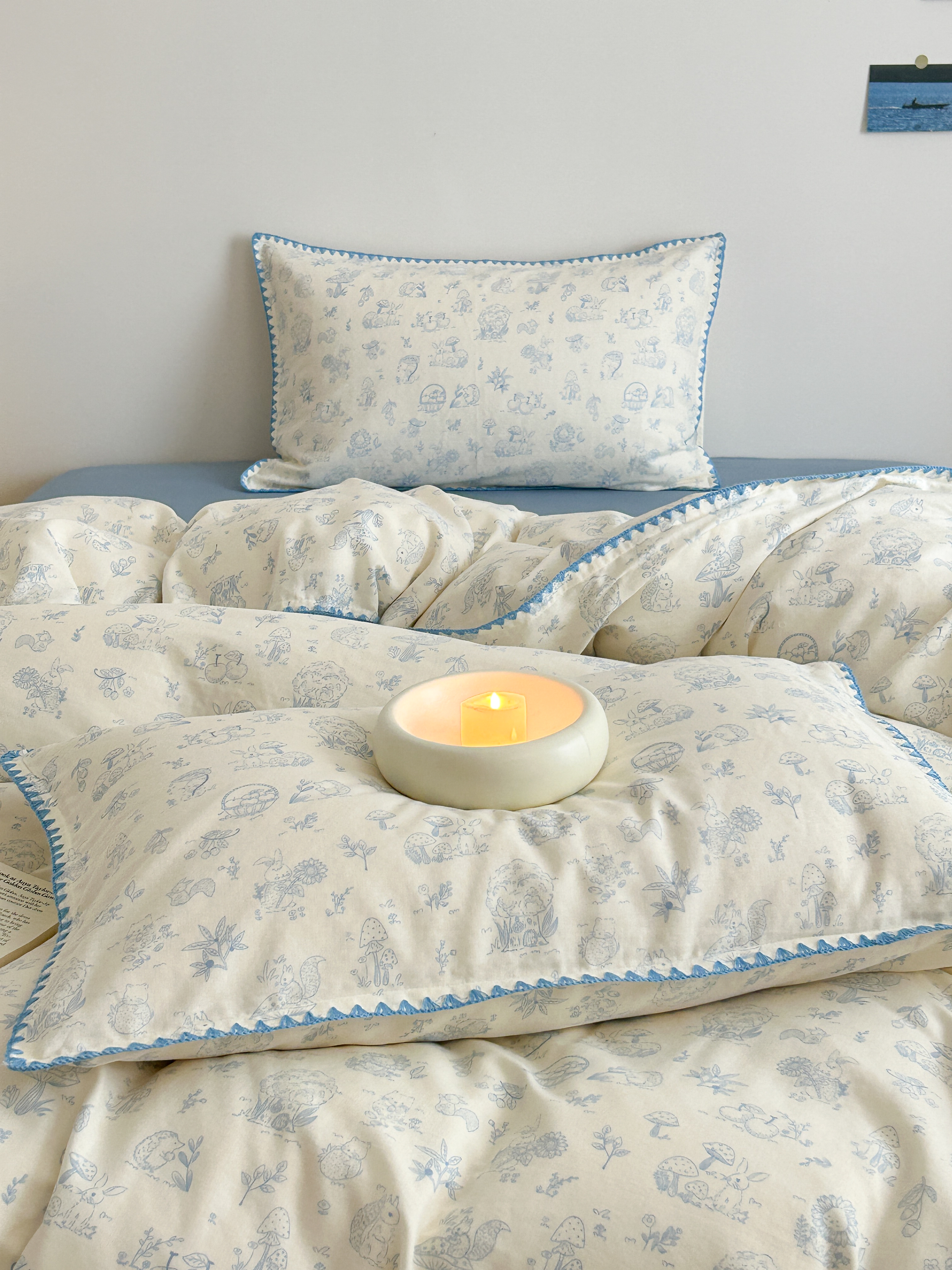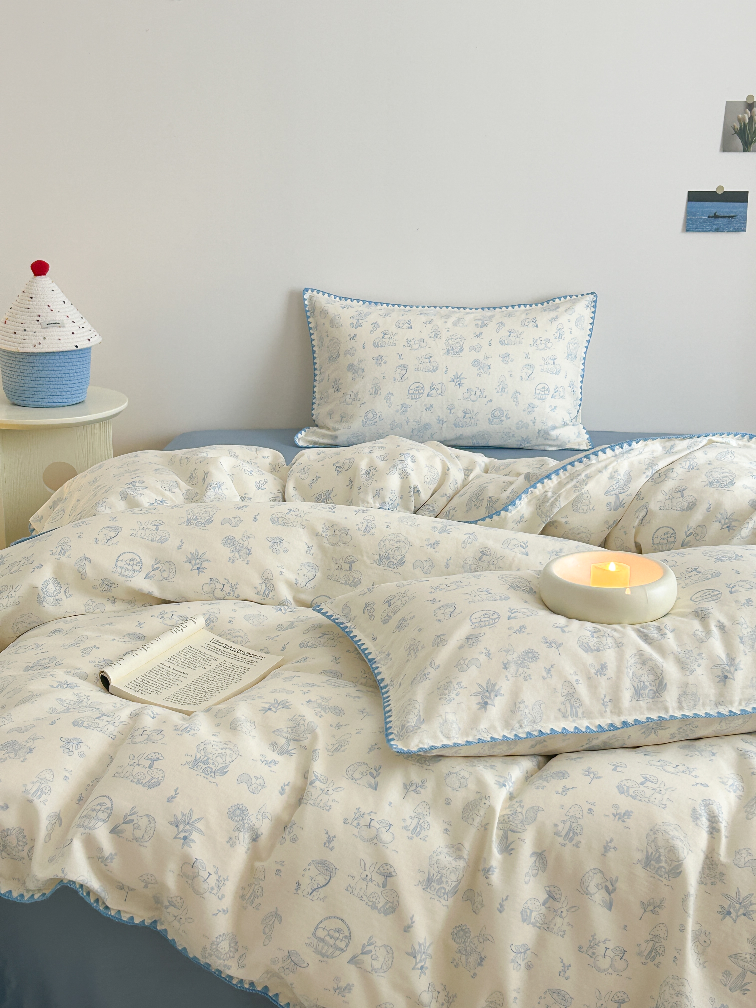 当前位置: 91家纺网 > 商品网购 > 床品套件 > 四件套 > 全棉普通四件套 > 2025新款春夏新品工艺款全棉双层纱贝壳边四件套 森林物语