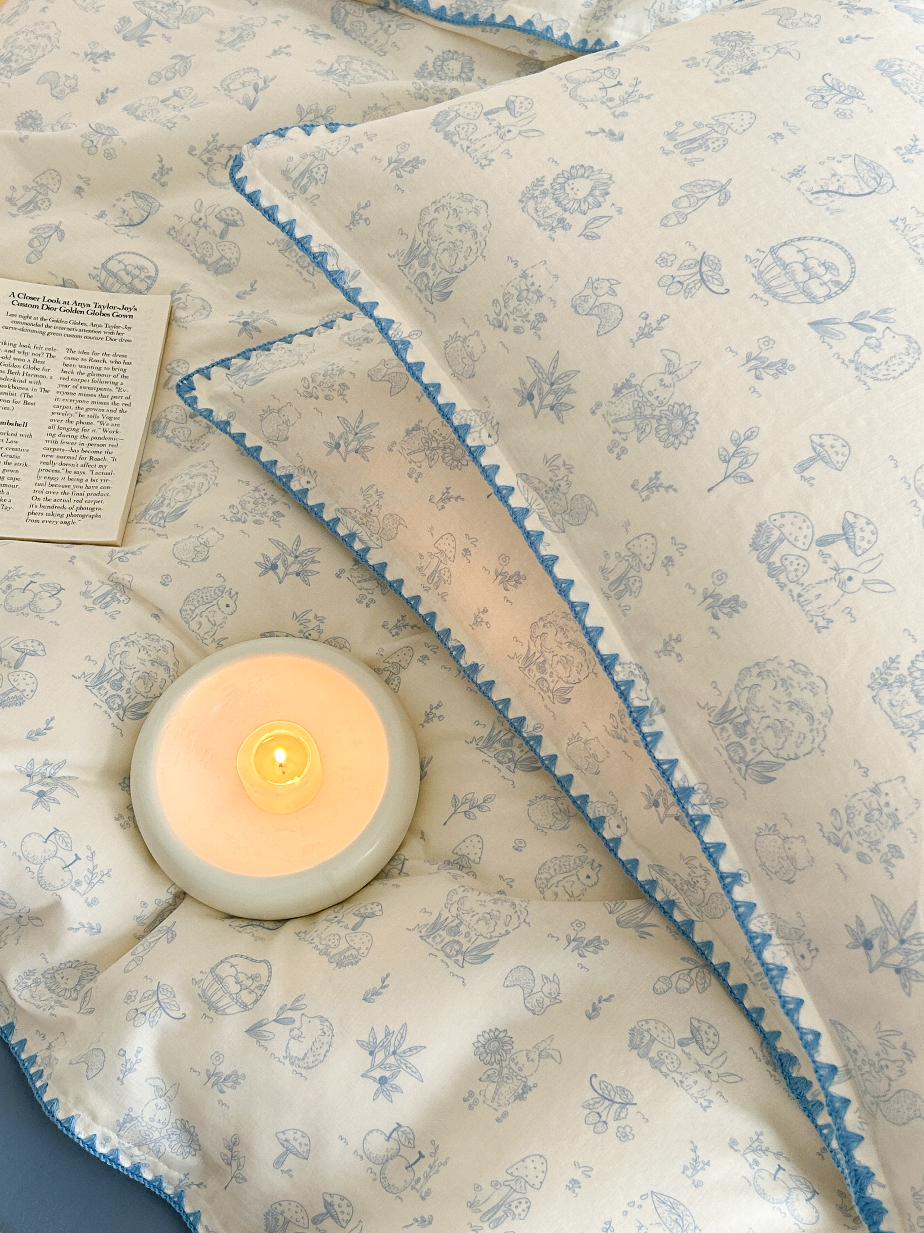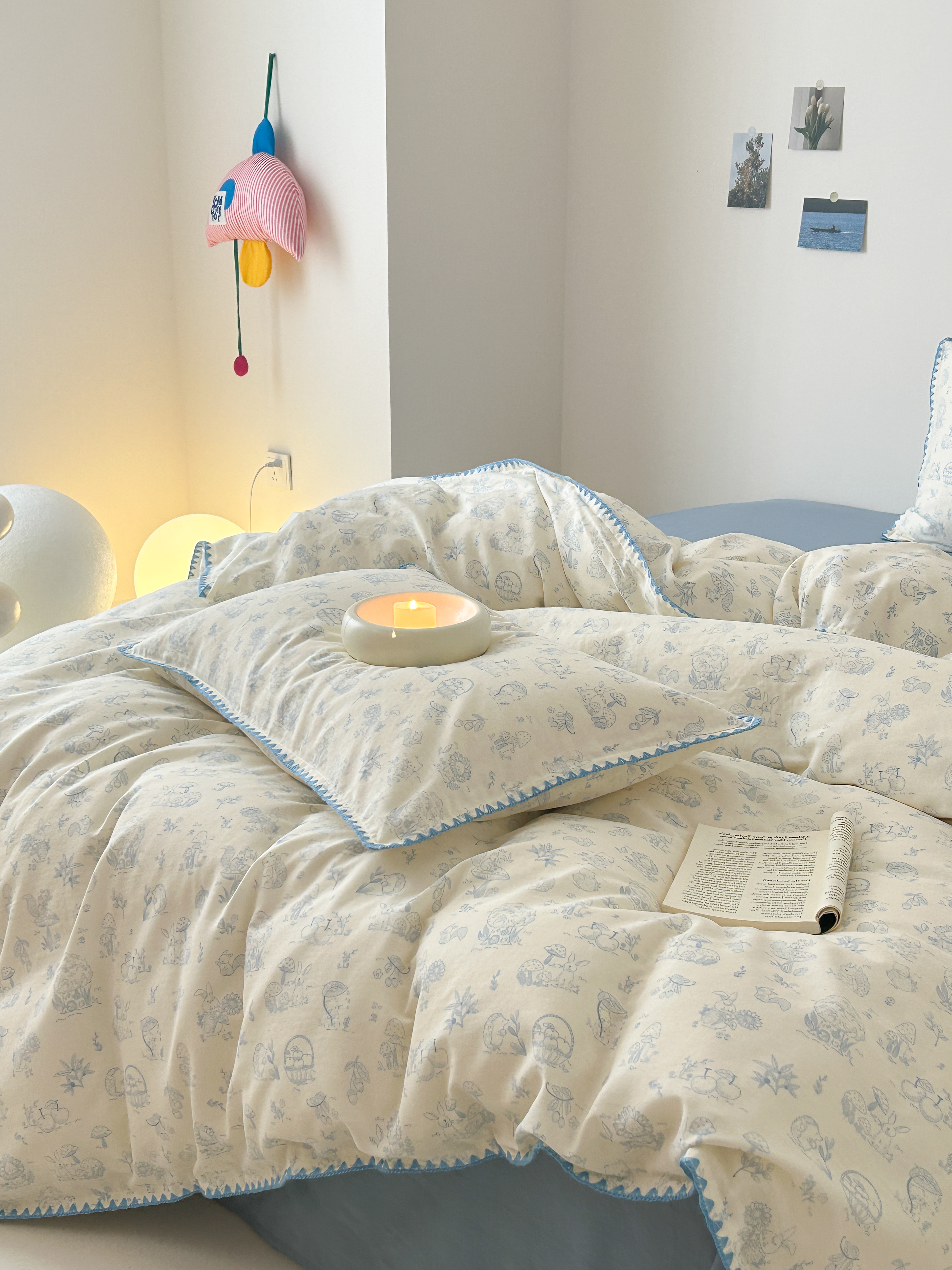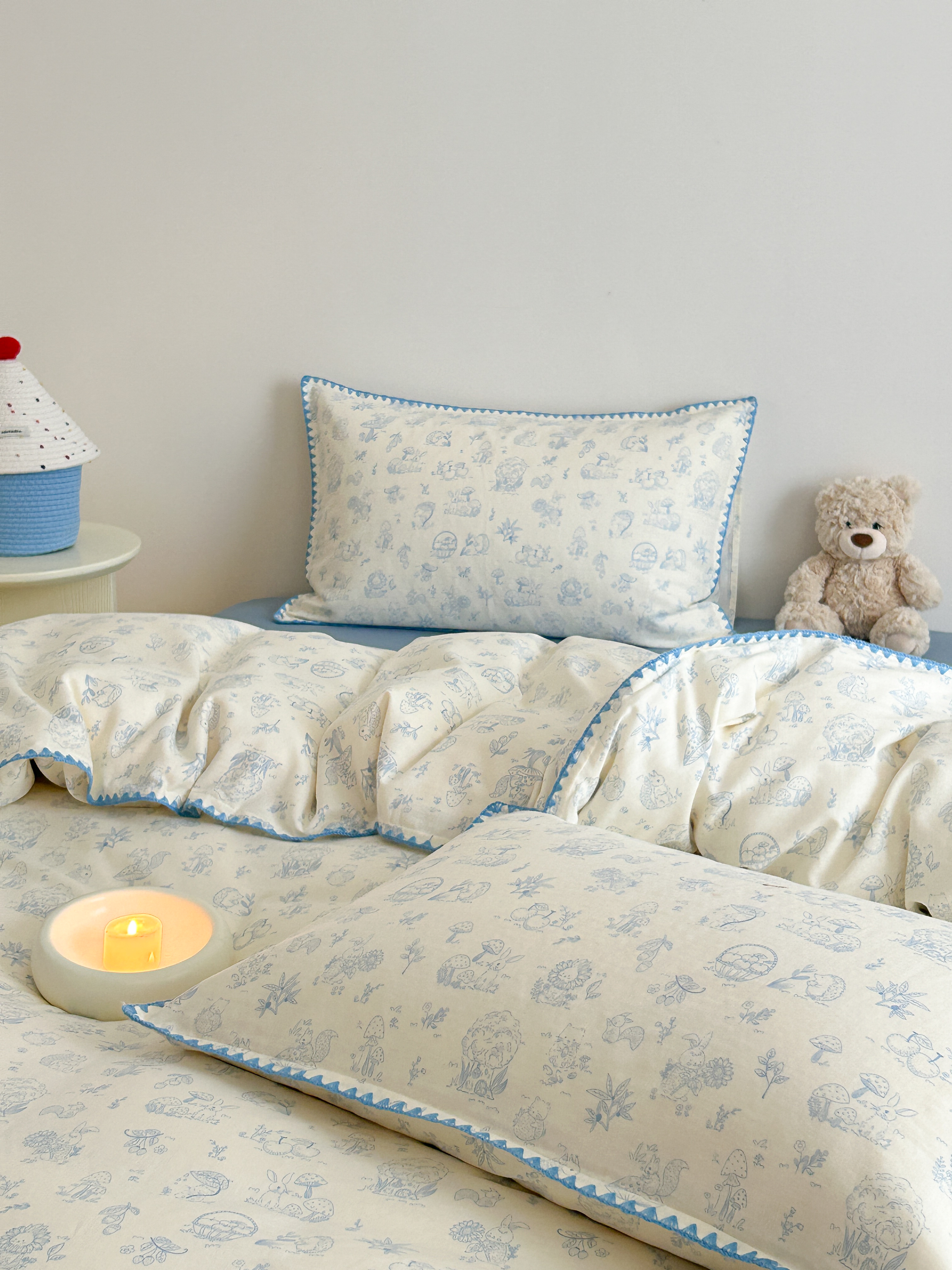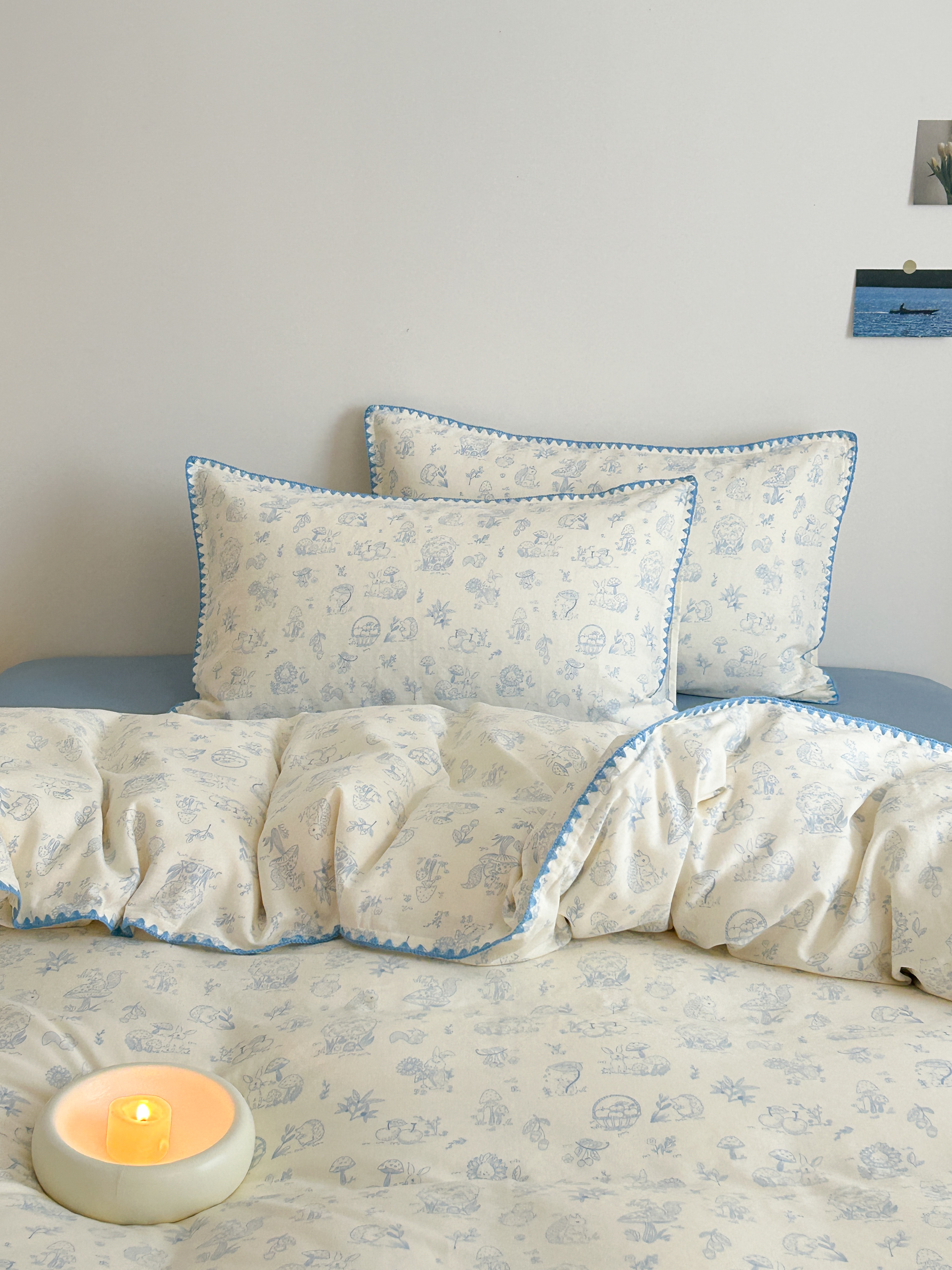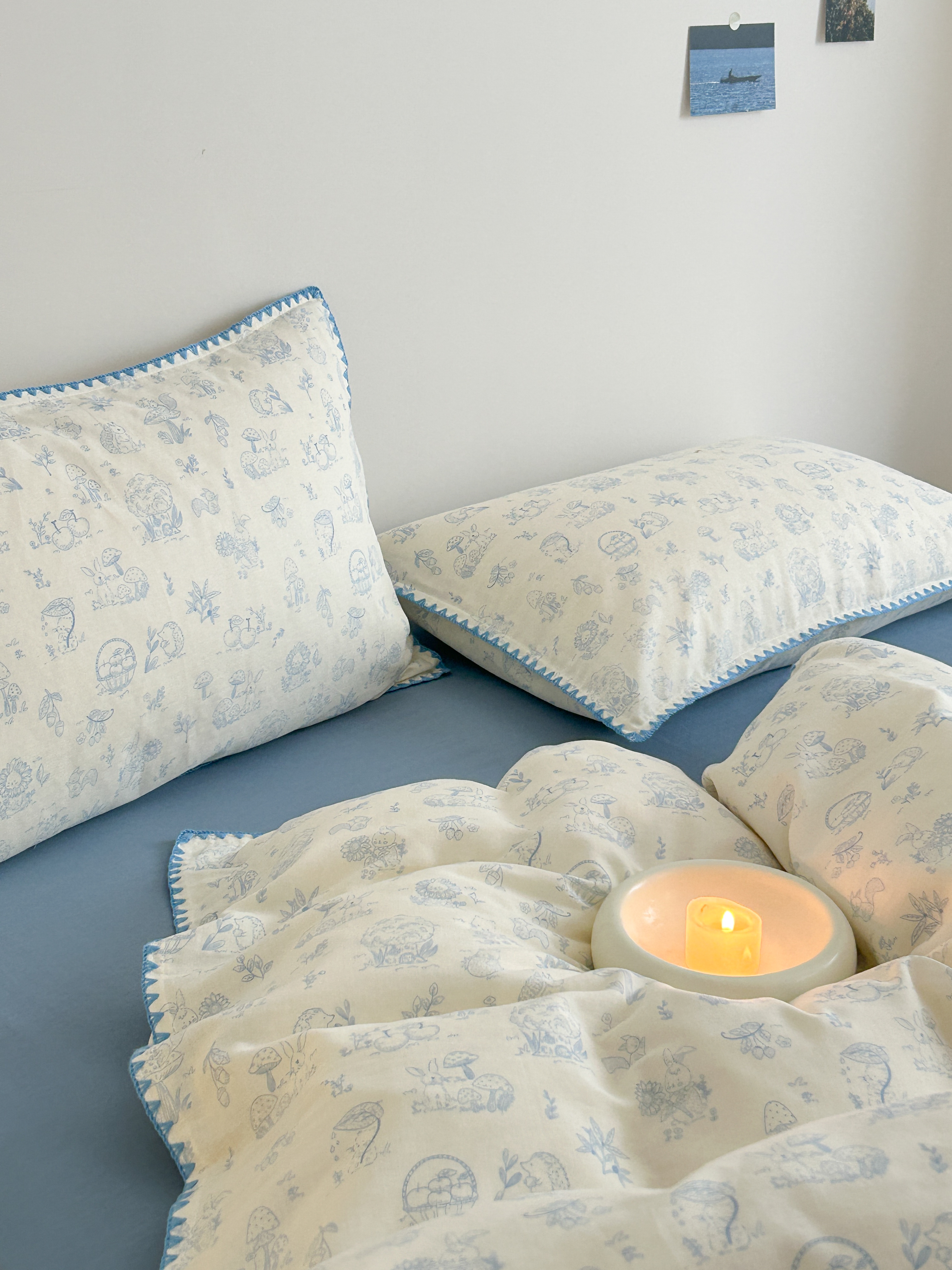 当前位置: 91家纺网 > 商品网购 > 床品套件 > 四件套 > 全棉普通四件套 > 2025新款春夏新品工艺款全棉双层纱贝壳边四件套 森林物语