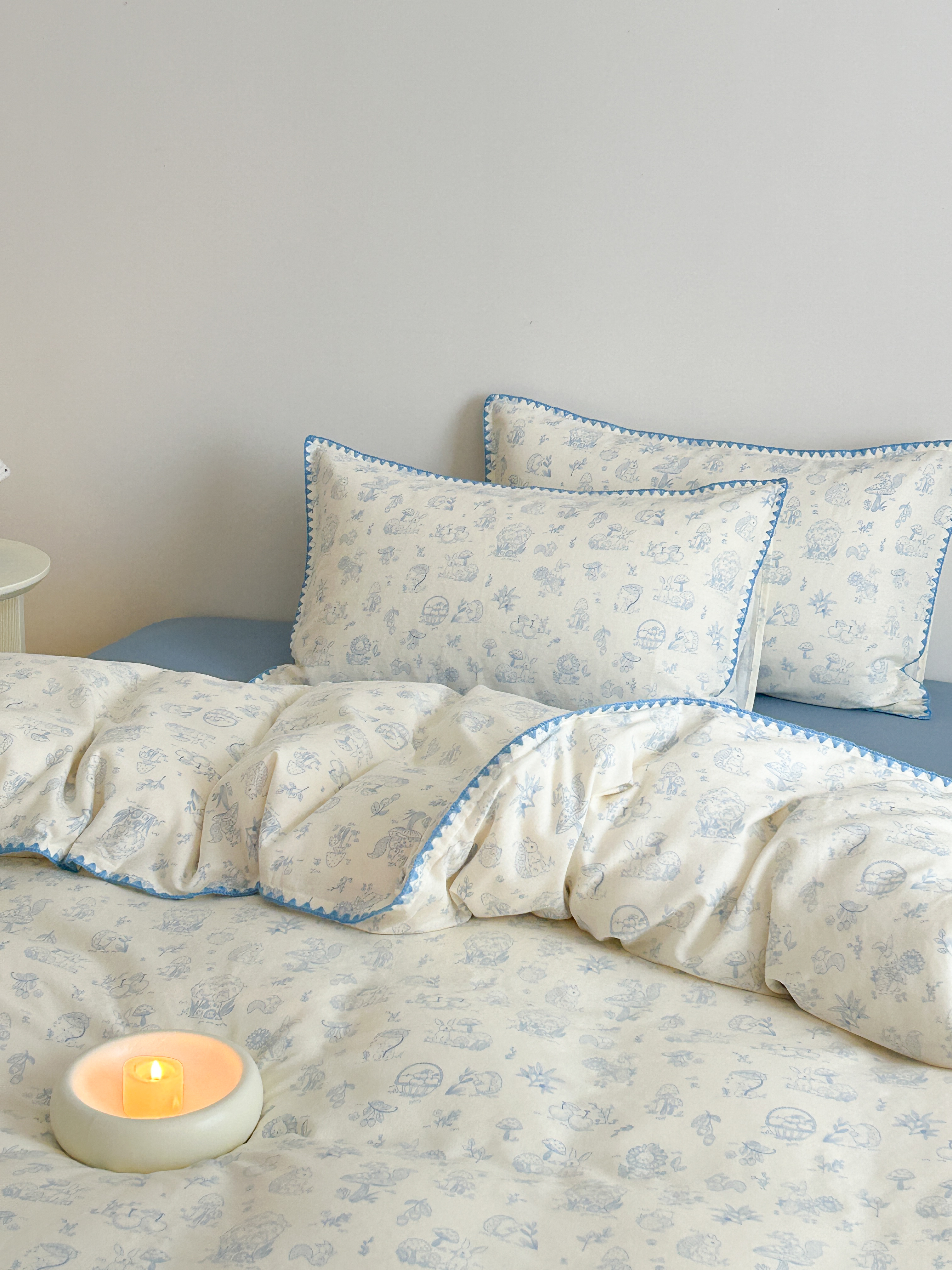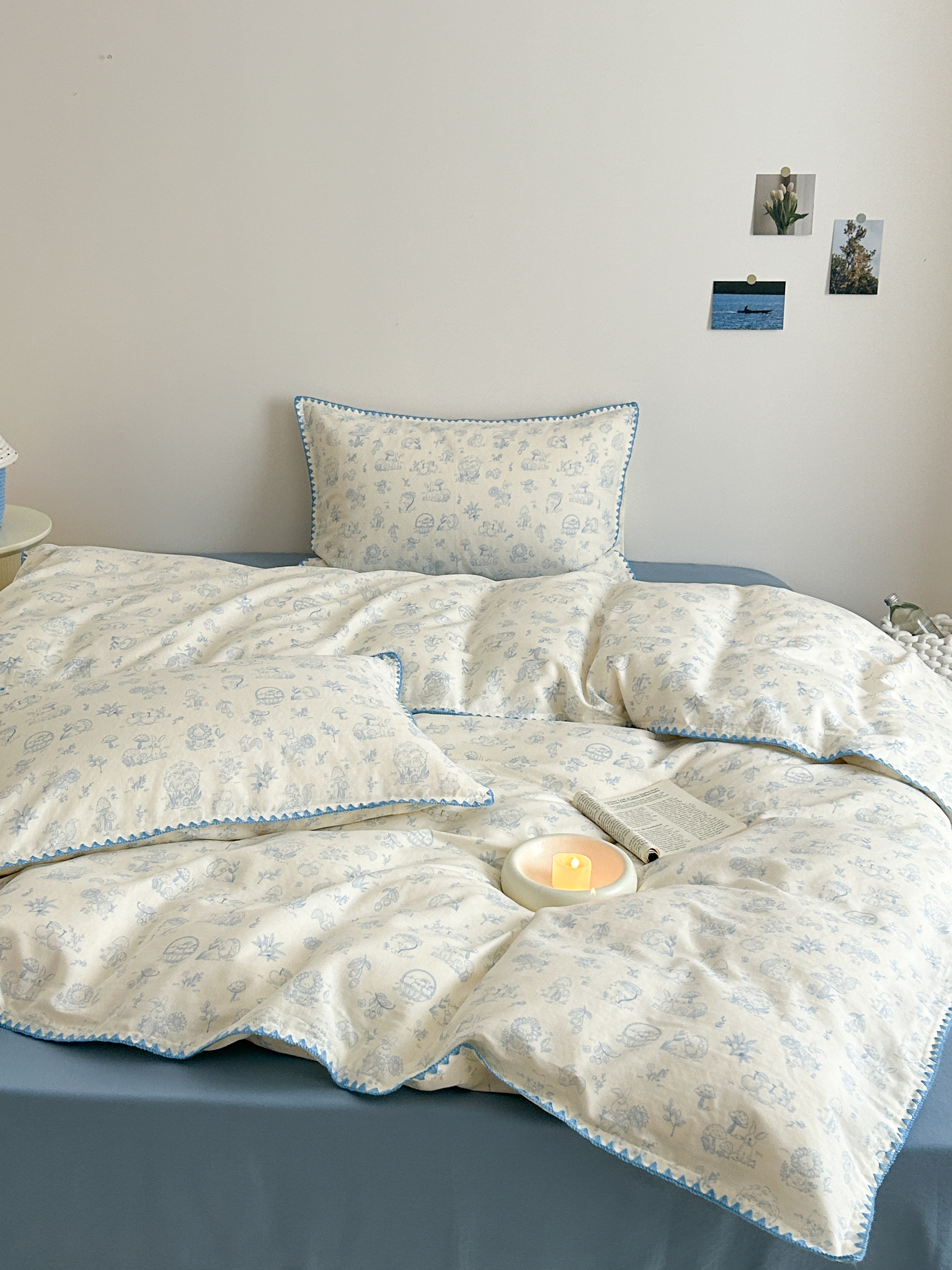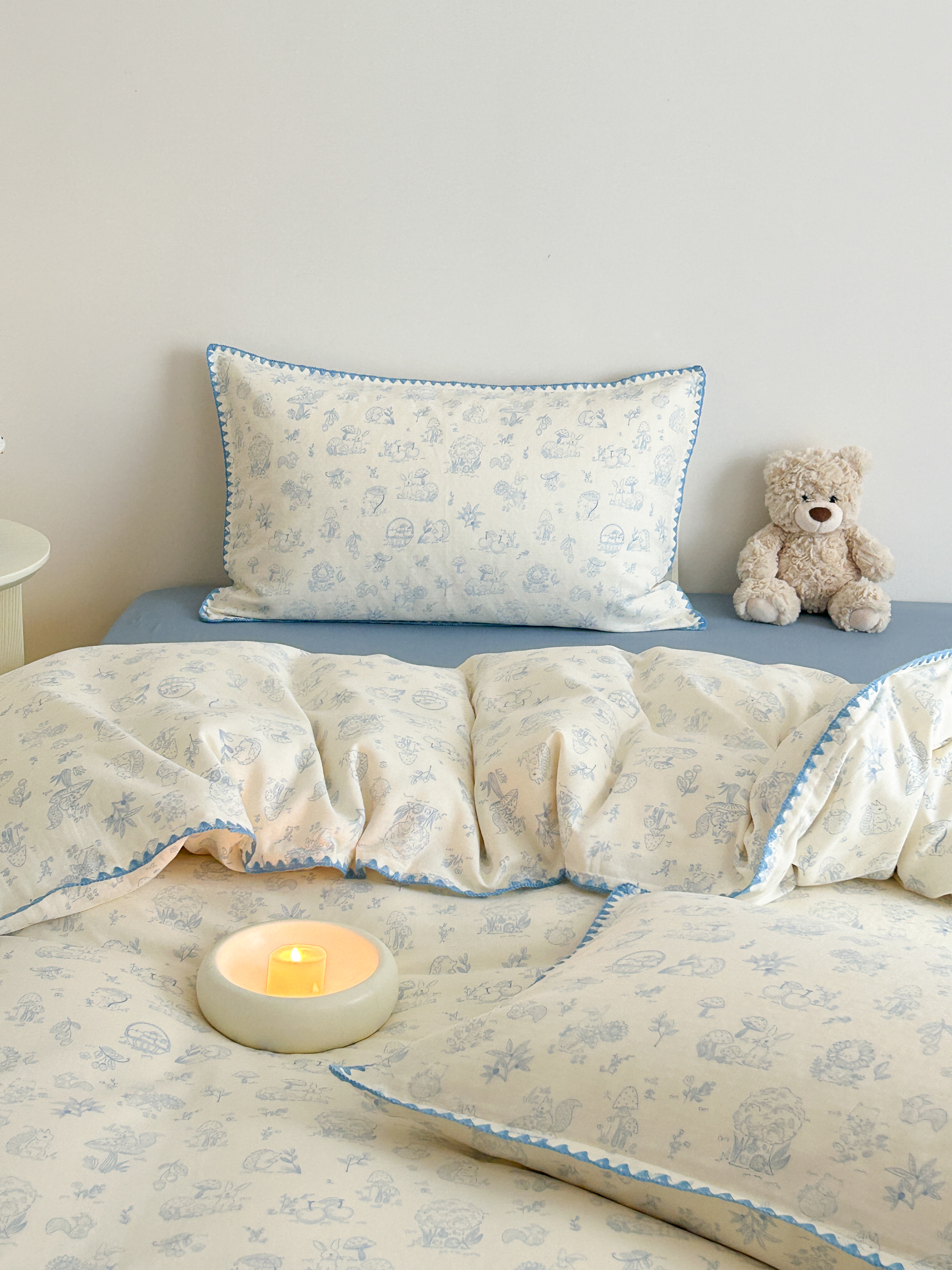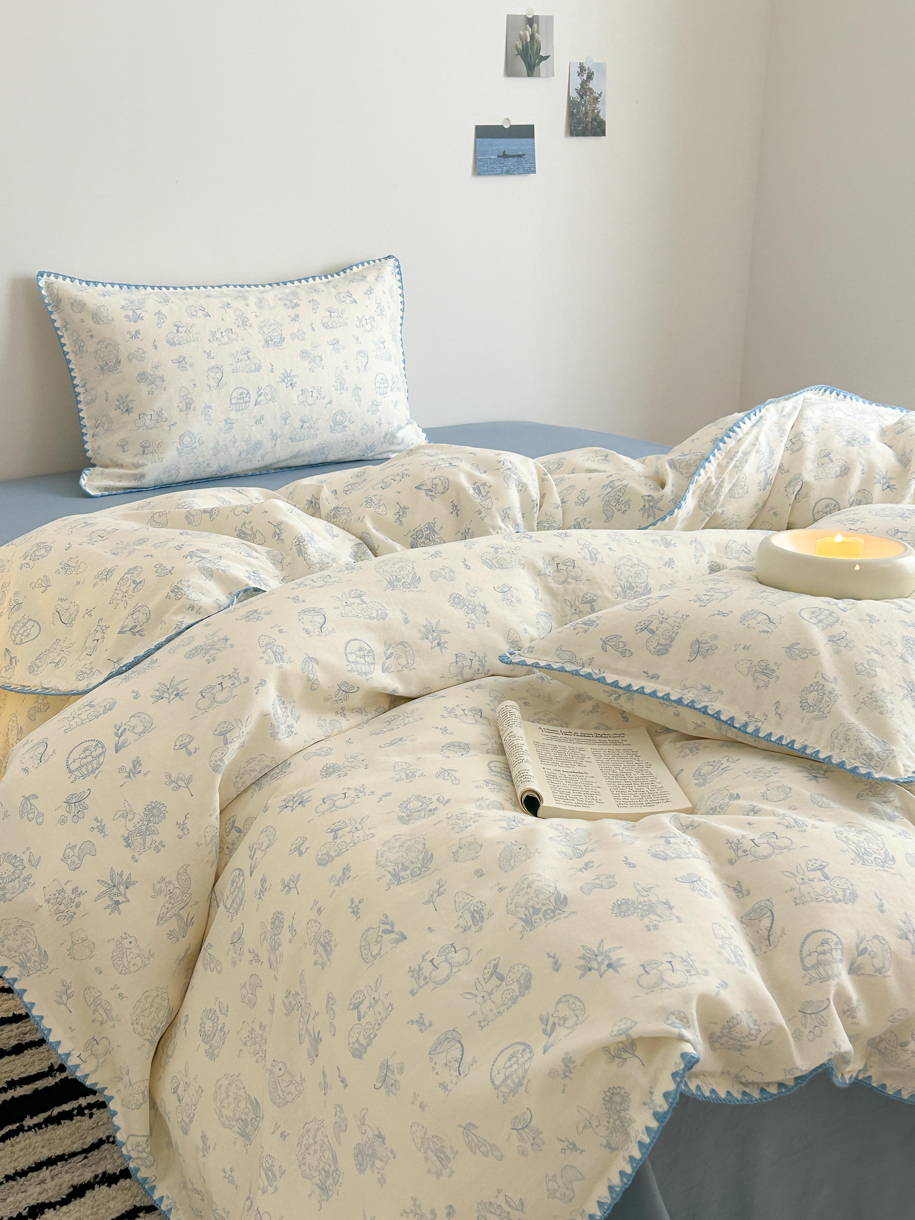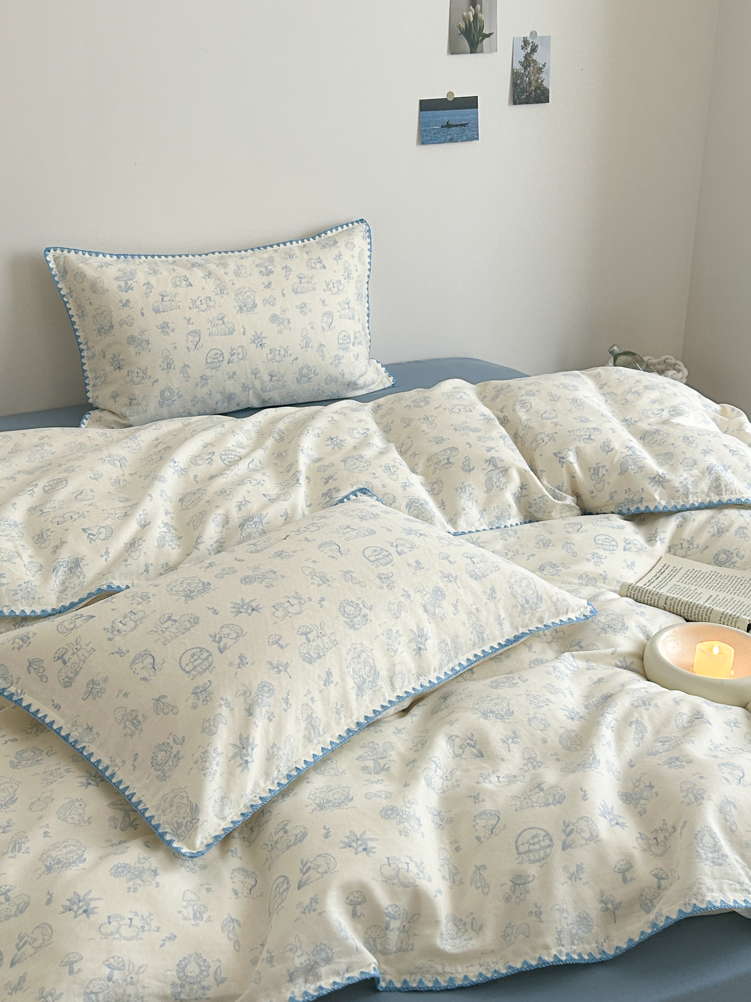 当前位置: 91家纺网 > 商品网购 > 床品套件 > 四件套 > 全棉普通四件套 > 2025新款春夏新品工艺款全棉双层纱贝壳边四件套 森林物语