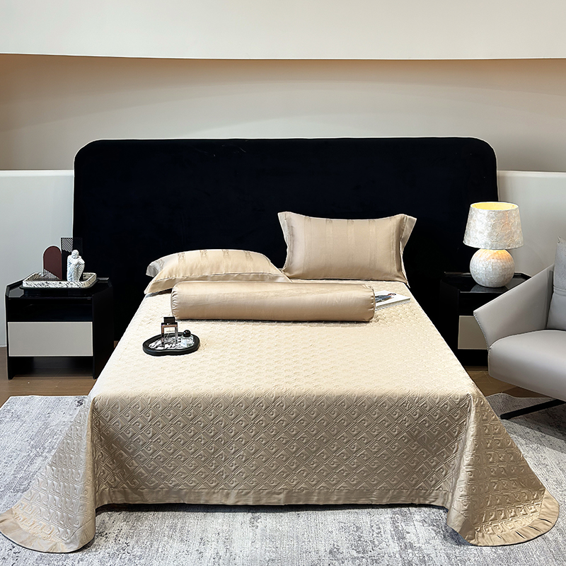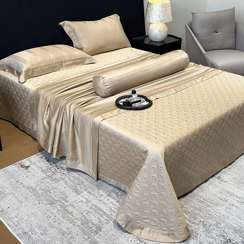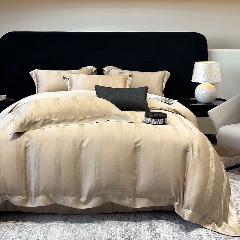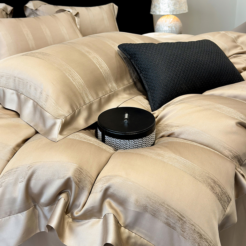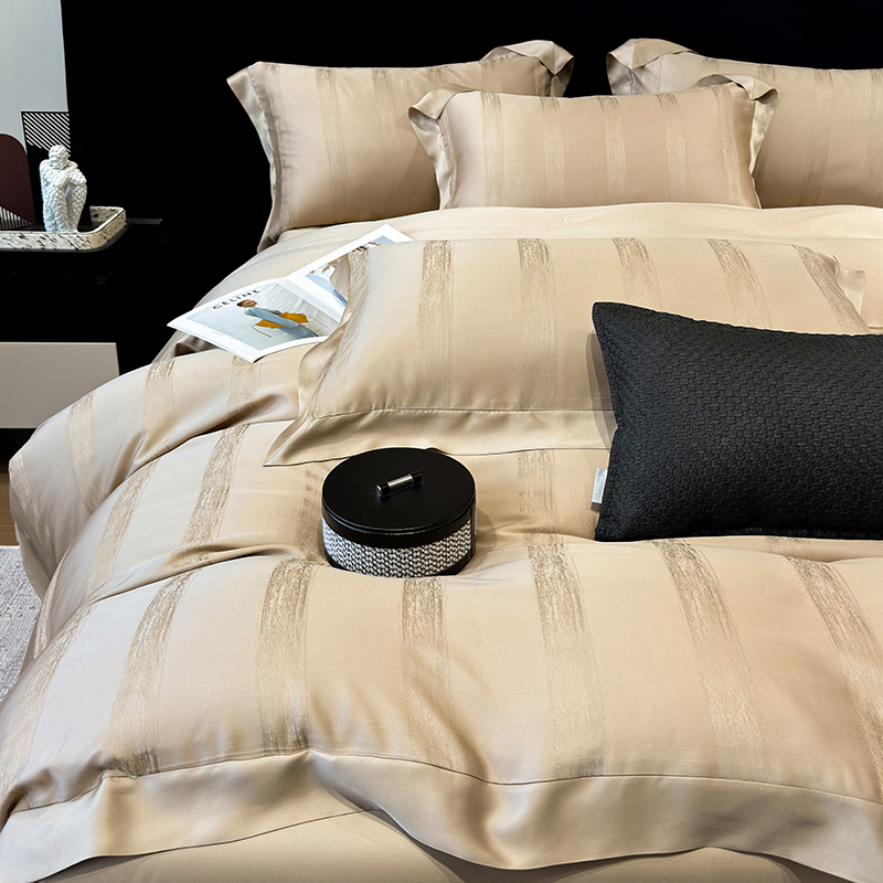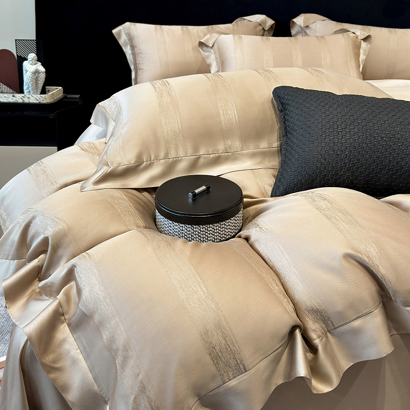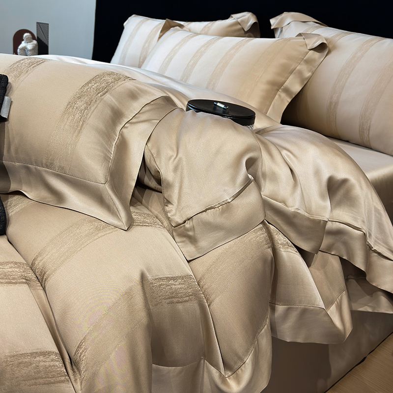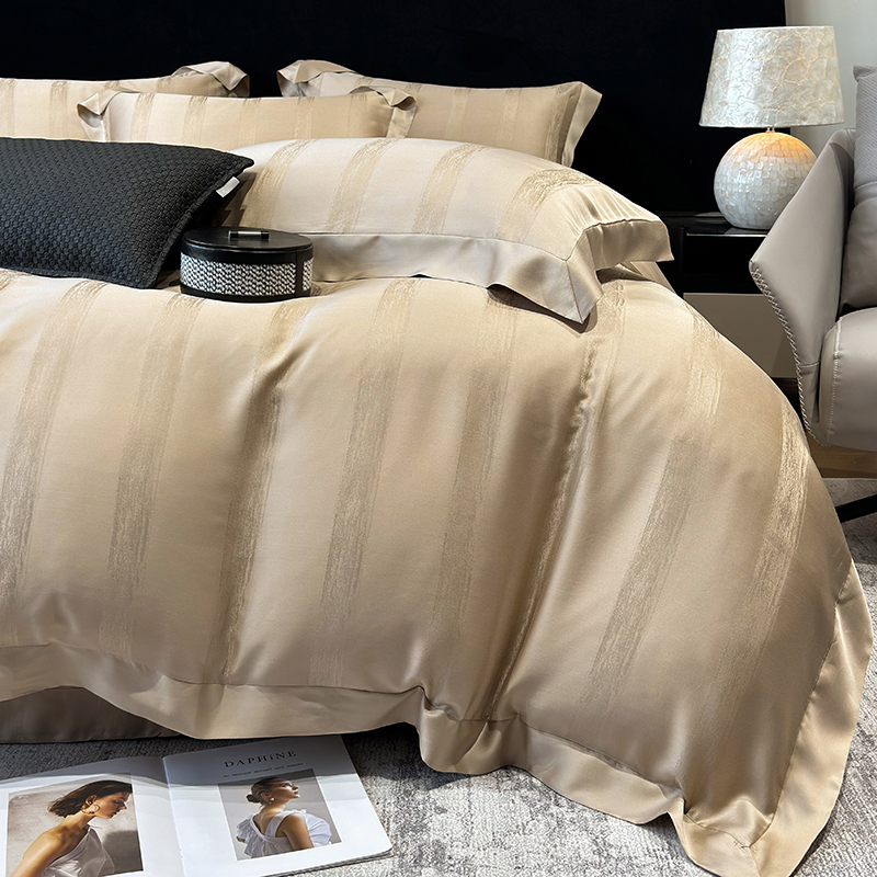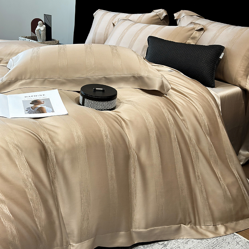 商品名称:若未家居 LOVEWE HOUSE 2025新款50S兰精天丝轻奢基底提花带银丝套件- 亦梵 亦梵-驼色