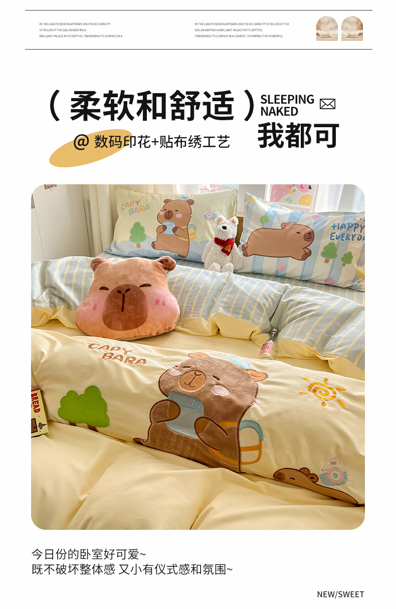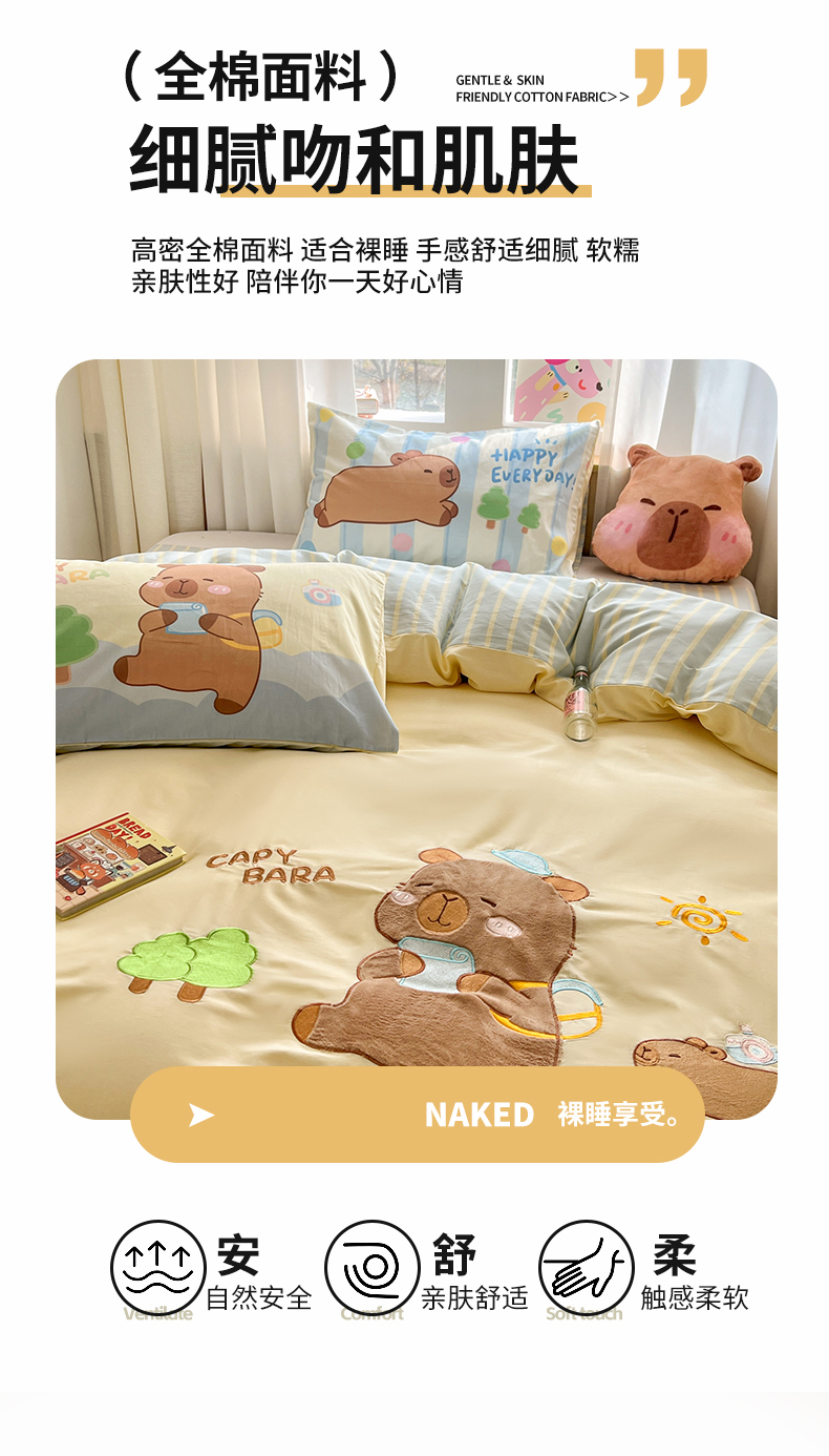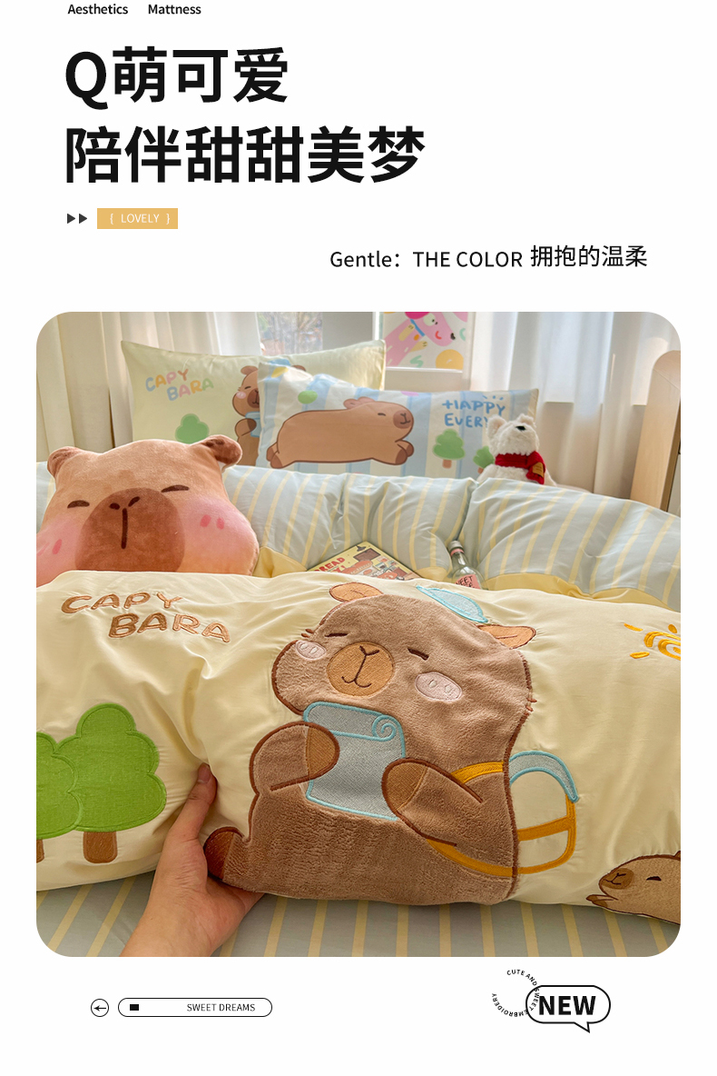 (总)优彩 2025新款数码印花全棉磨毛毛巾绣四件套,动物乌托邦,卡皮巴拉-奶咖,毛茸茸伙伴,幸运蛋糕