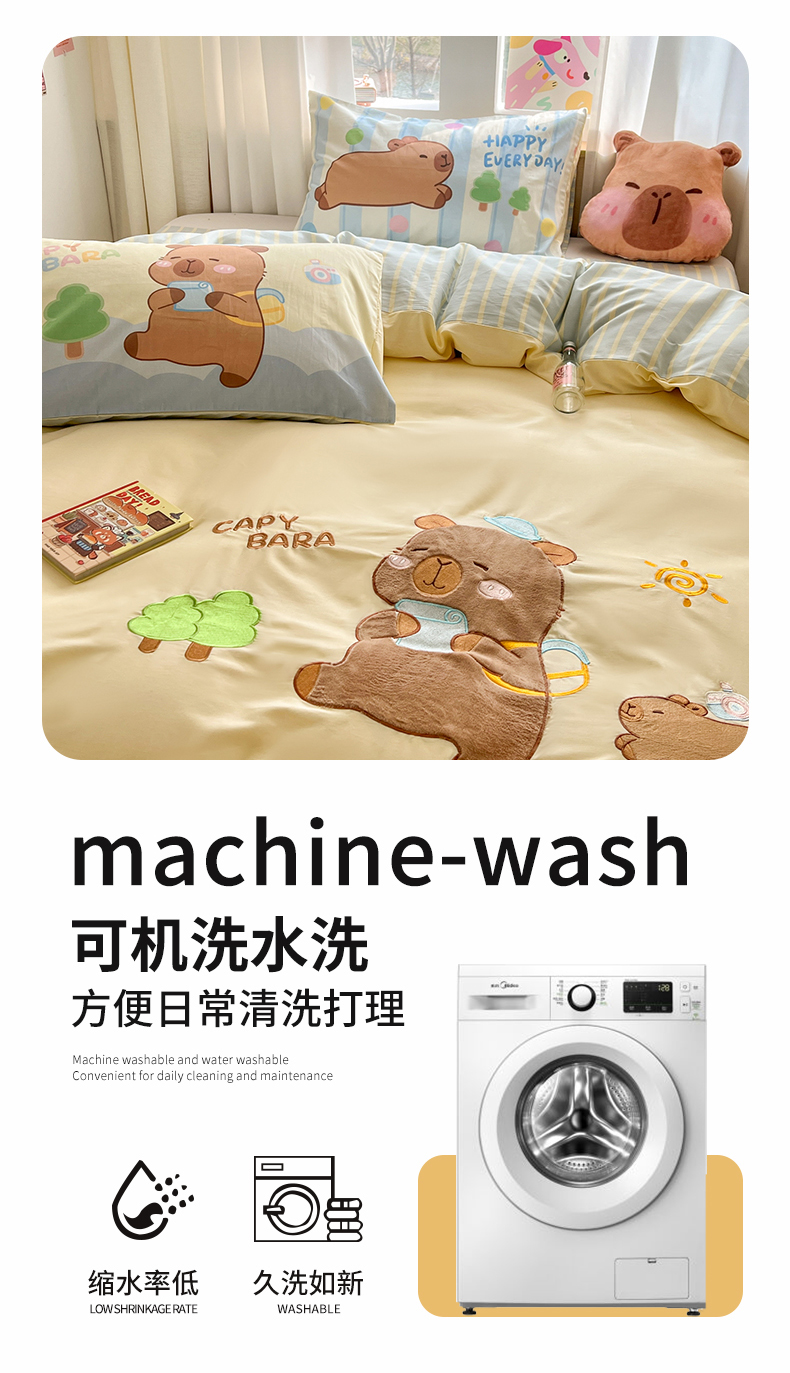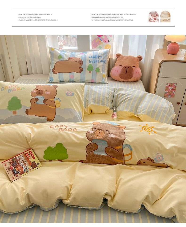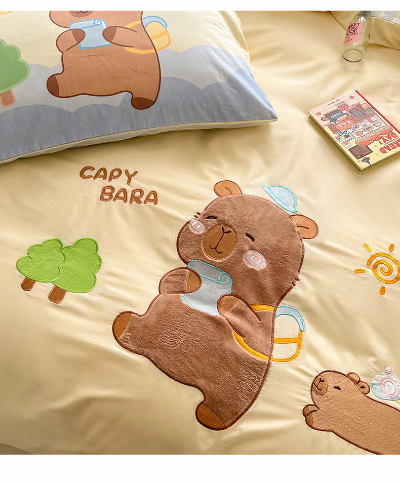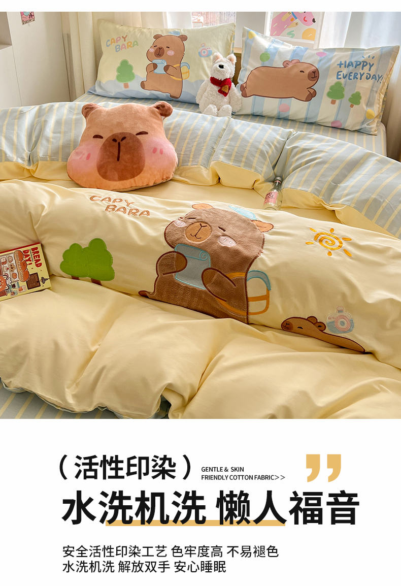(总)优彩 2025新款数码印花全棉磨毛毛巾绣四件套,动物乌托邦,卡皮巴拉-奶咖,毛茸茸伙伴,幸运蛋糕