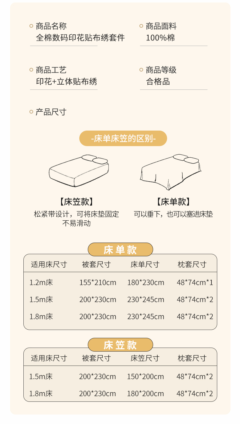 商品名称:优彩 2025新款数码印花贴布绣全棉四件套 春田小熊