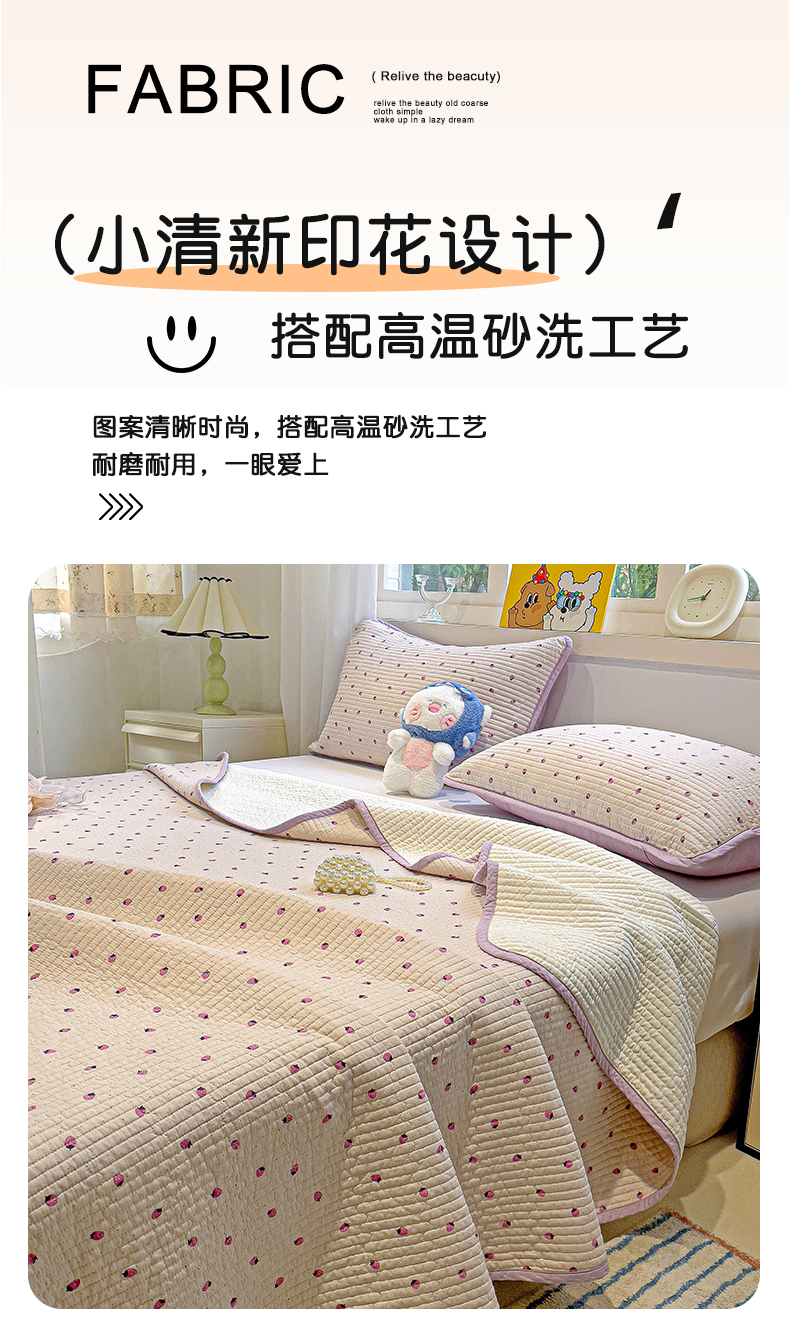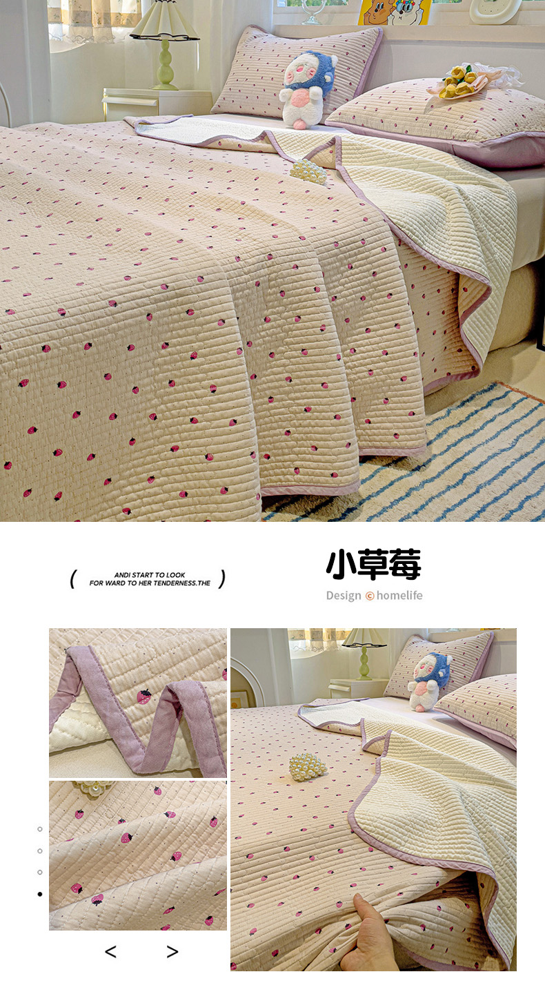 当前位置: 91家纺网 > 商品网购 > 床上用品 > 床盖 > 漫时光 2025新款全棉纯棉新疆棉花夹层单床盖 小草莓