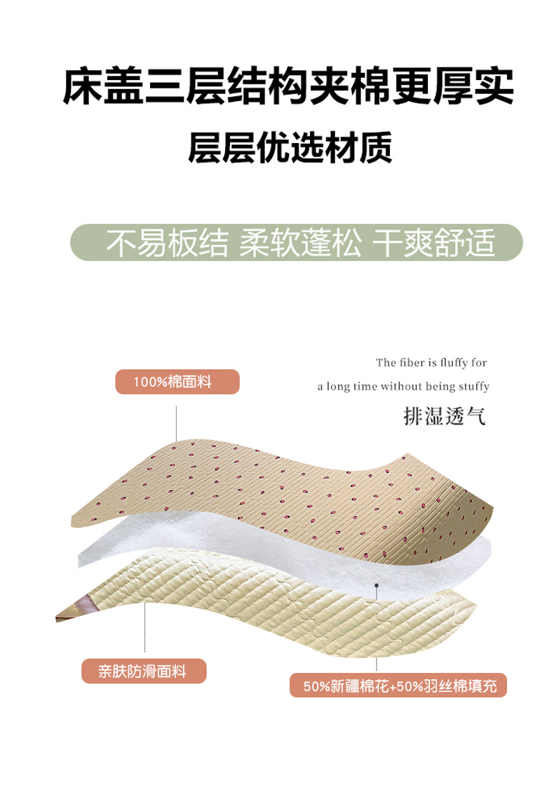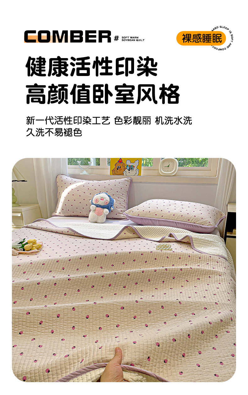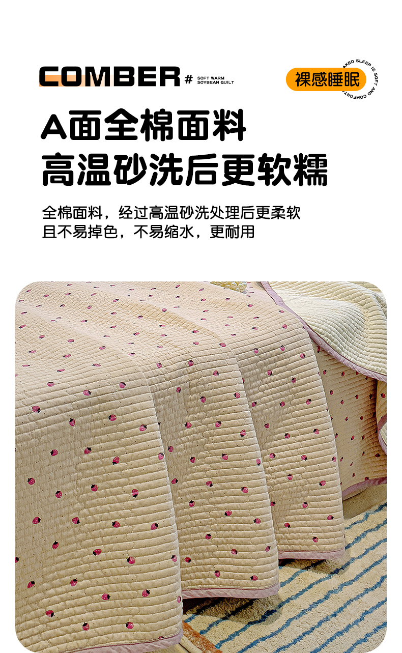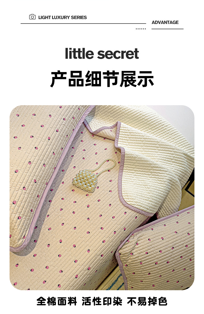 • 91家纺网 家纺一手货源 找家纺 漫时光 2025新款全棉纯棉新疆棉花夹层单床盖 小草莓