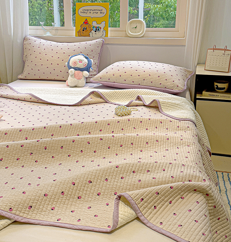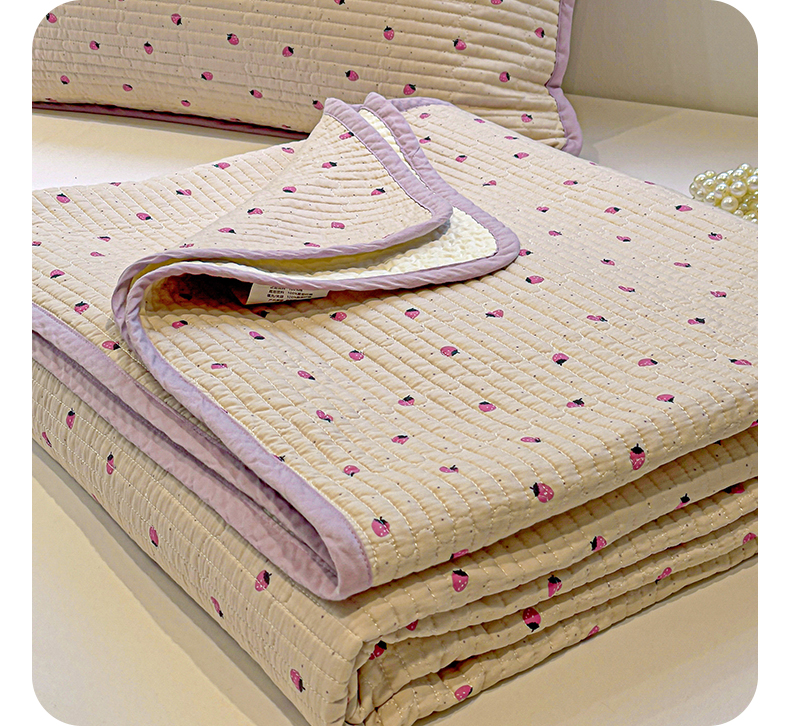 漫时光 2025新款全棉纯棉新疆棉花夹层单床盖 小草莓