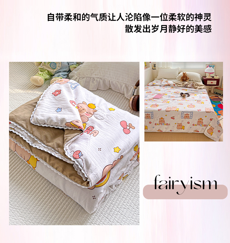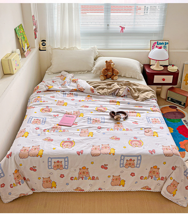 妖妖家纺 2025新款超柔双层纱糯糯针织棉夏凉被 卡皮巴拉小伙伴
