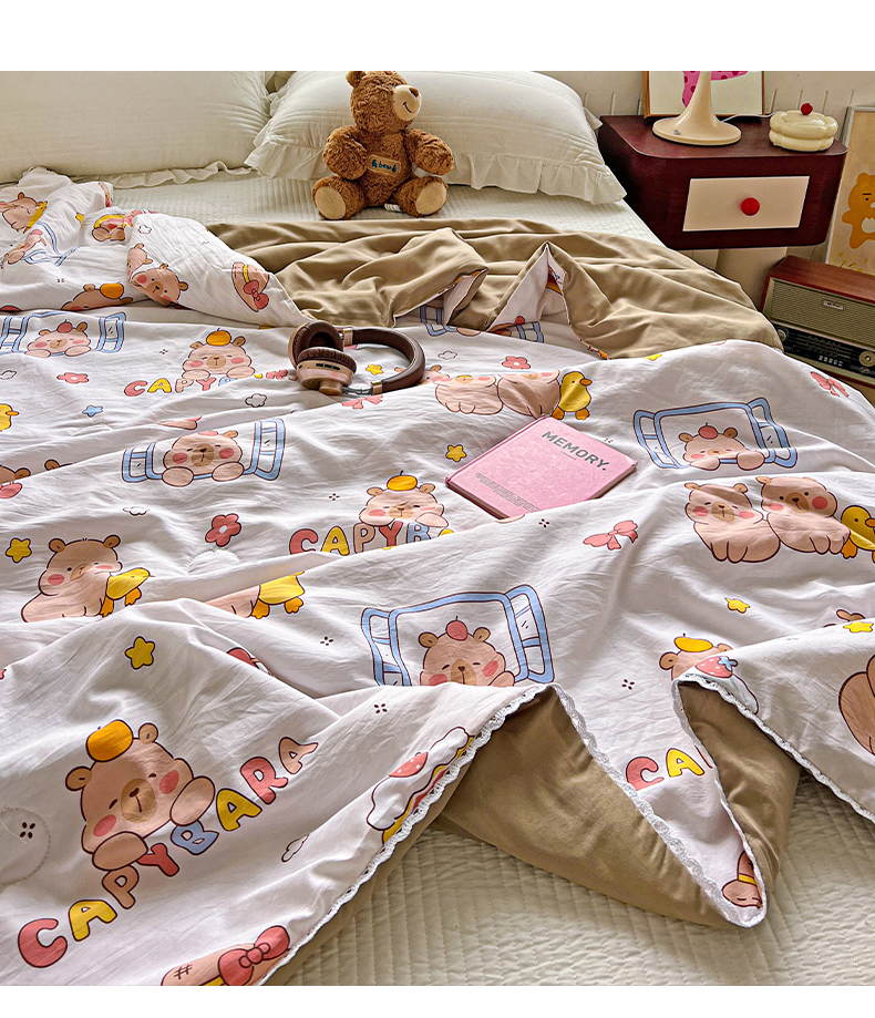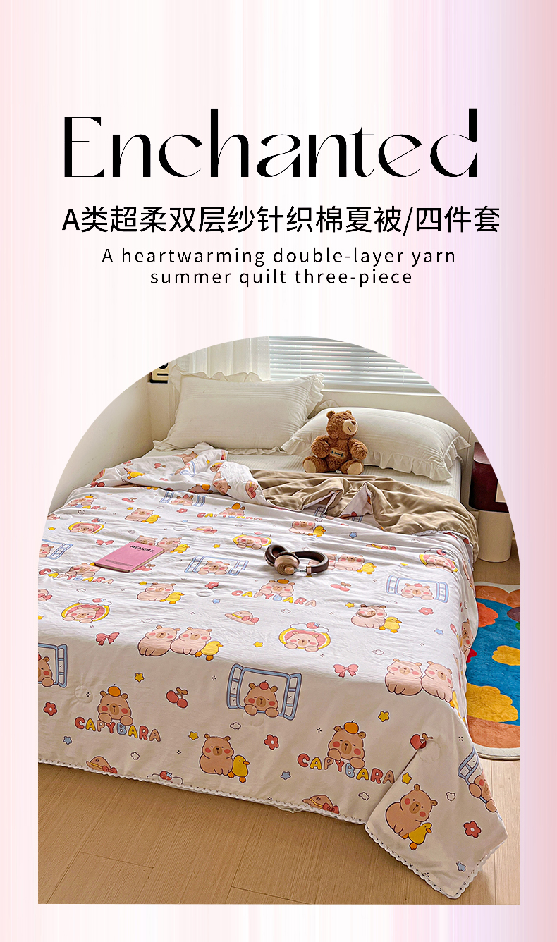 商品名称:妖妖家纺 2025新款超柔双层纱糯糯针织棉夏凉被 卡皮巴拉小伙伴