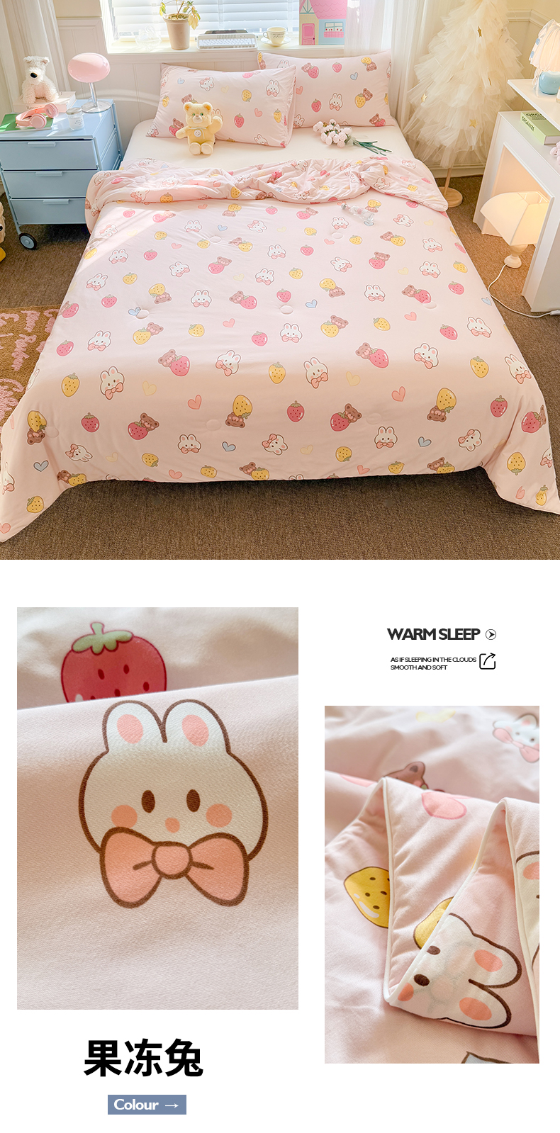 商品名称:名兮家居 2025新款针织棉夏凉被 果冻兔
