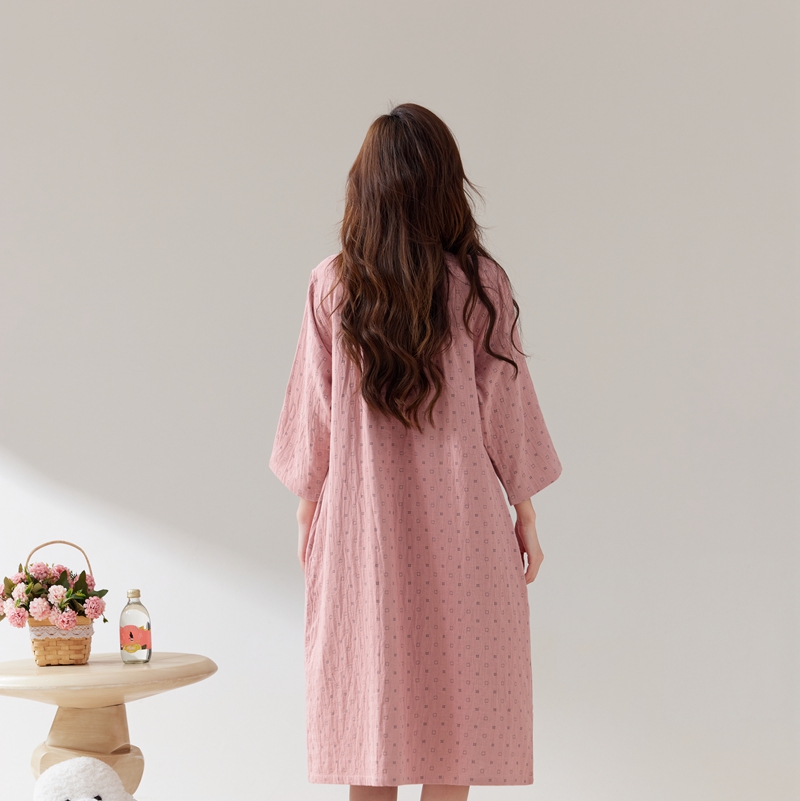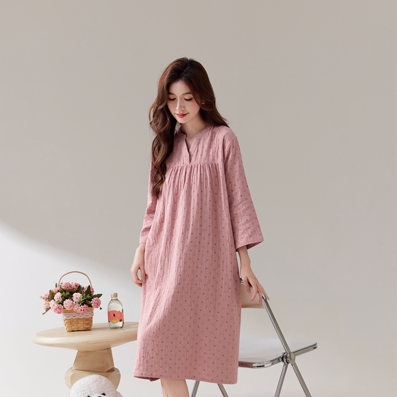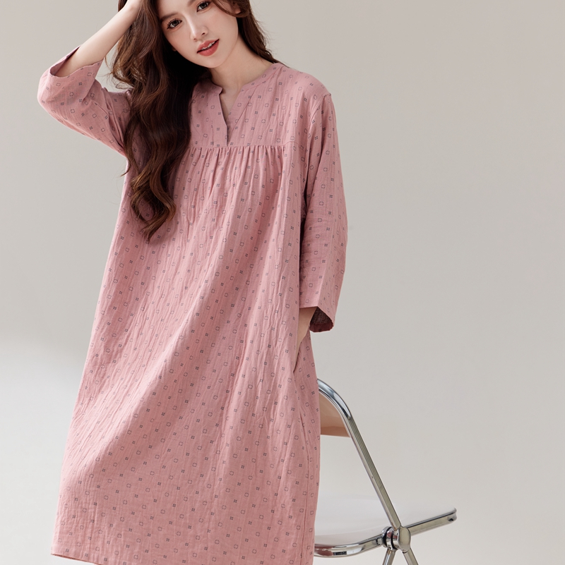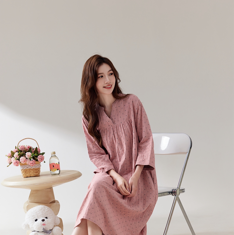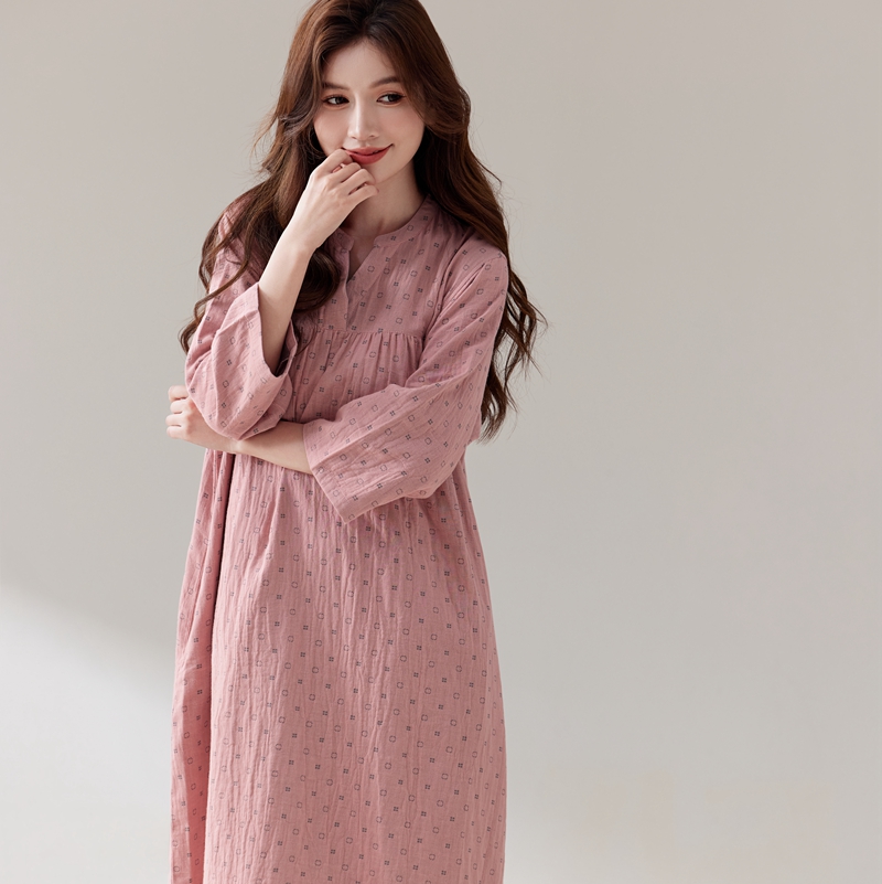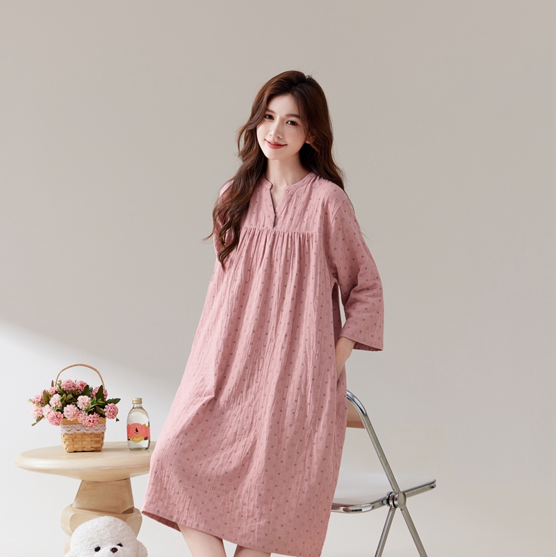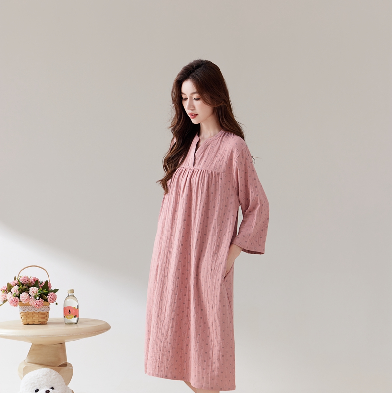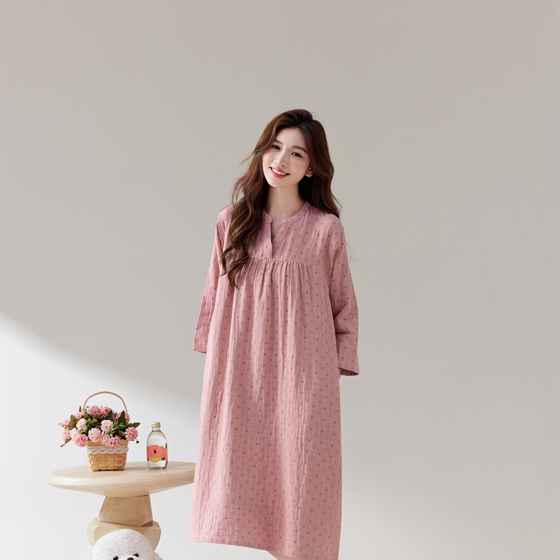 商品名称:玖弘家居2025新款睡裙系列-花妍【全平台控价69.9】 睡裙粉底灰点