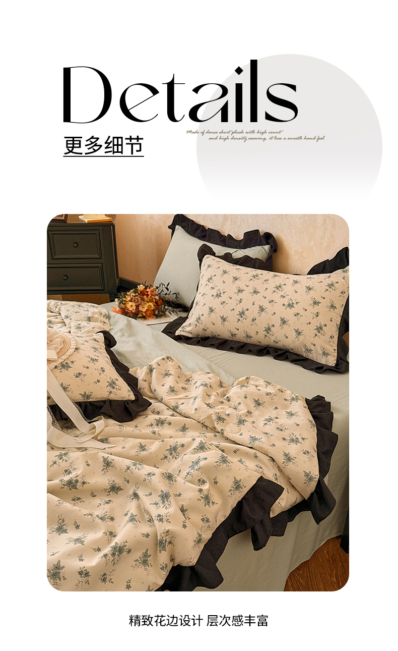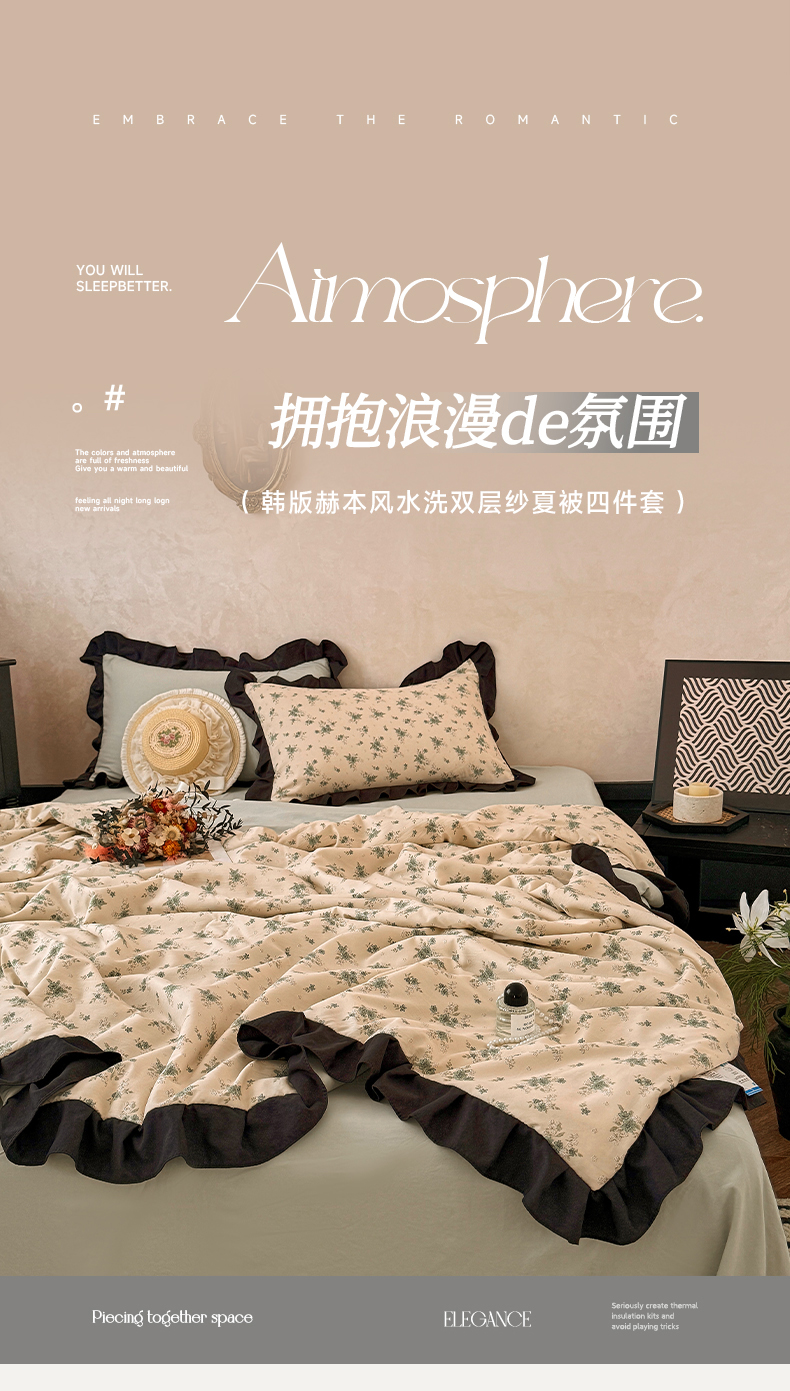亿品家纺 2026直播爆款韩版赫本风花边款水洗双层纱夏被四件套【有买家秀加V】