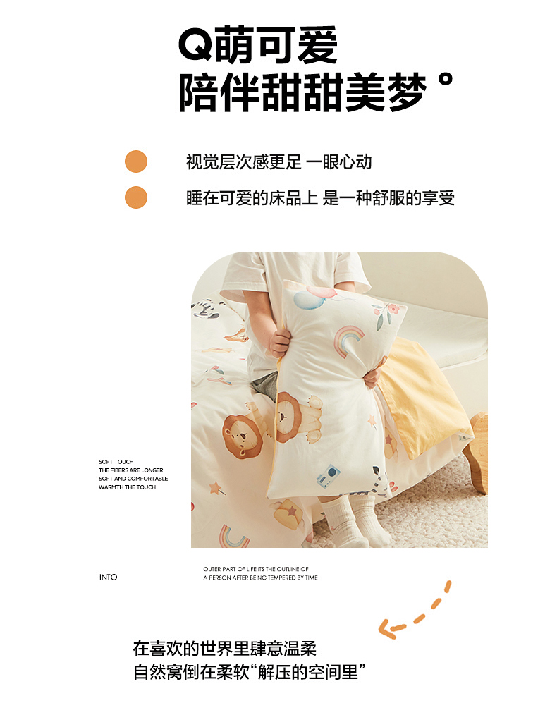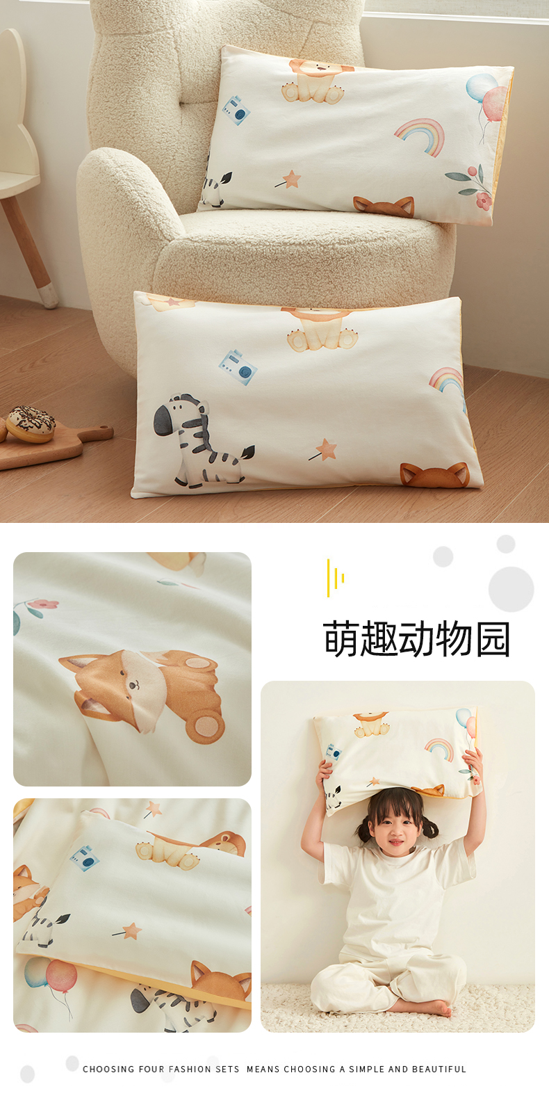 商品名称:艾佳宝贝 2025新款A类全棉纯棉儿童单枕套多尺寸可拆式枕头 萌趣动物园