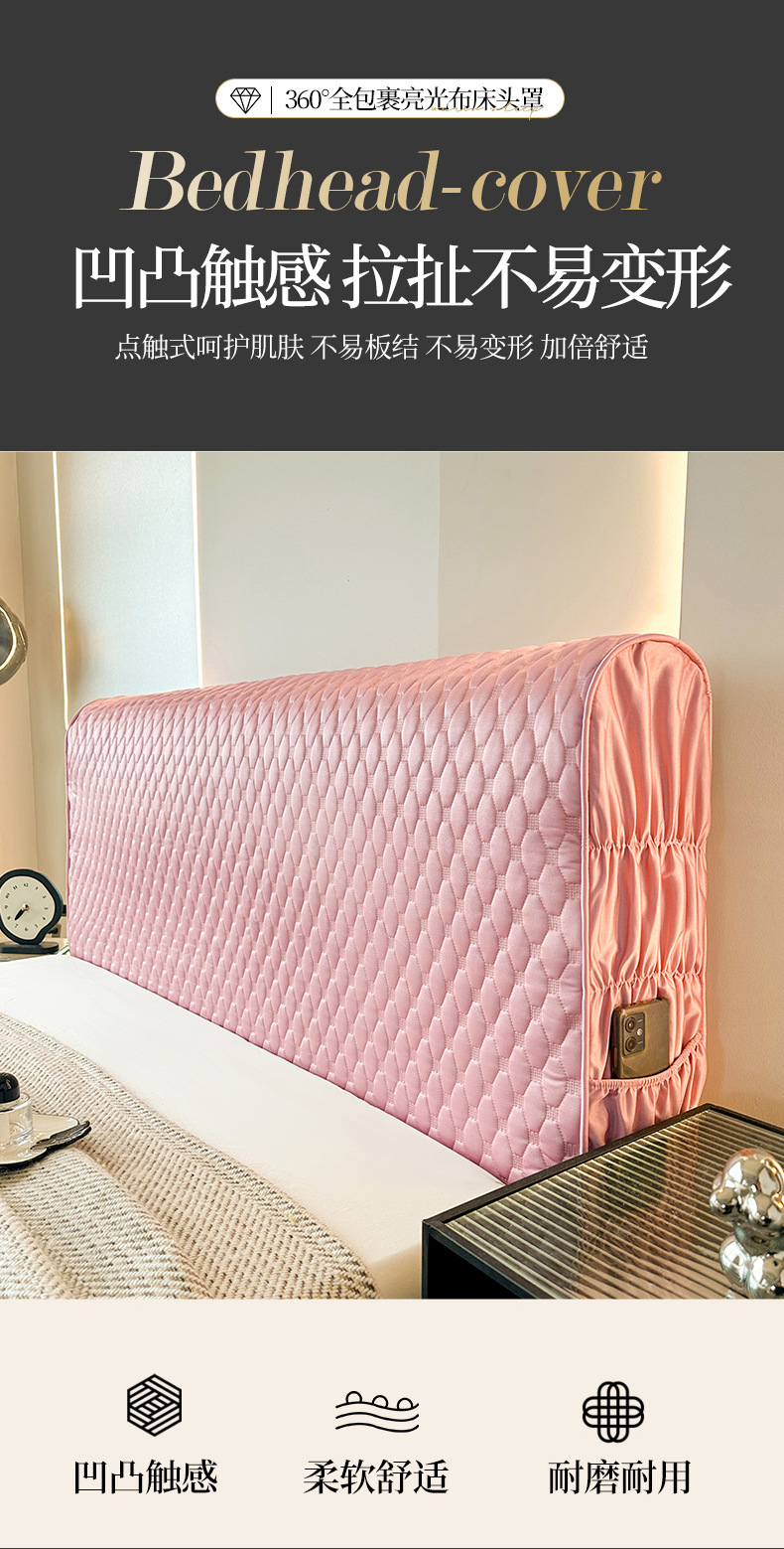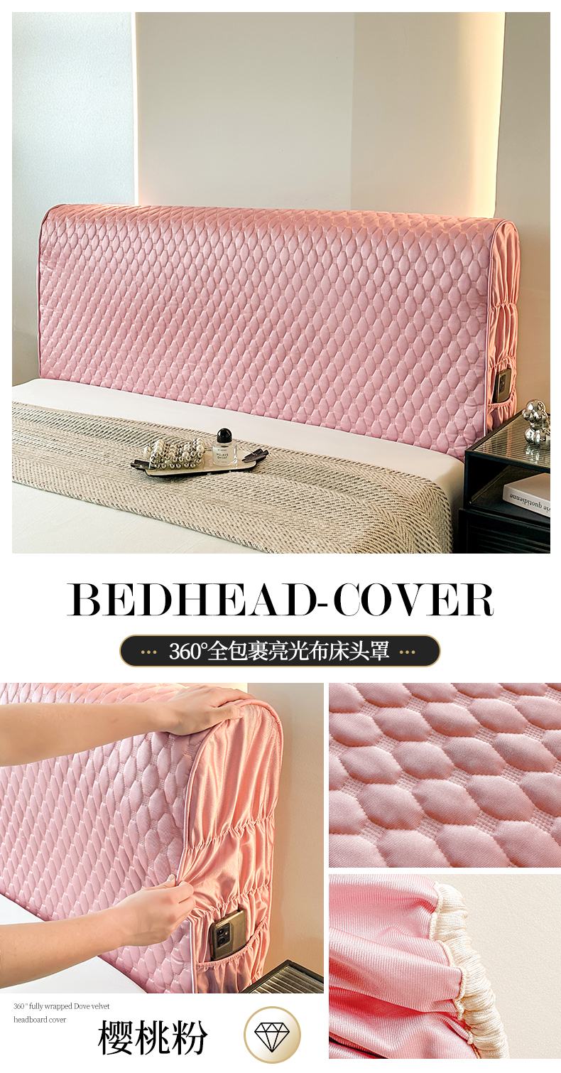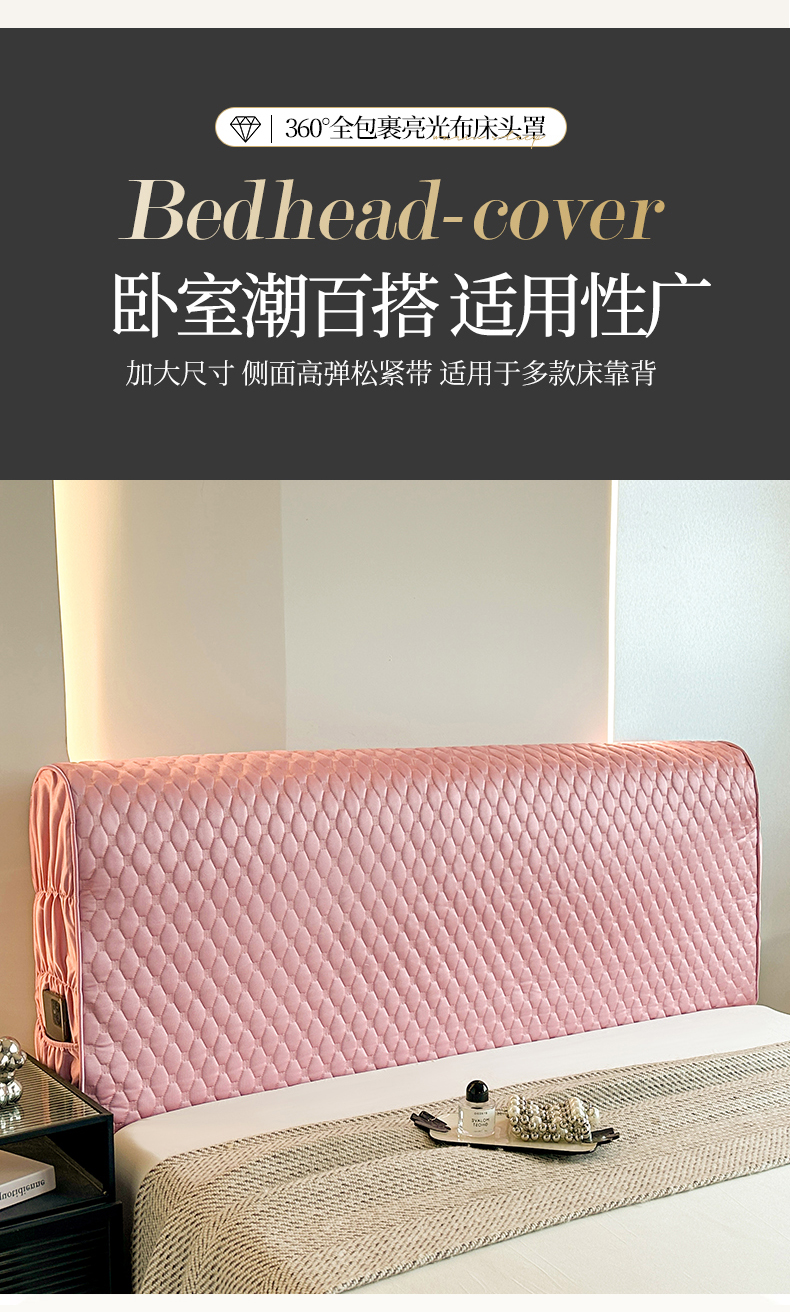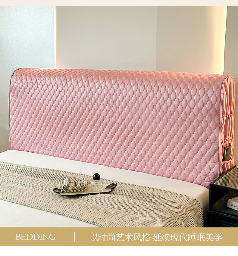 情恒家纺 2025夏季款亮光布加厚双面用床头罩 樱桃粉