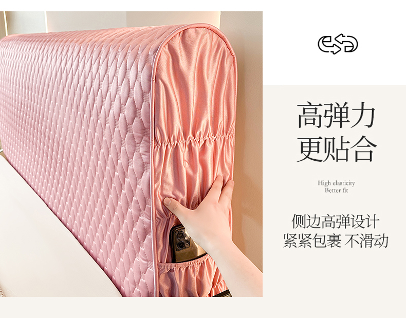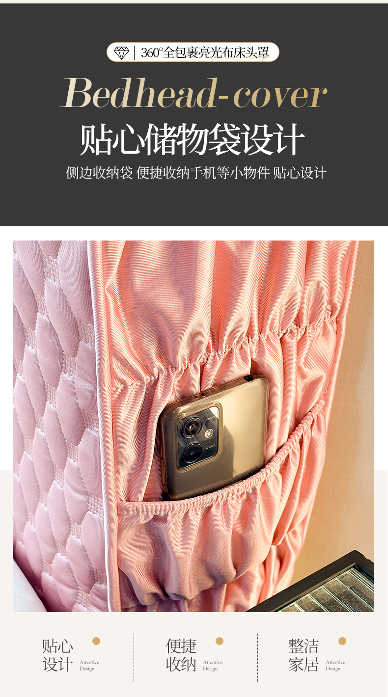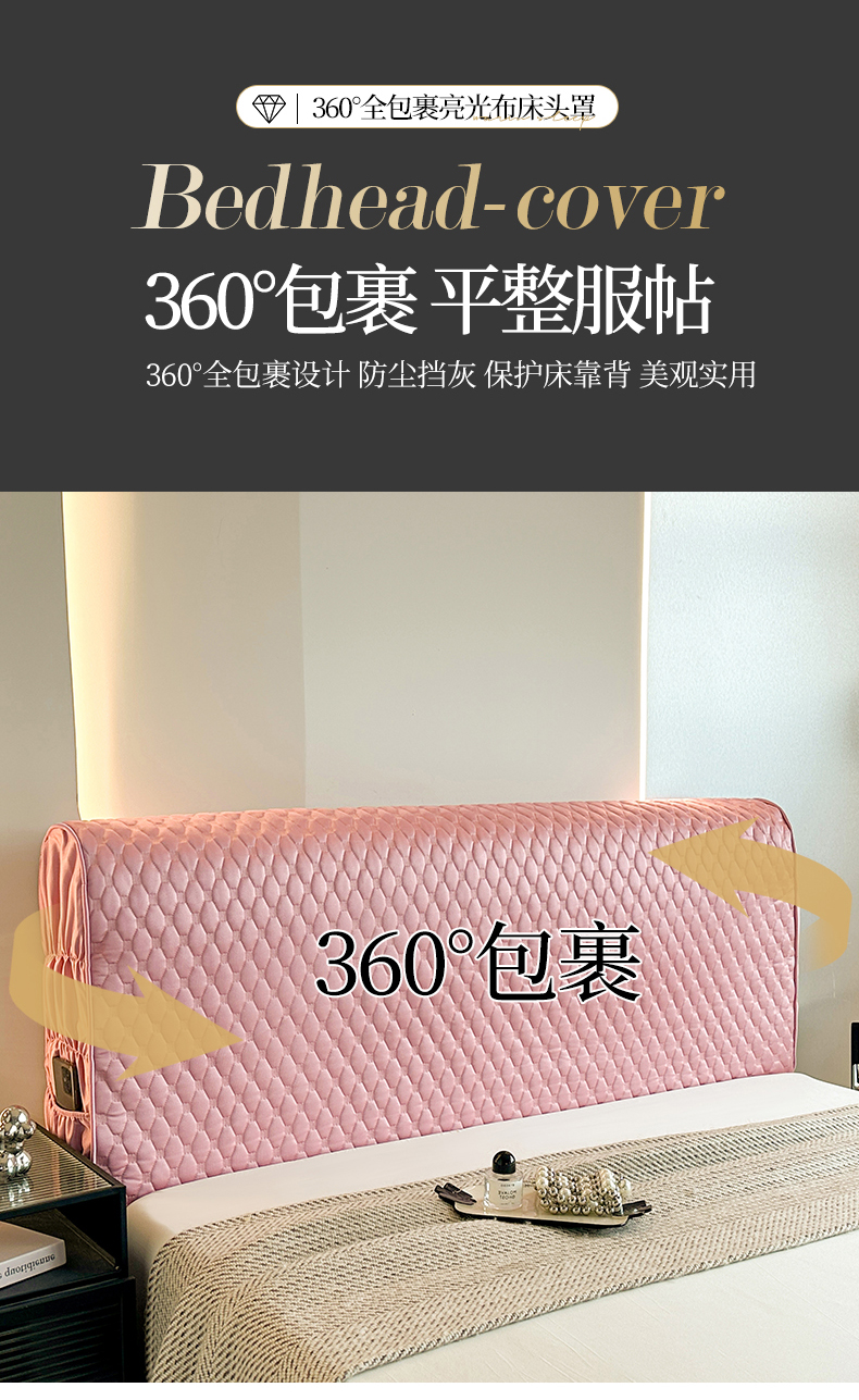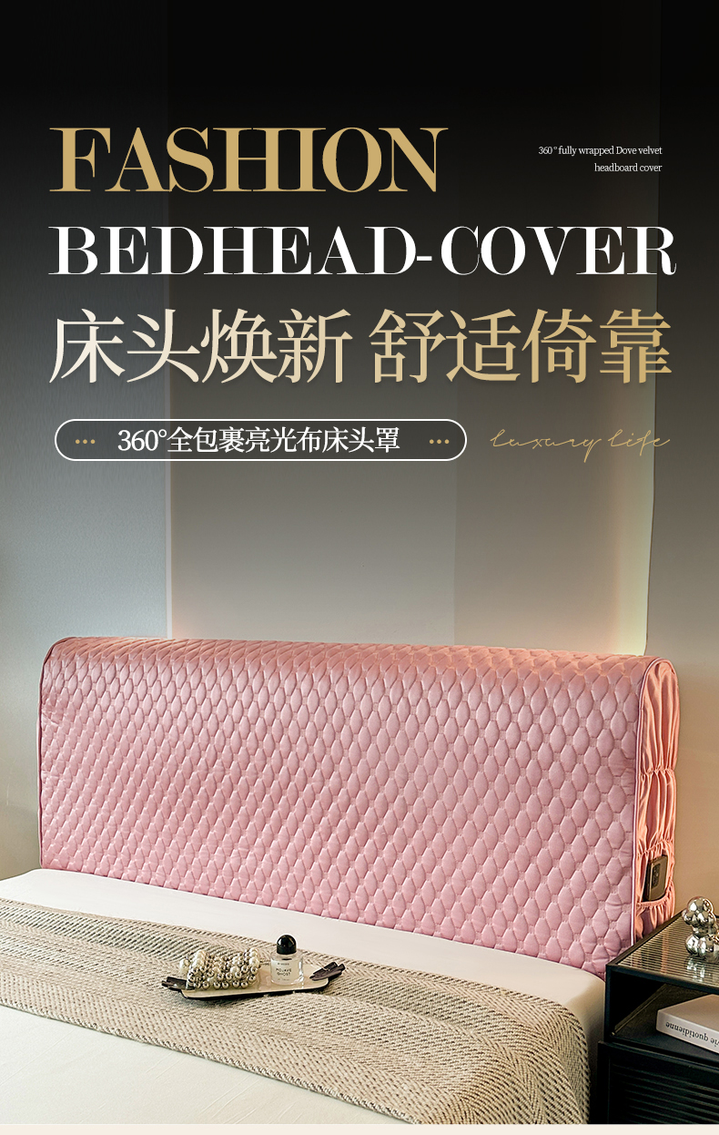 情恒家纺 2025夏季款亮光布加厚双面用床头罩 樱桃粉