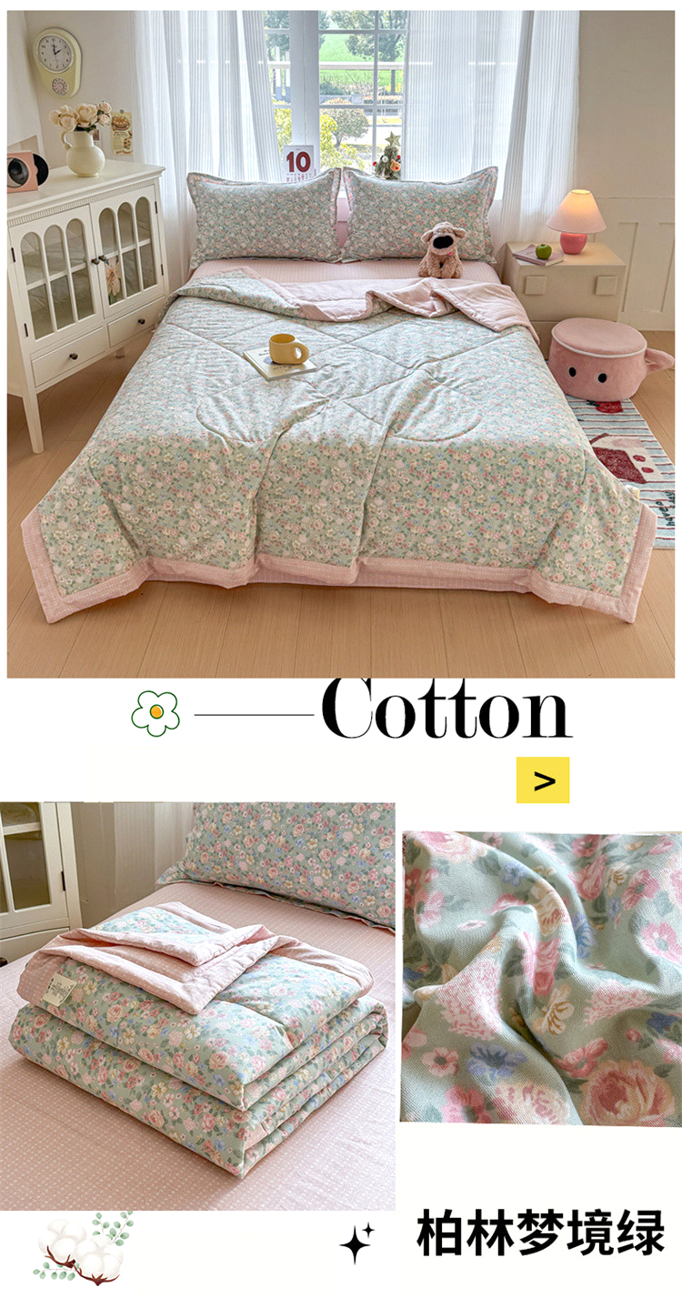 商品名称:欧喜璐 2025新款里外全棉夏凉被 柏林梦境-绿