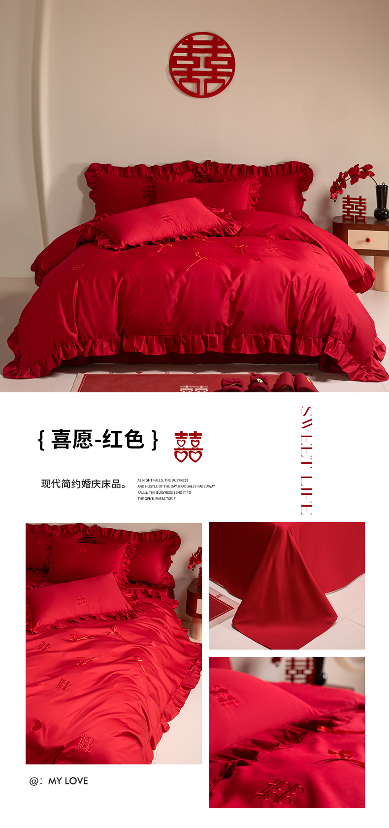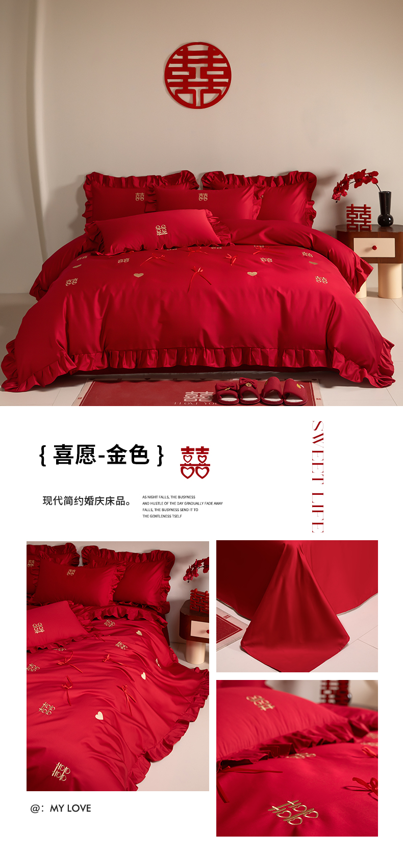 (总)苏源家居 2025新款 大红婚庆结婚喜庆刺绣轻奢四件套-吾家有喜系列,吾家有喜-红色,吾家有喜-金色