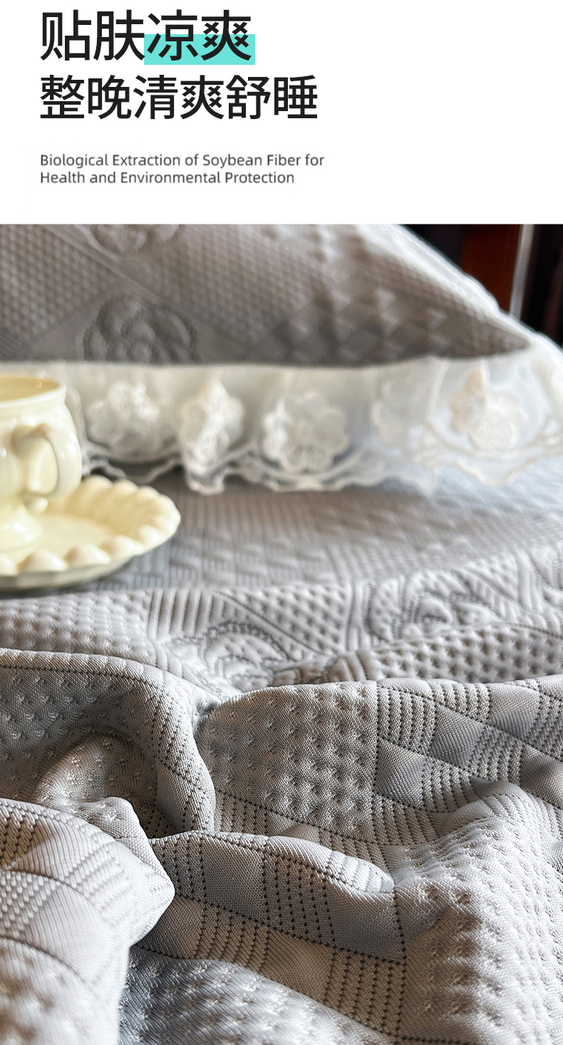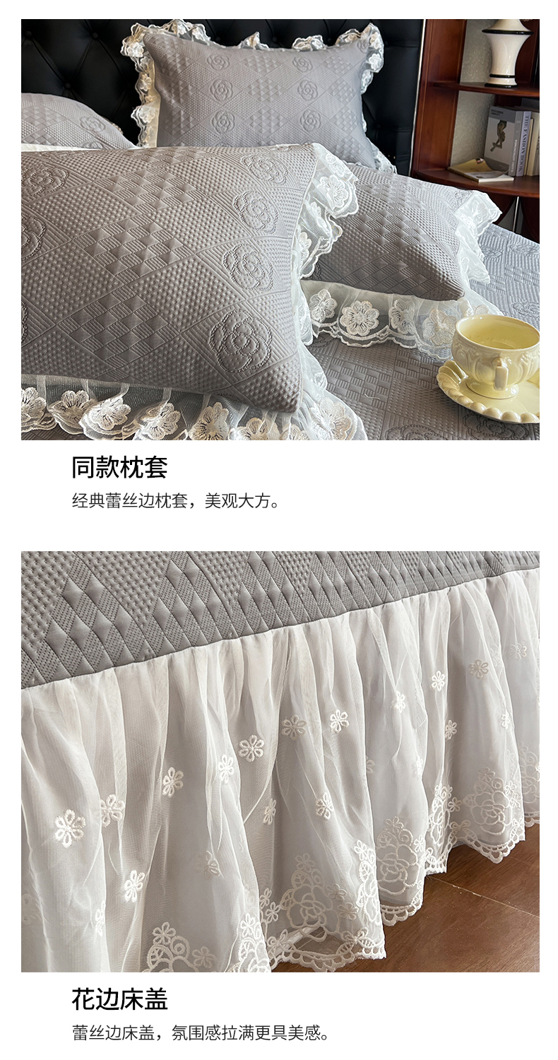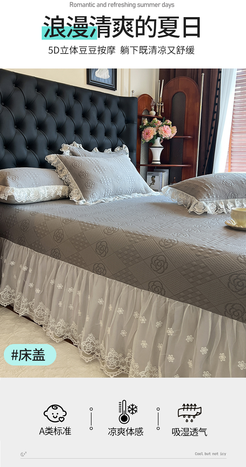 商品名称:网红馆(ck家纺) 2025新款A类凉感花边豆豆席凉席床盖三件套--瑞莎 幻影灰