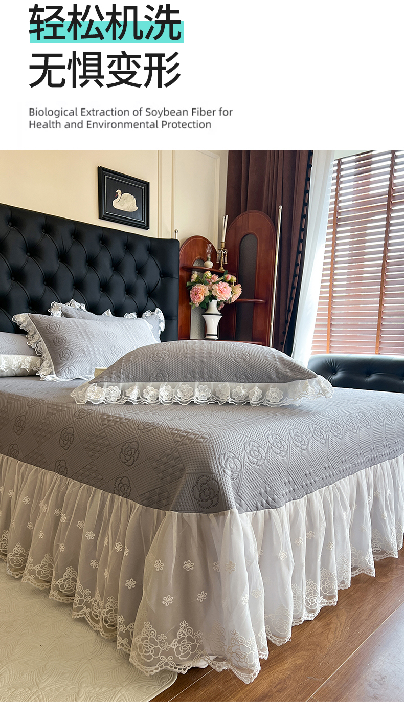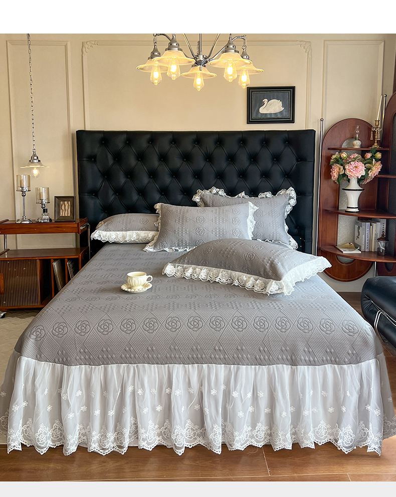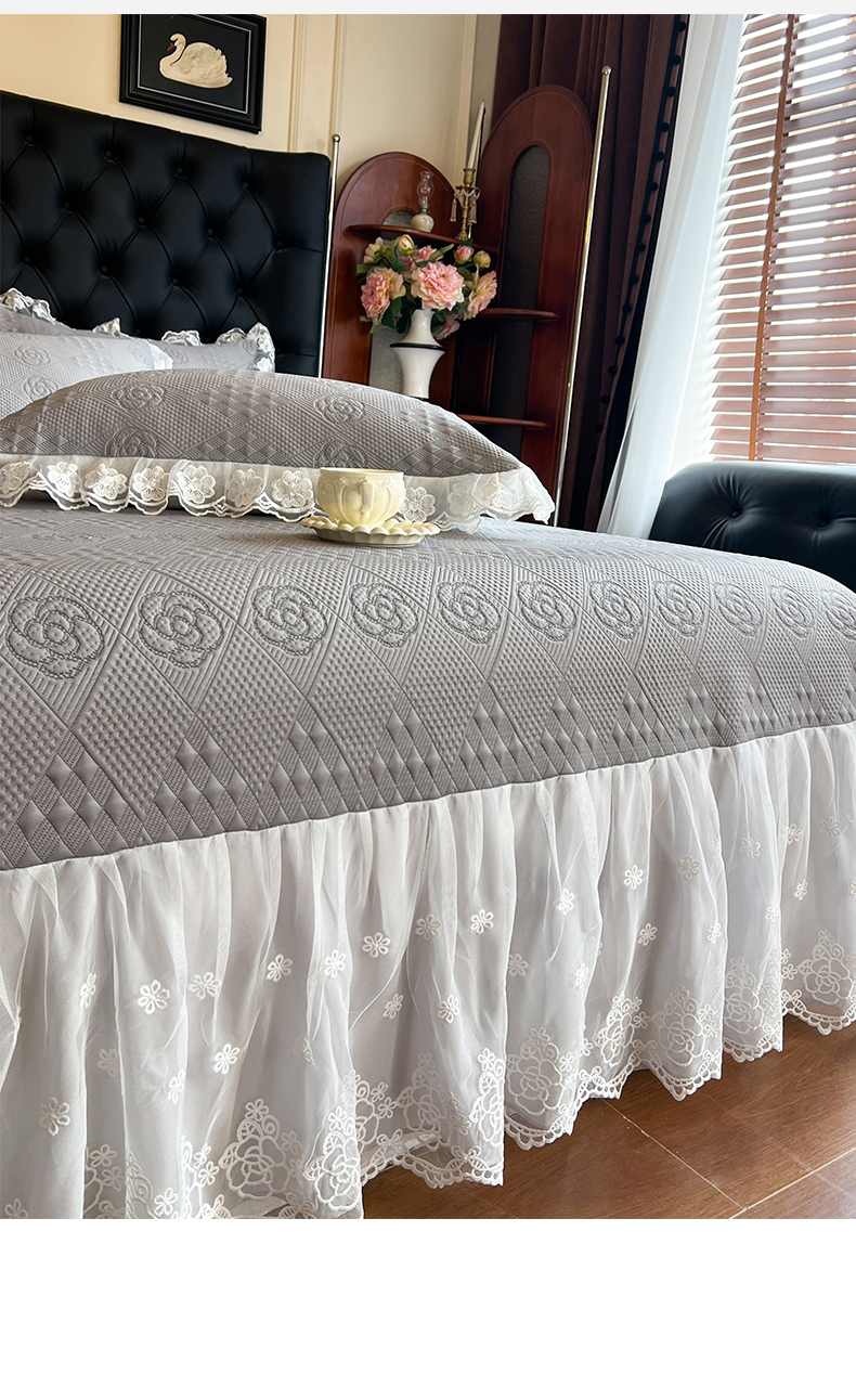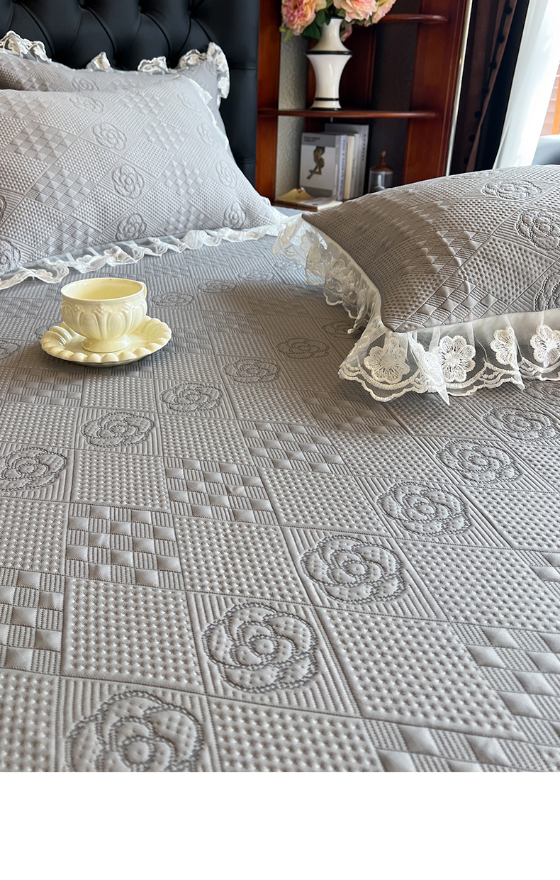 商品名称:网红馆(ck家纺) 2025新款A类凉感花边豆豆席凉席床盖三件套--瑞莎 幻影灰