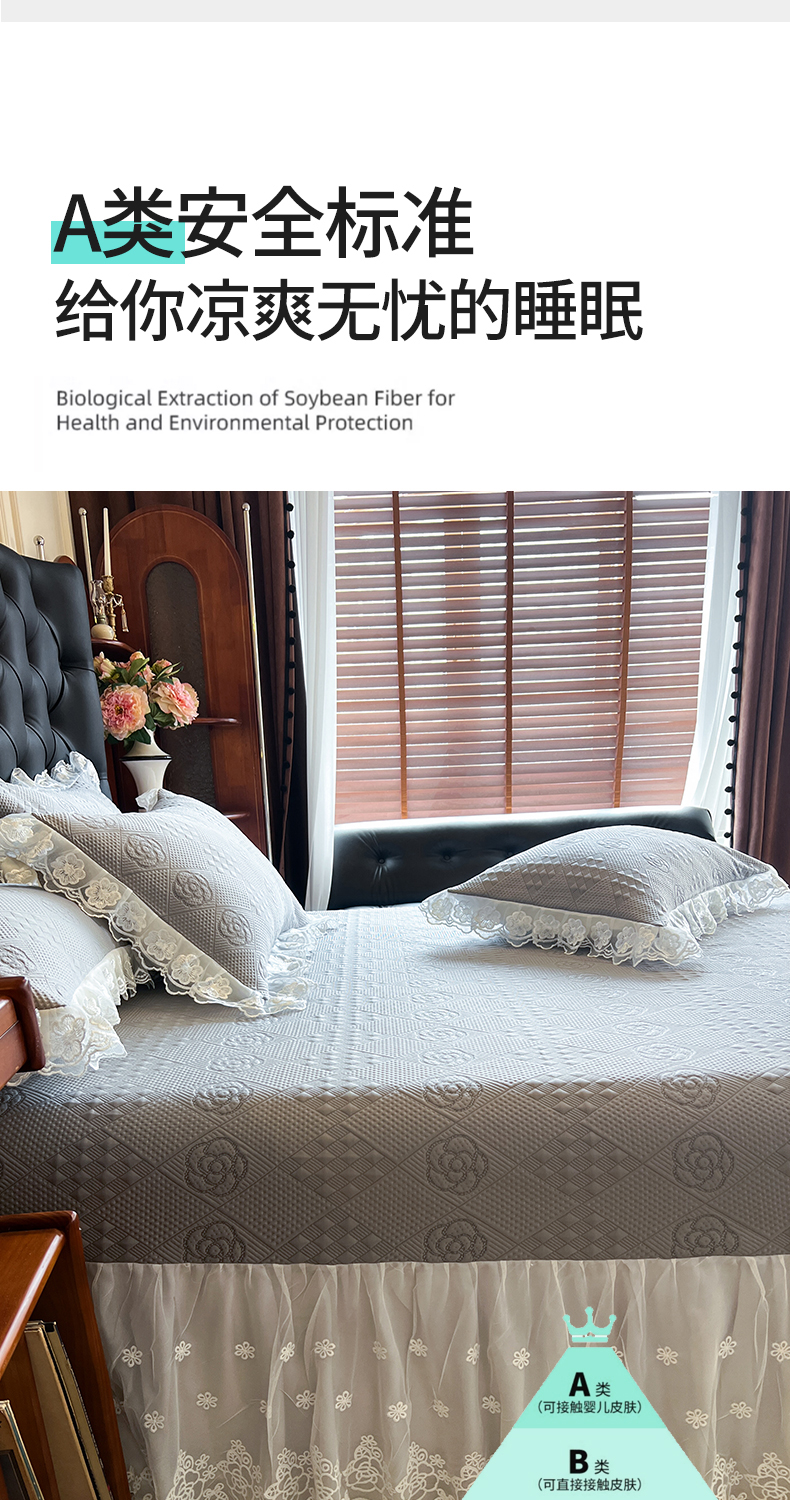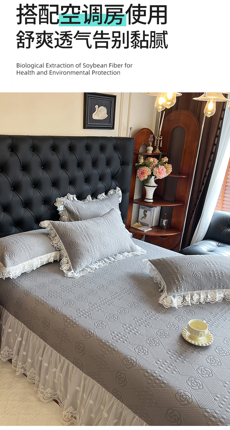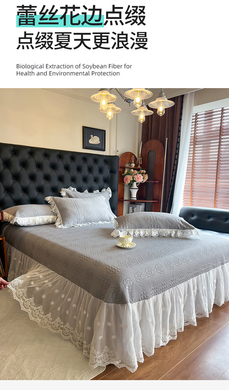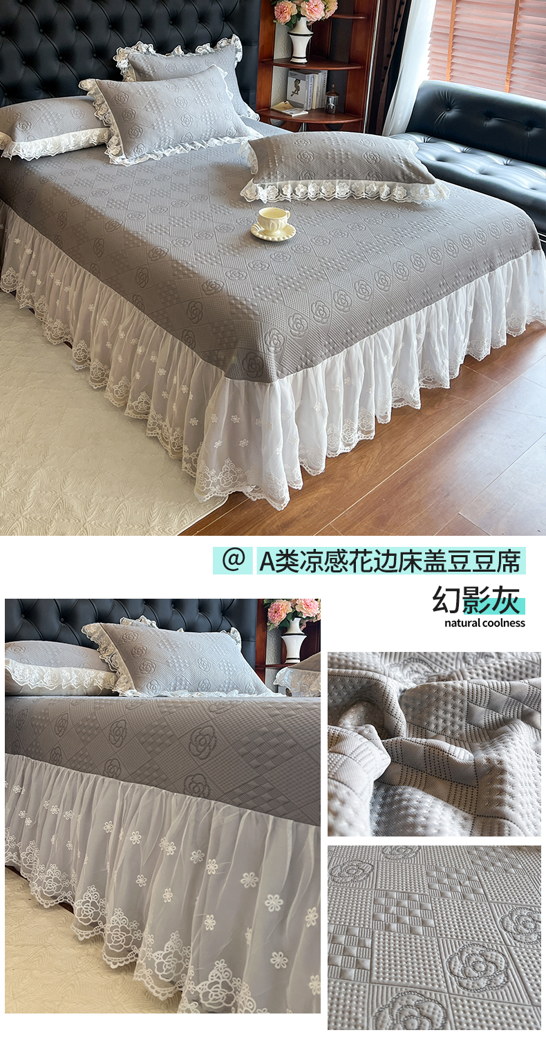 网红馆(ck家纺) 2025新款A类凉感花边豆豆席凉席床盖三件套--瑞莎 幻影灰