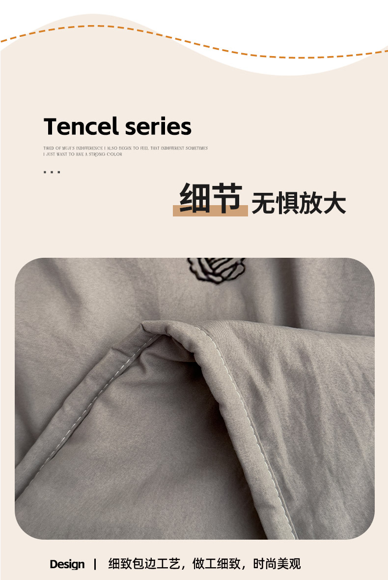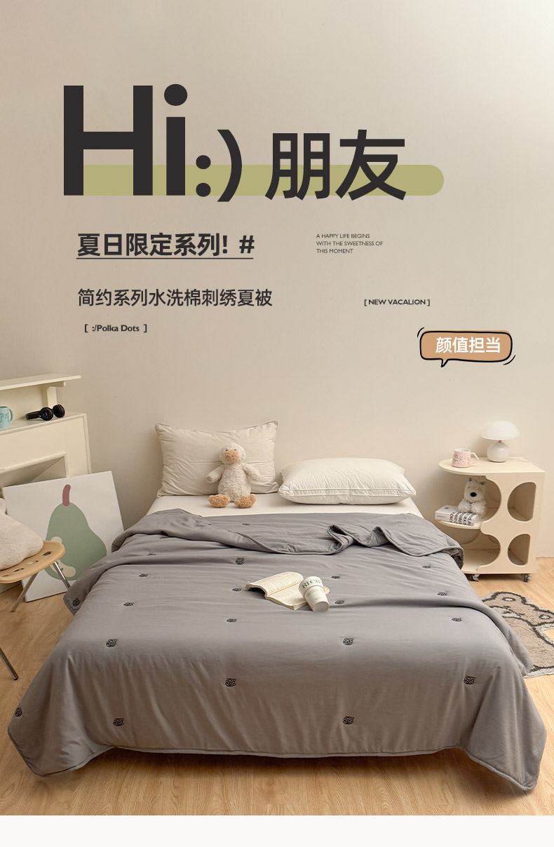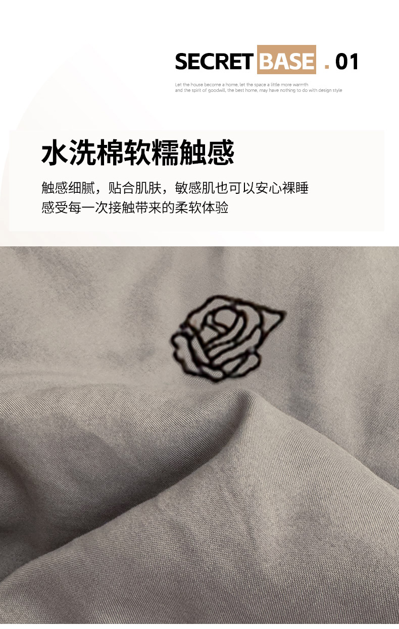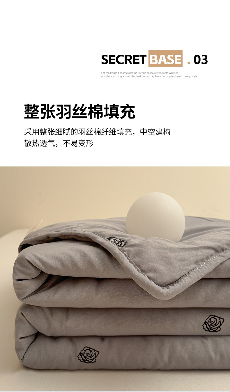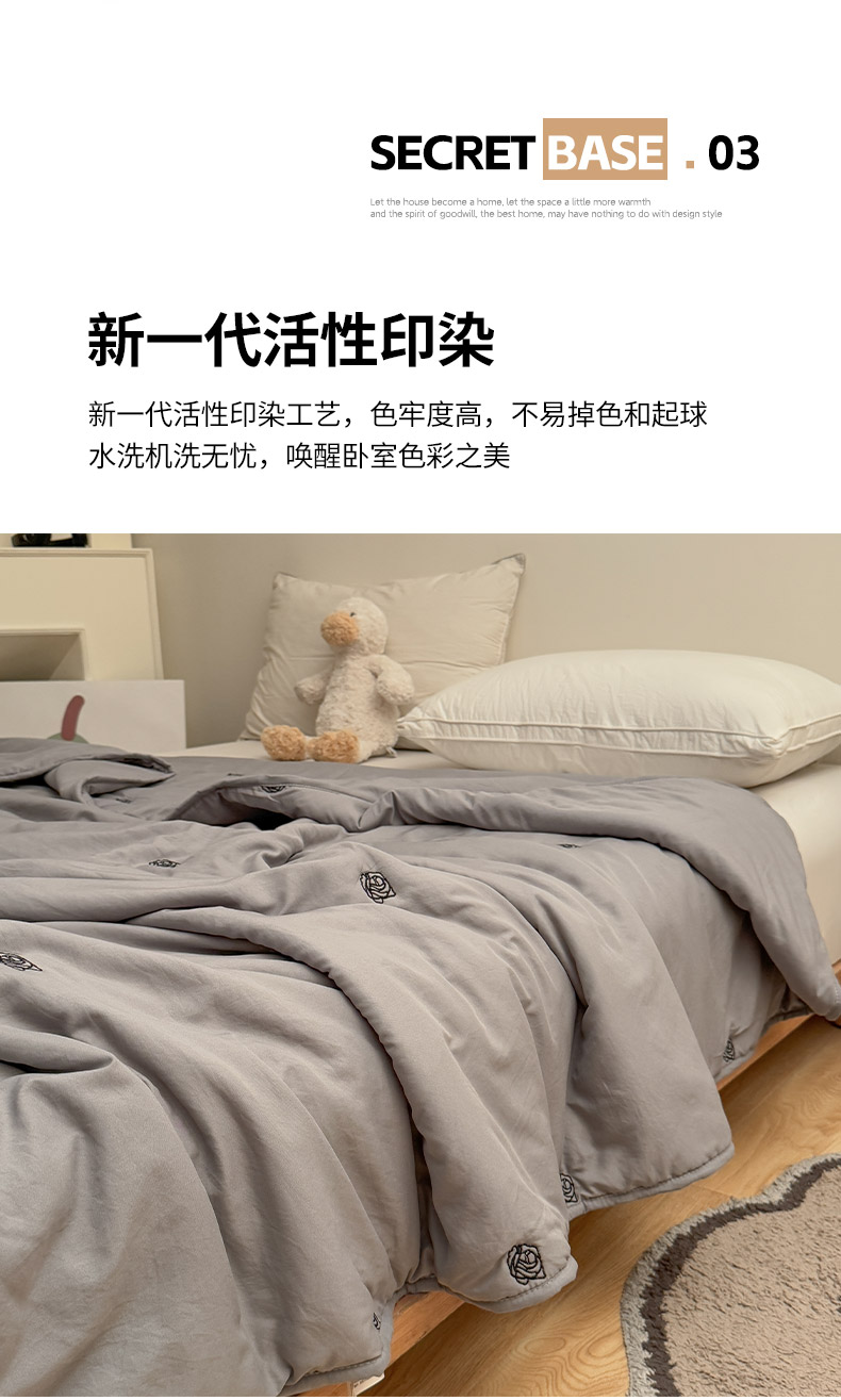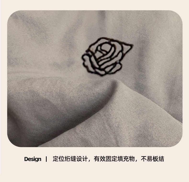 商品名称:推推家纺2025新款简约系列水洗棉刺绣夏被 玫瑰-灰色