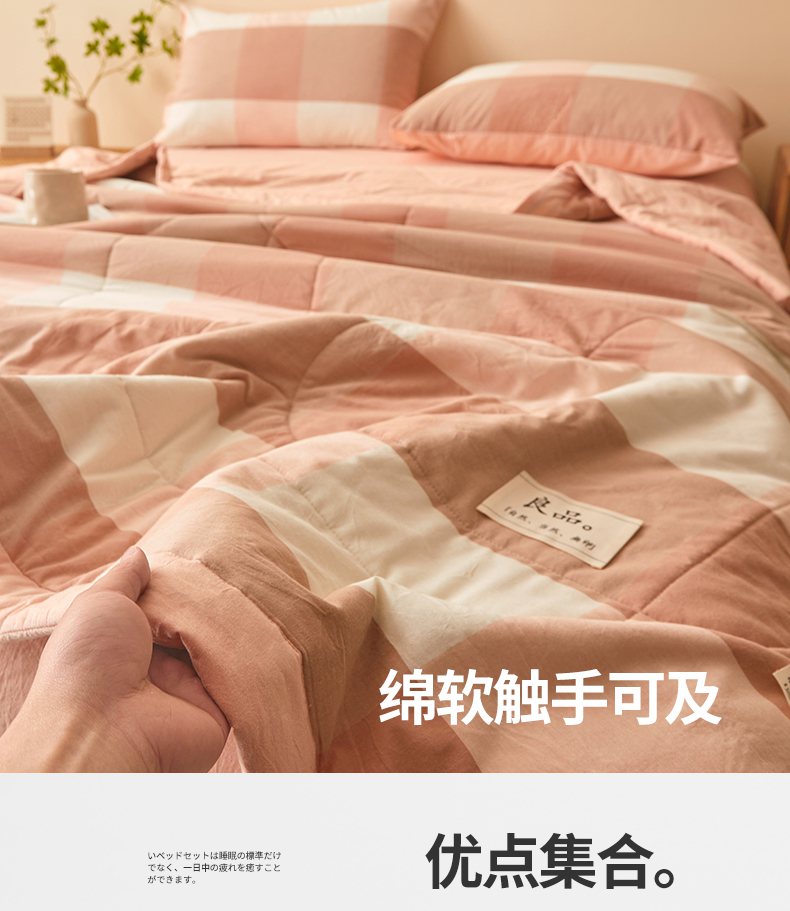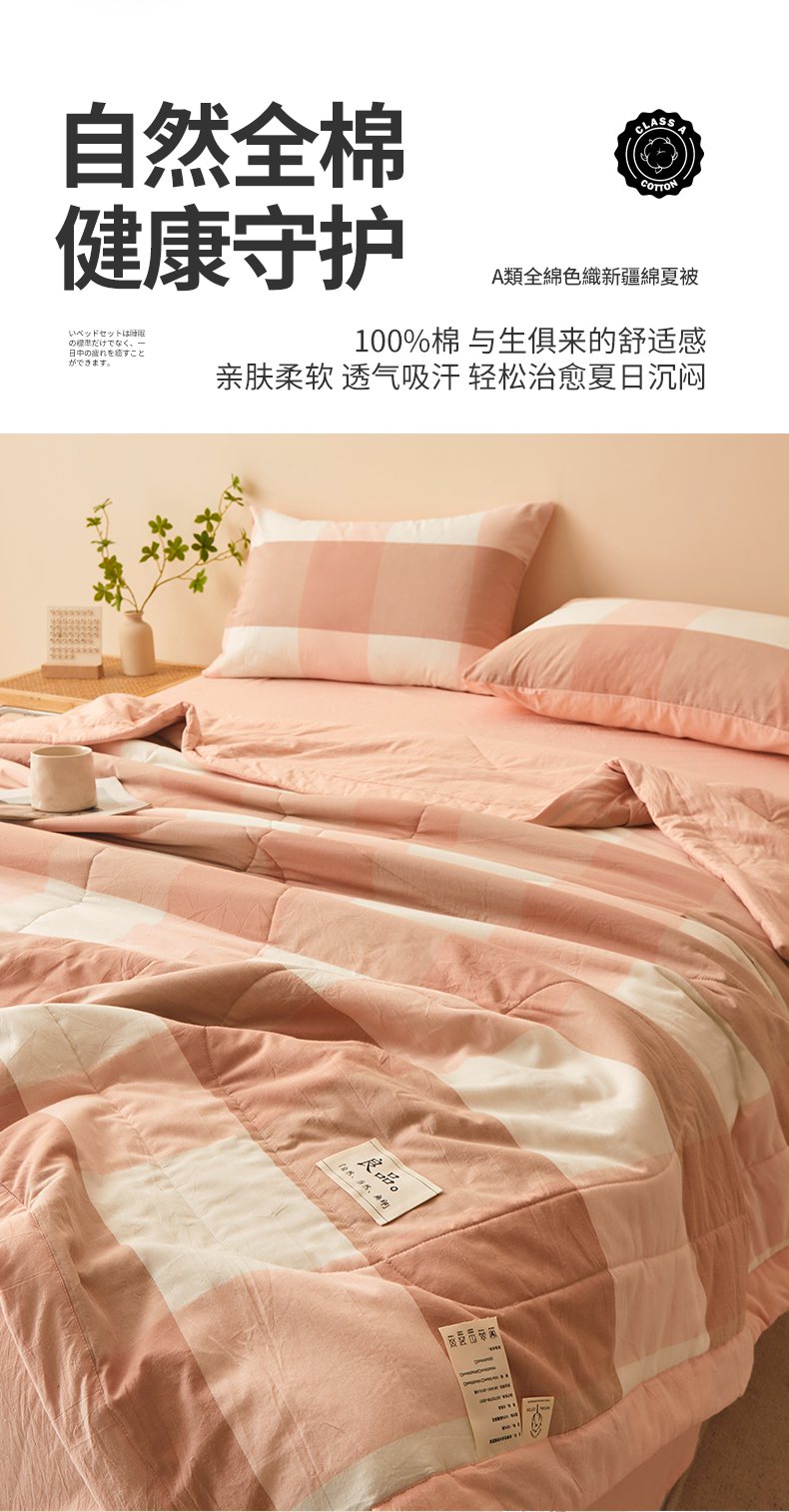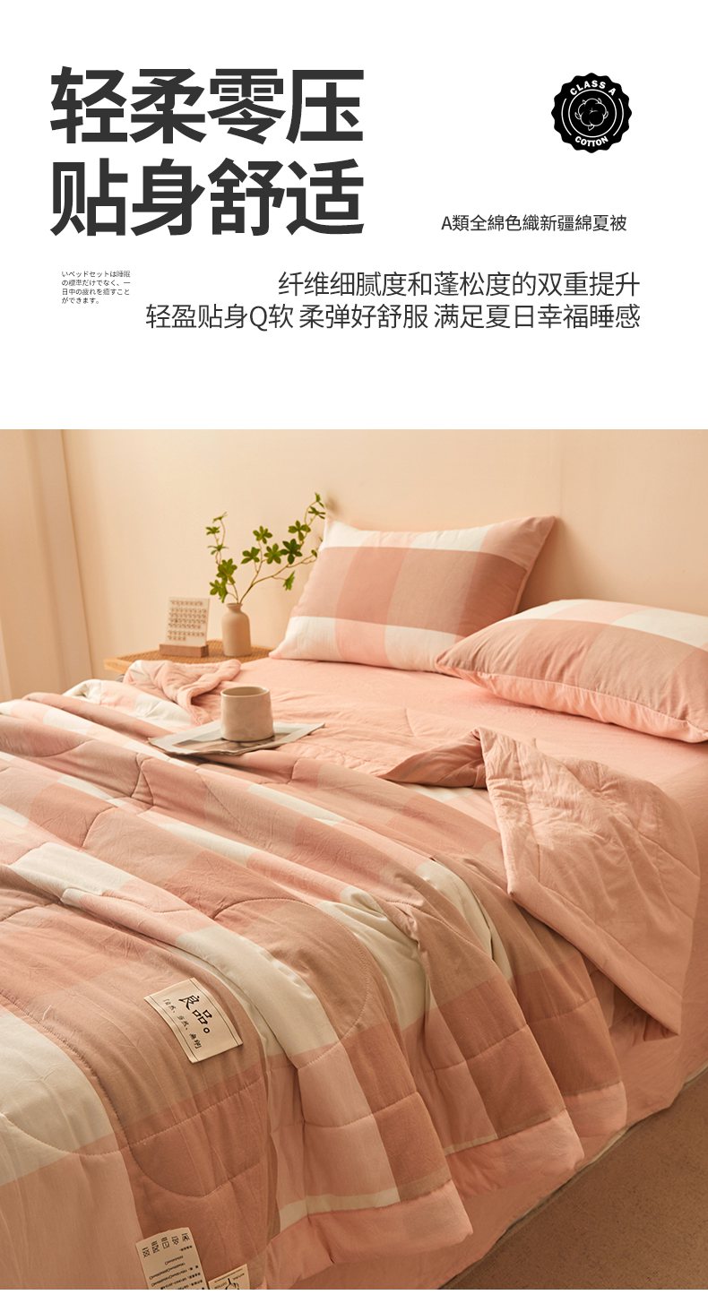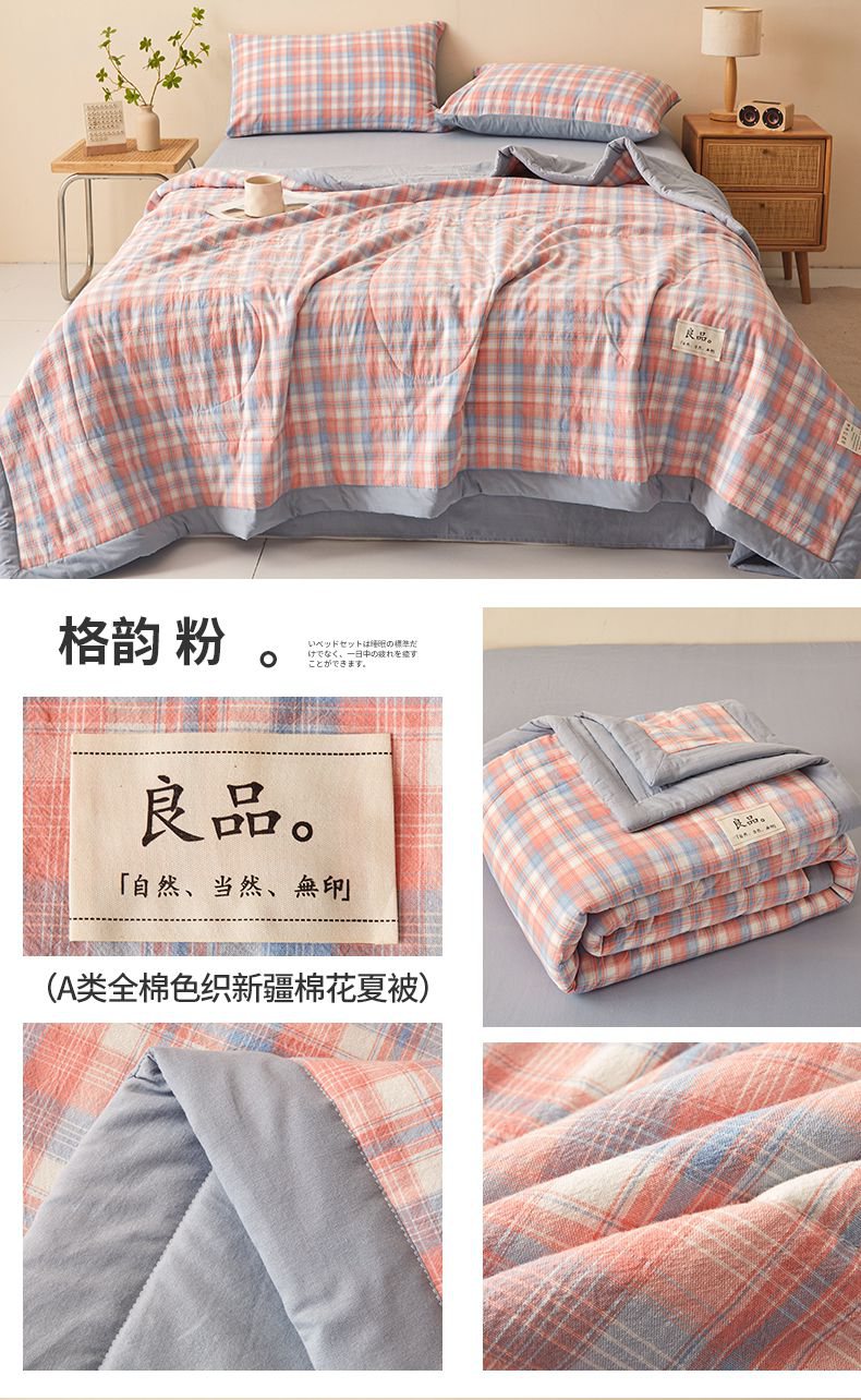 • 91家纺网 家纺一手货源 找家纺 秋泽家纺 2025新款全棉色织水洗棉棉花夏被夏凉被空调被 粉大格