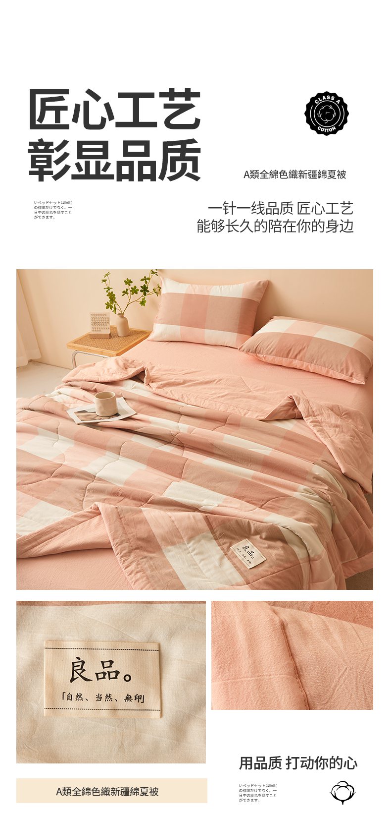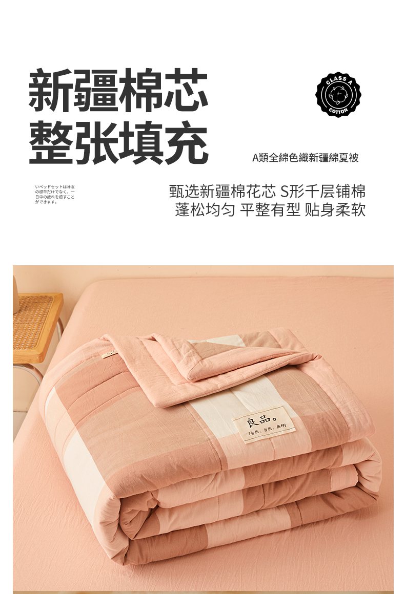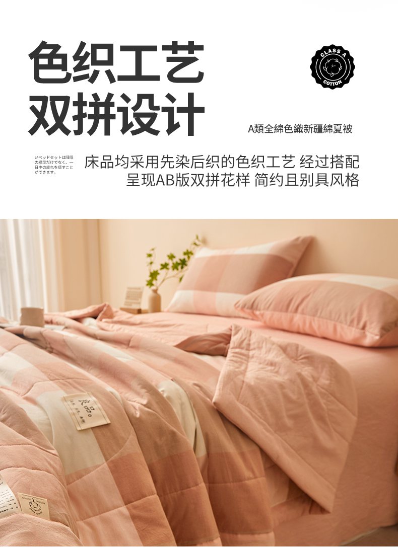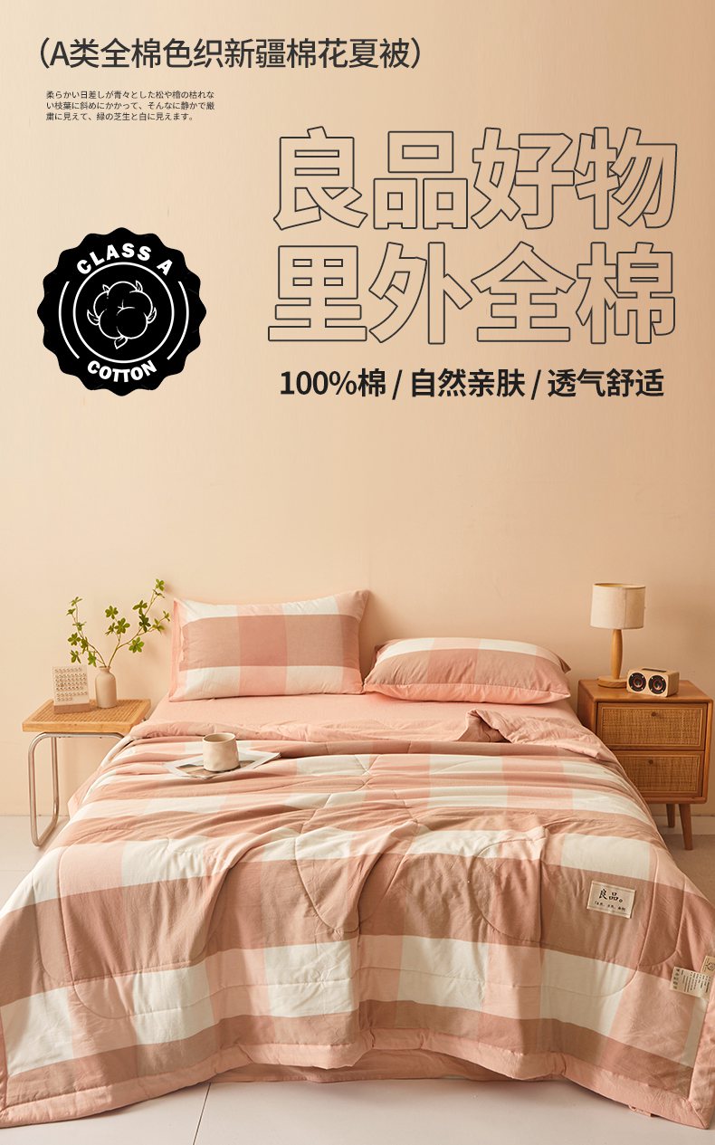 • 91家纺网 家纺一手货源 找家纺 秋泽家纺 2025新款全棉色织水洗棉棉花夏被夏凉被空调被 粉大格