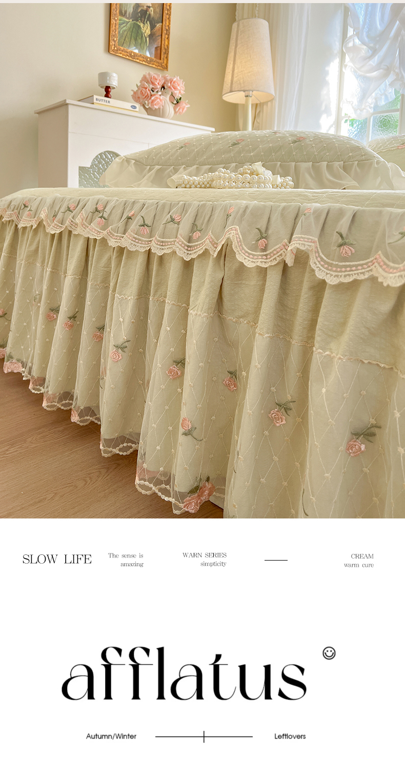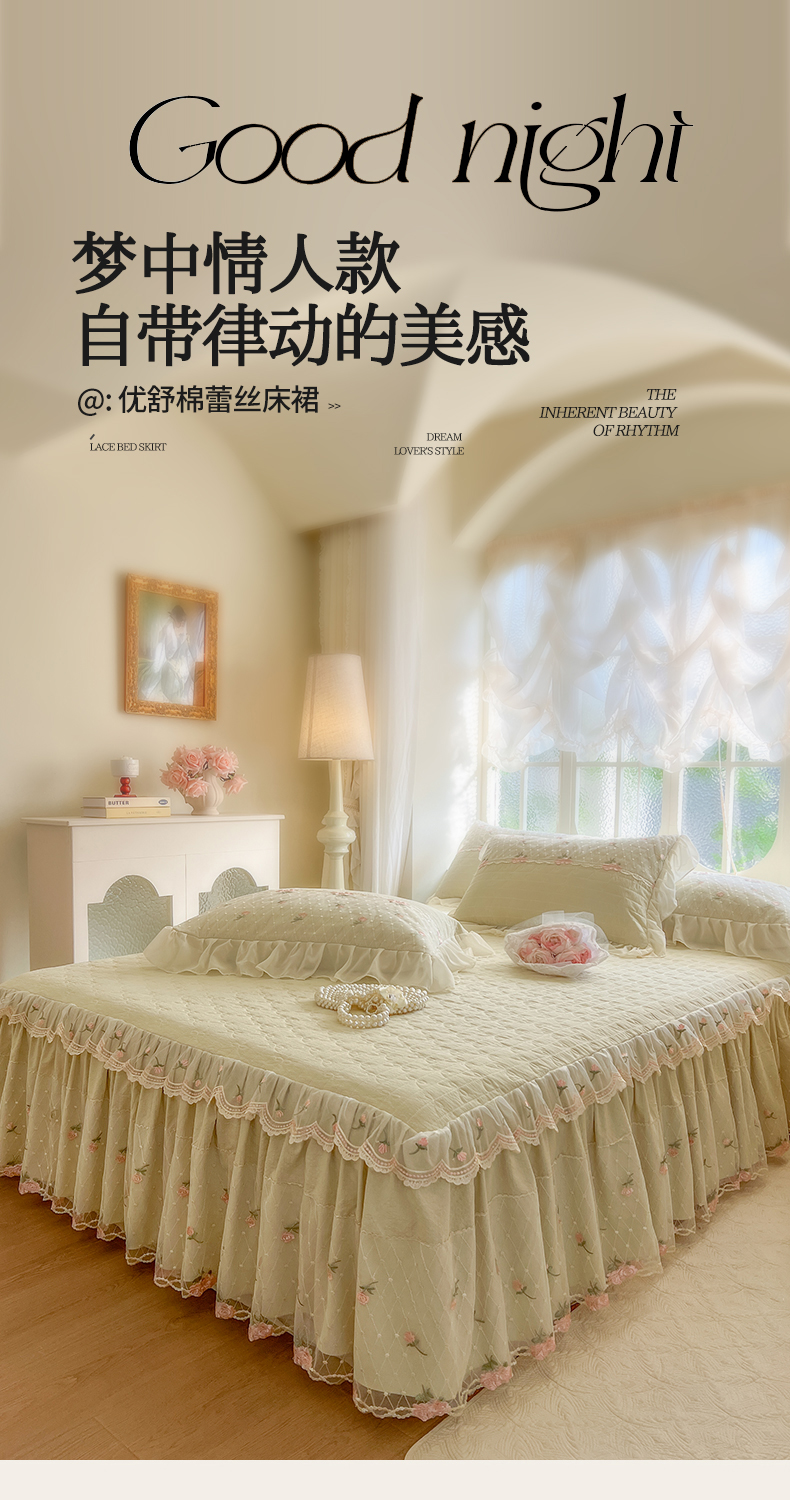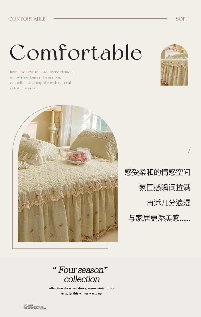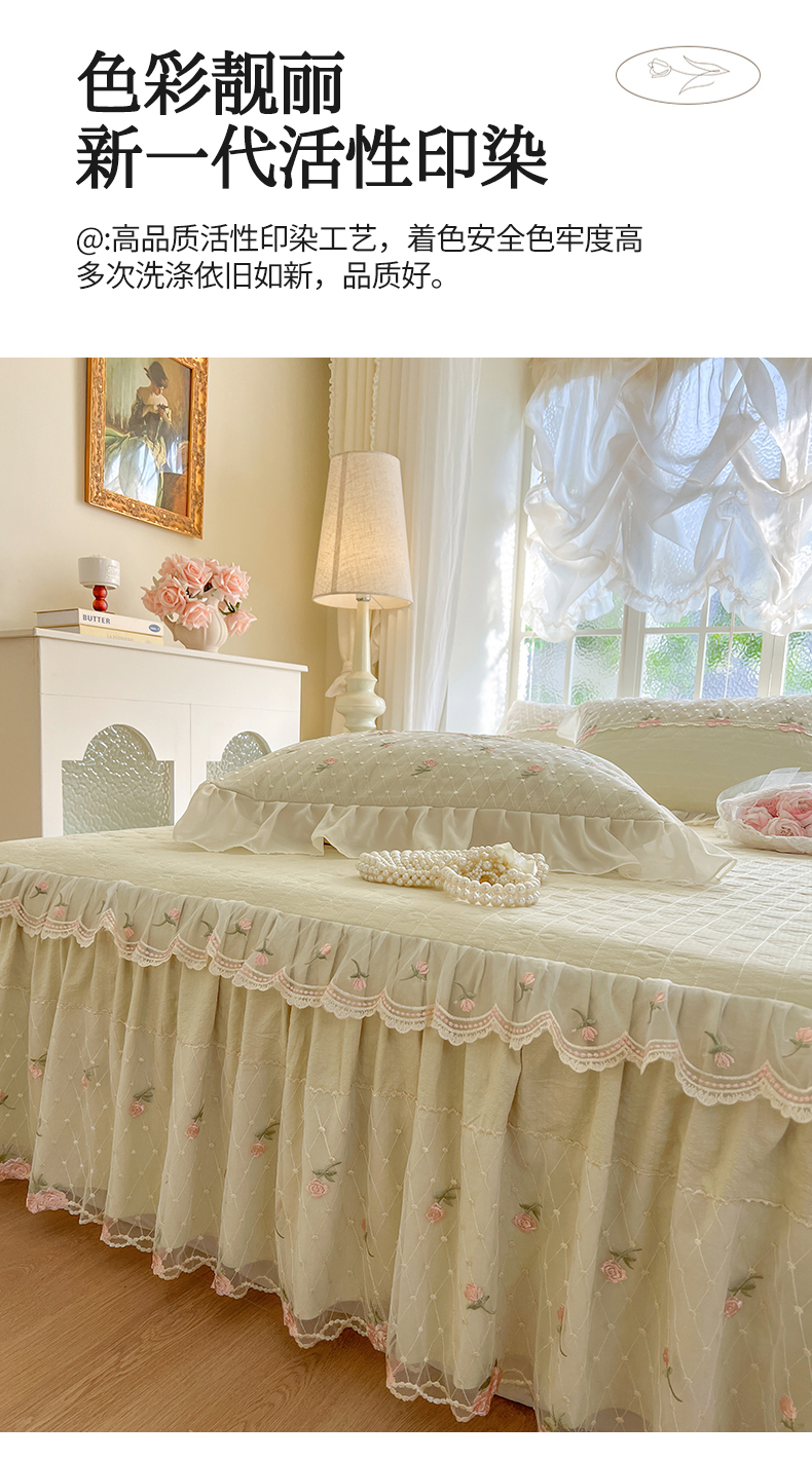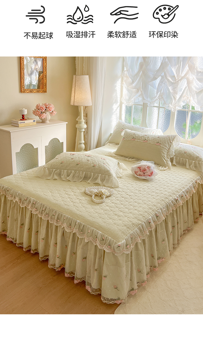 当前位置: 91家纺网 > 商品网购 > 床品套件 > 三件套 > 2025新款优舒棉蕾丝花边床裙三件套-玛格丽 柚黄
