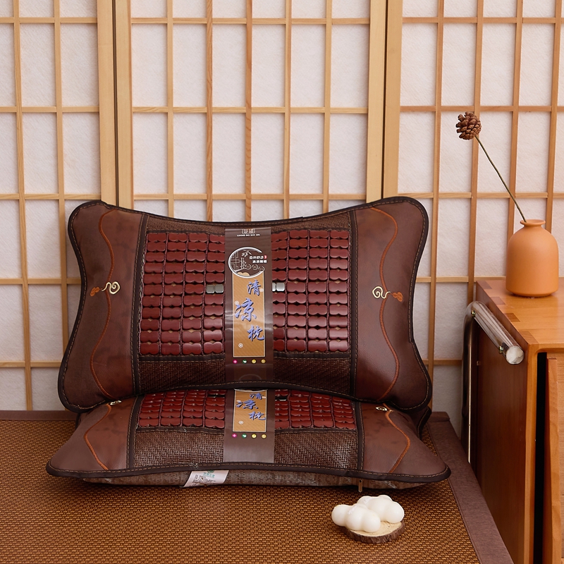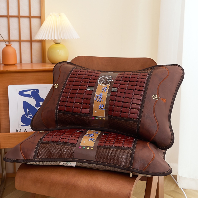 (总)优波兔 2025新款夏凉枕冰藤中式一体式绣花圆枕(37x57)荞麦壳枕,中式冰藤圆枕37x57,中式冰藤圆枕 单枕套