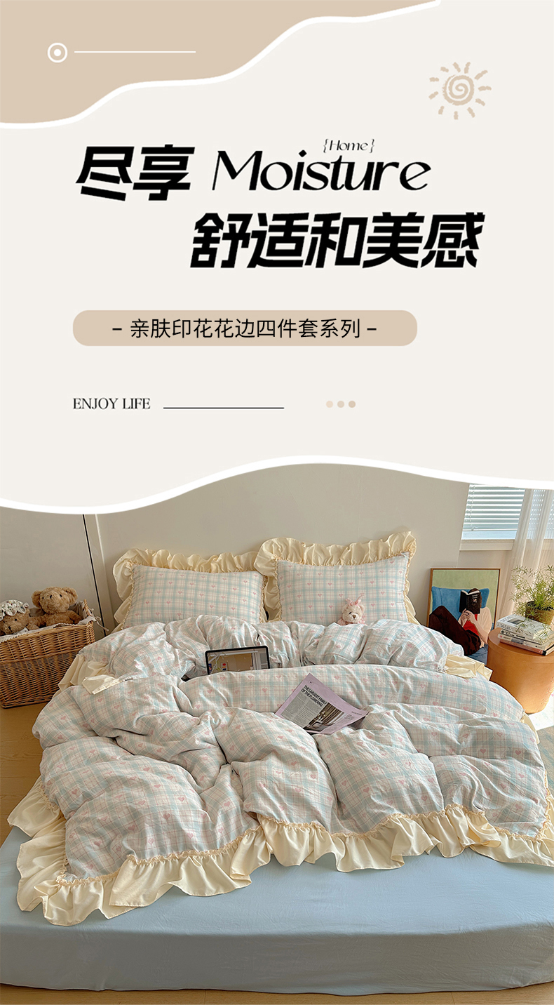 当前位置: 91家纺网 > 商品网购 > 床品套件 > 四件套 > 全棉普通四件套 > 盼季家纺 2025新款日韩系小碎花荷叶花边床上用品四件套 荷叶花边-陌笙