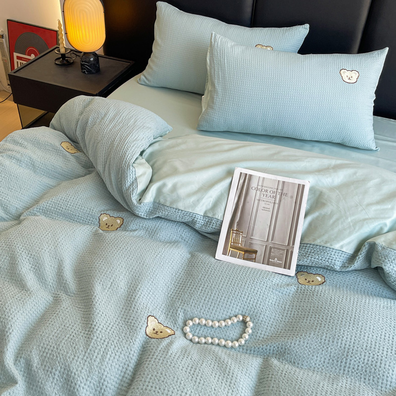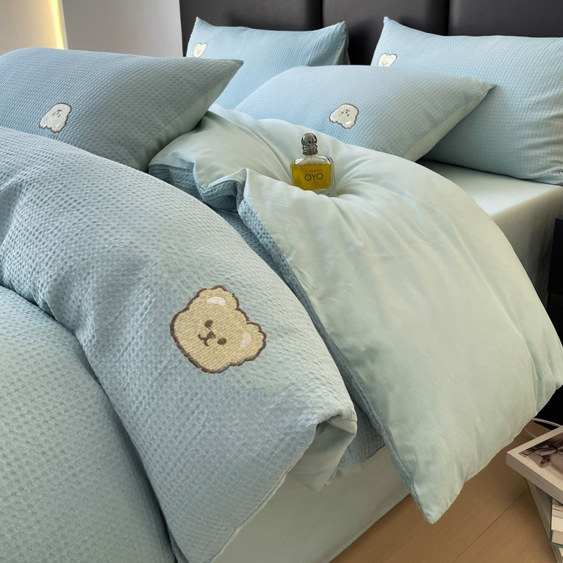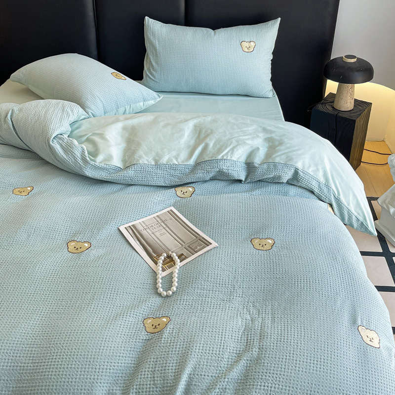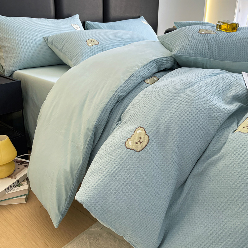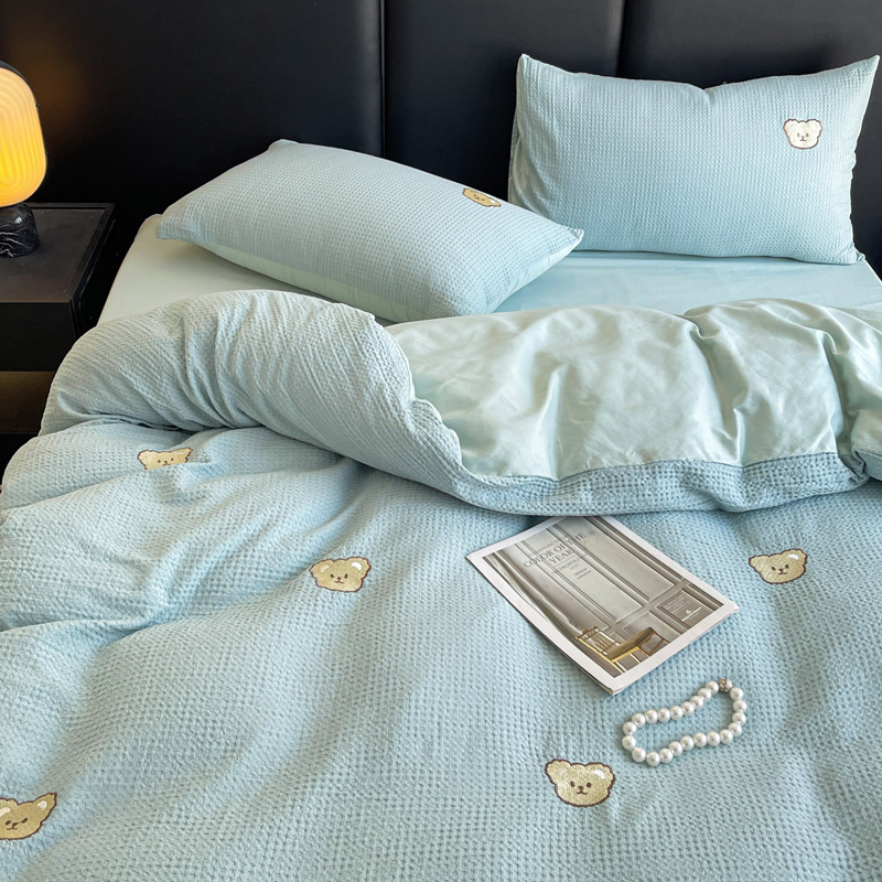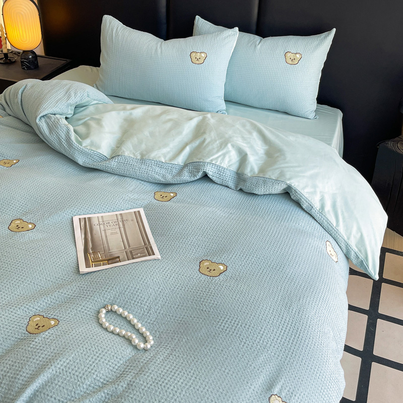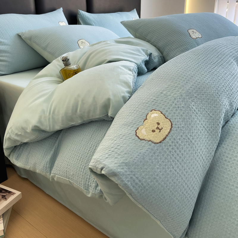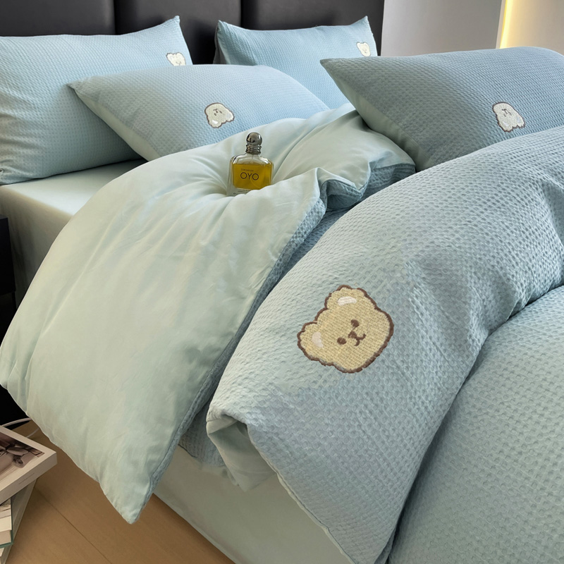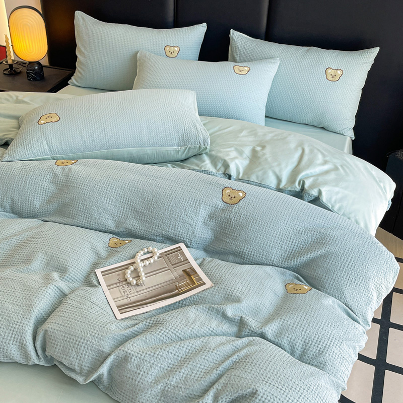 当前位置: 91家纺网 > 商品网购 > 床品套件 > 四件套 > 全棉普通四件套 > 静家居 2025新款全棉纯棉华夫格北欧小熊刺绣四件套系列-风格二 北欧小熊-露草