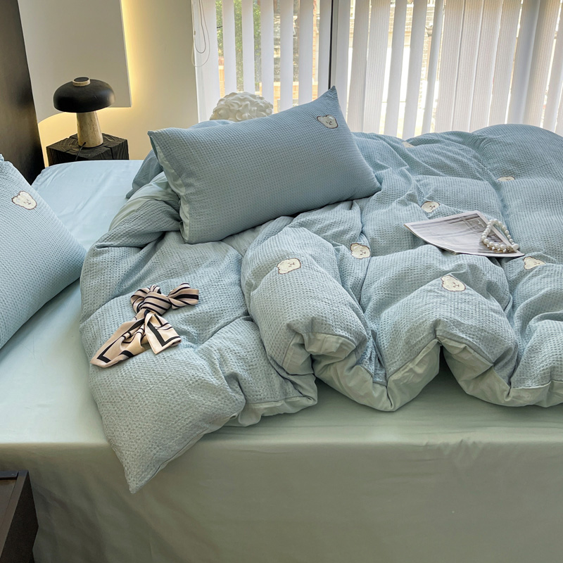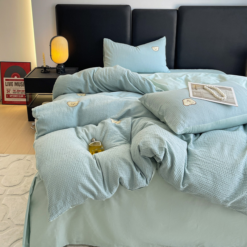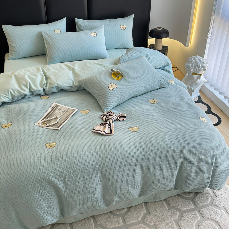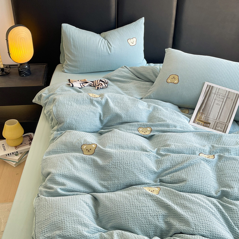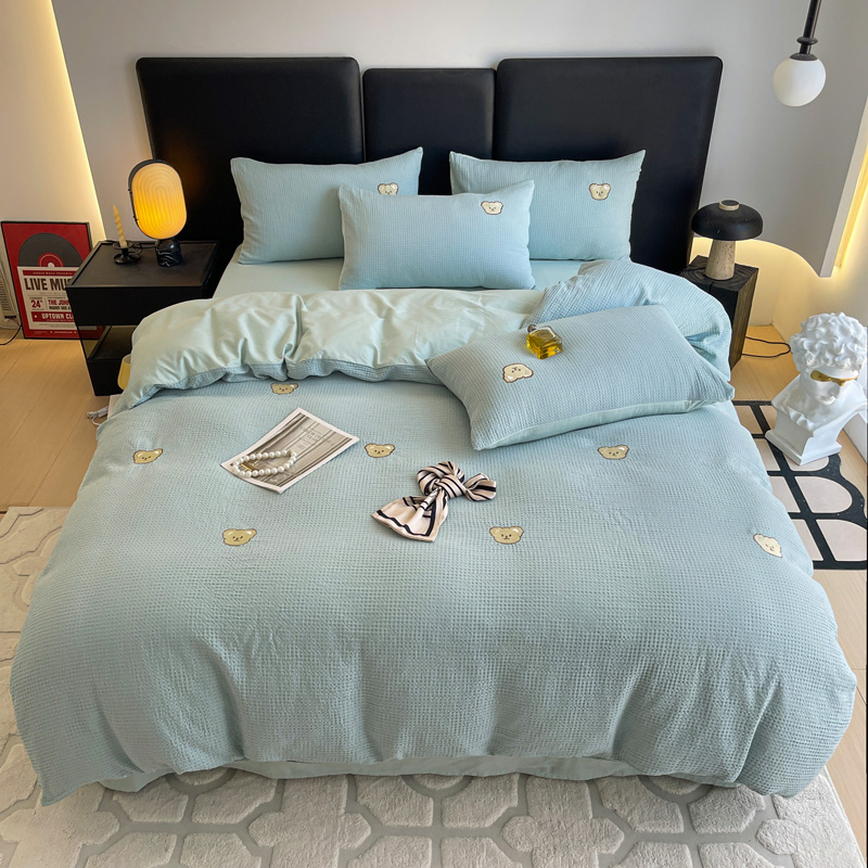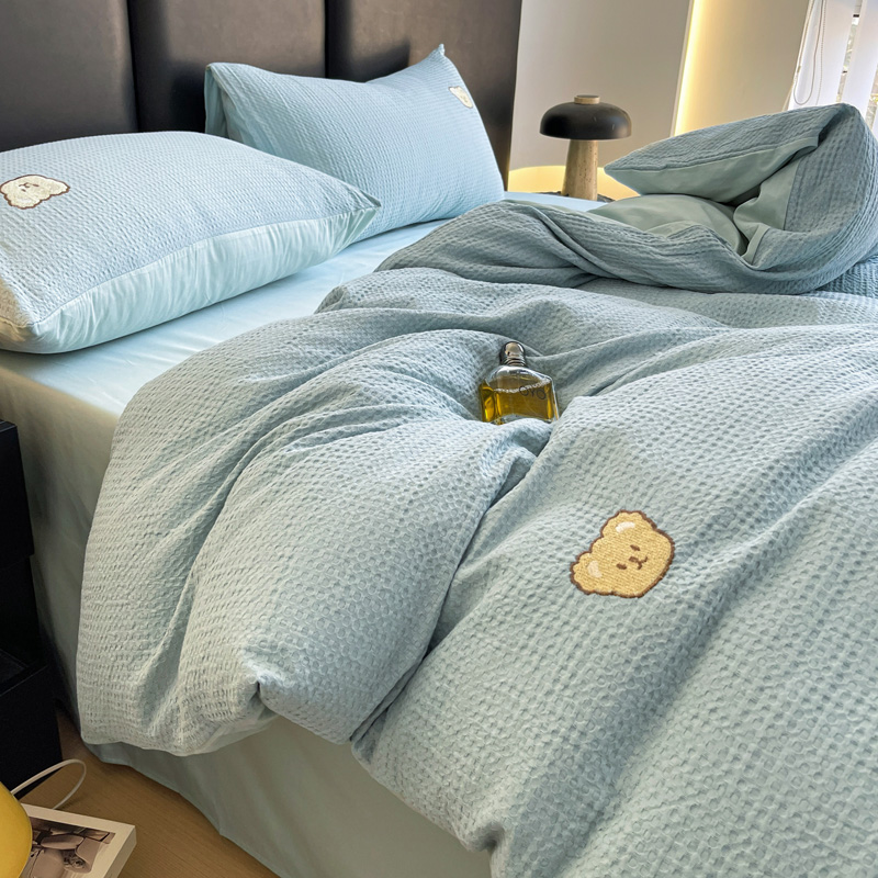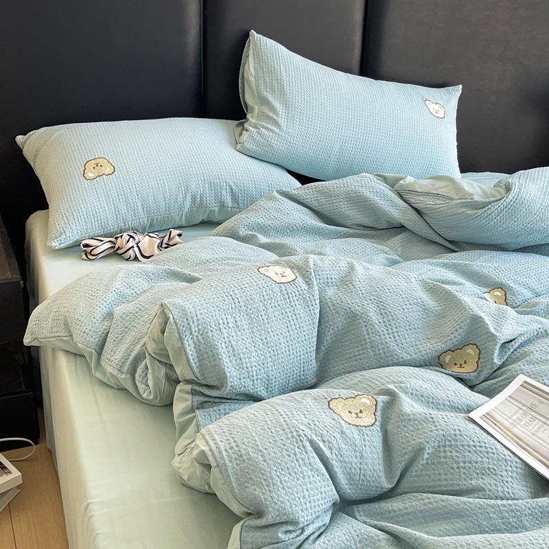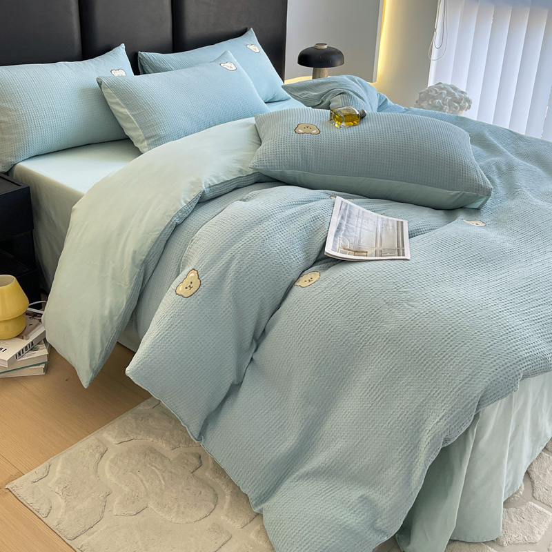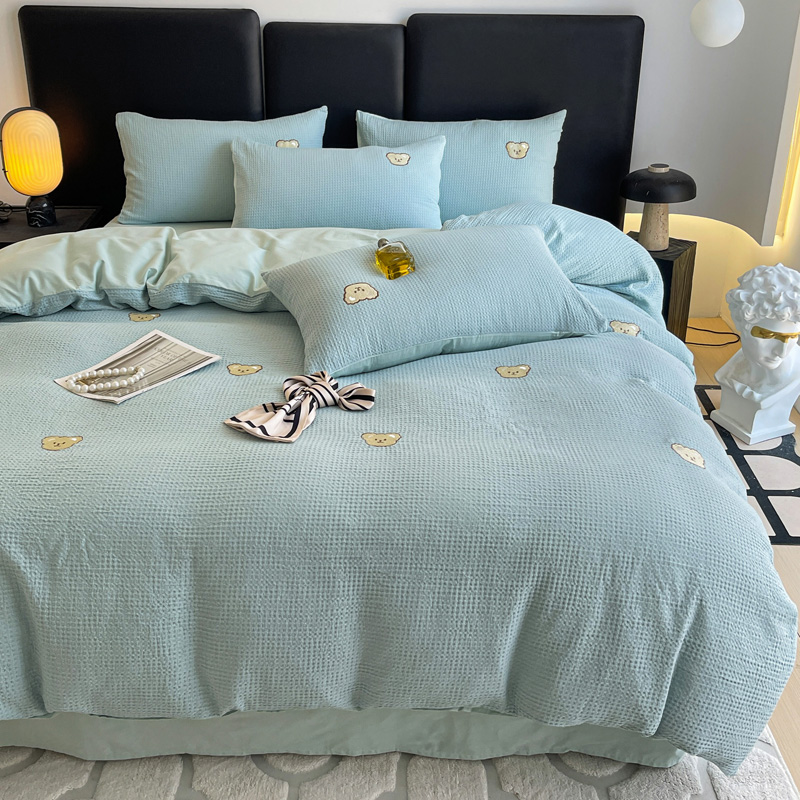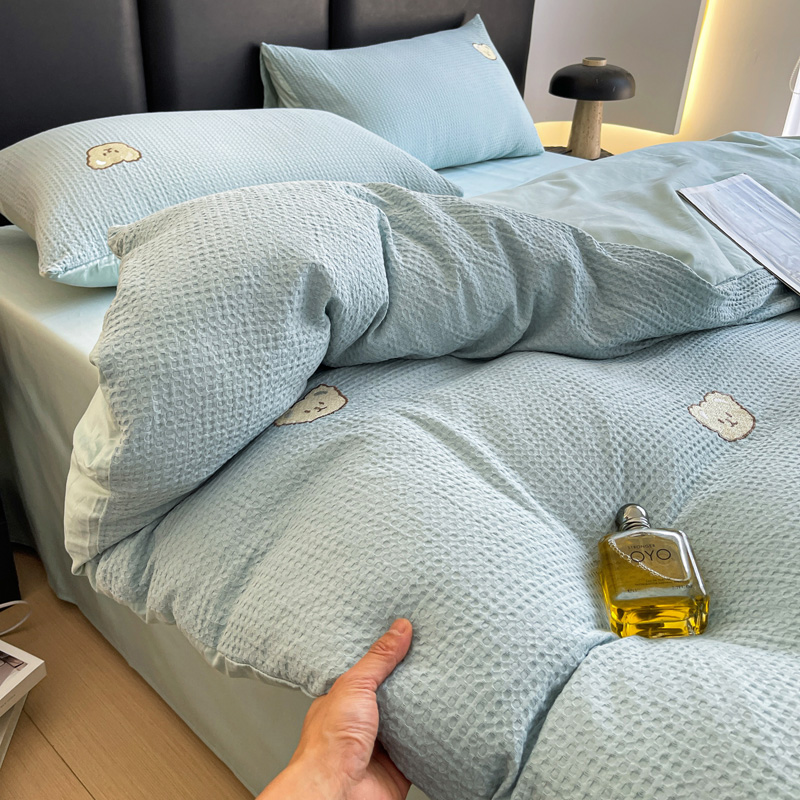 当前位置: 91家纺网 > 商品网购 > 床品套件 > 四件套 > 全棉普通四件套 > 静家居 2025新款全棉纯棉华夫格北欧小熊刺绣四件套系列-风格二 北欧小熊-露草