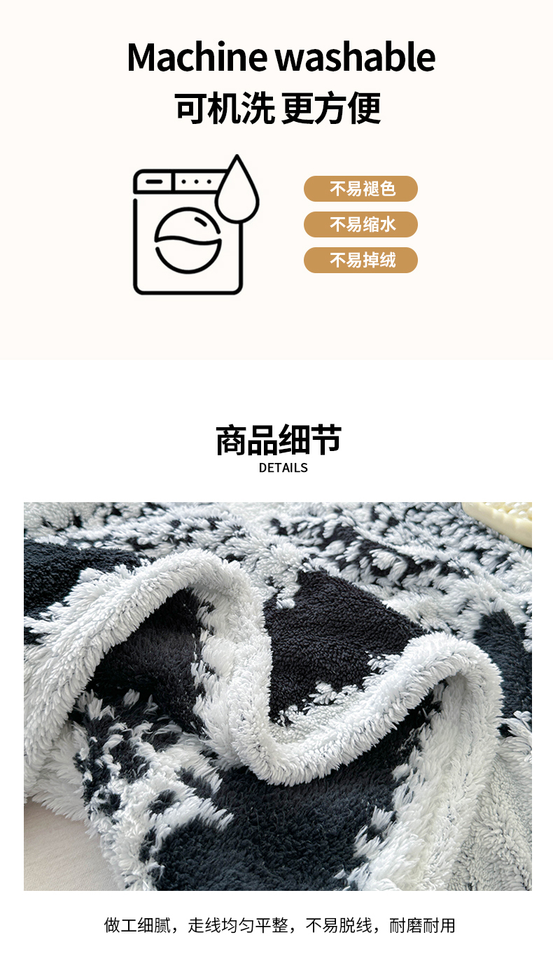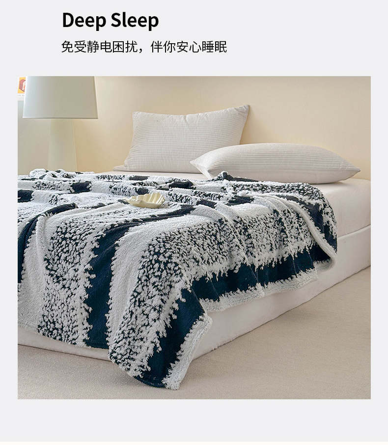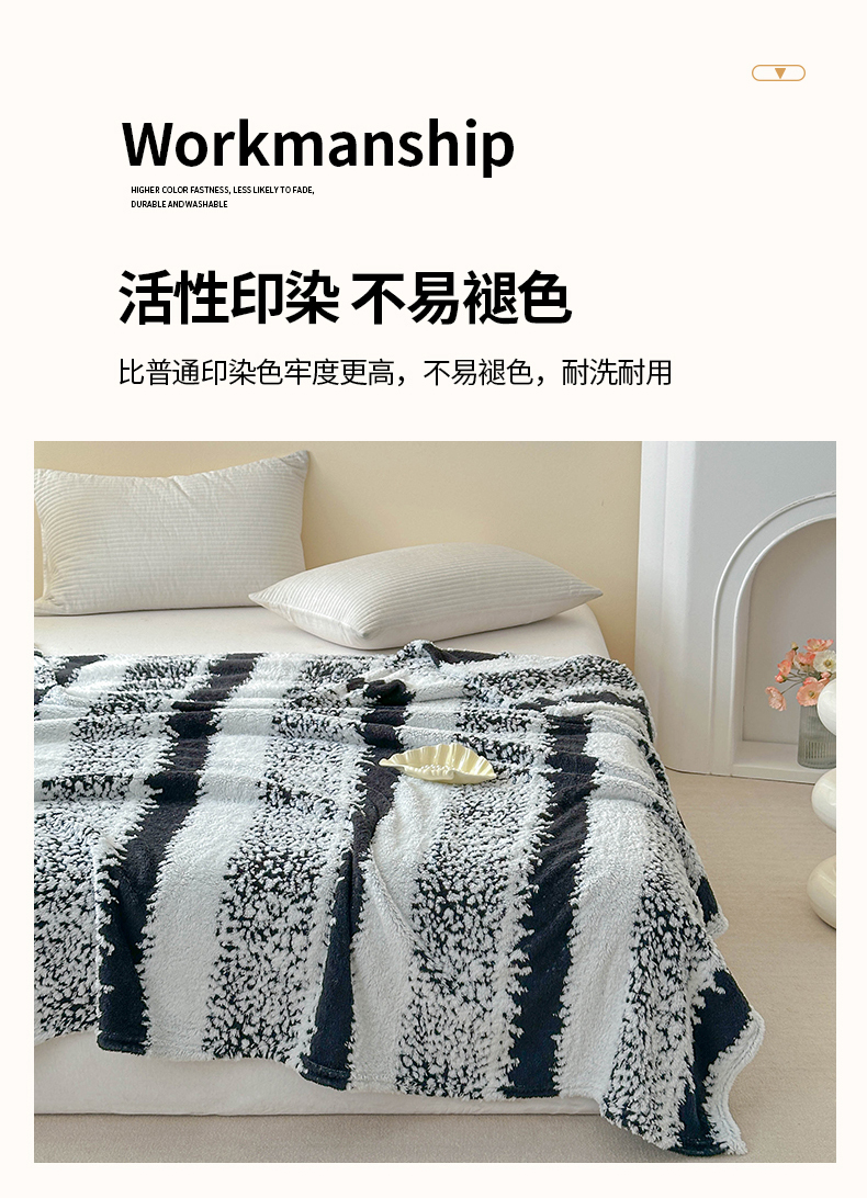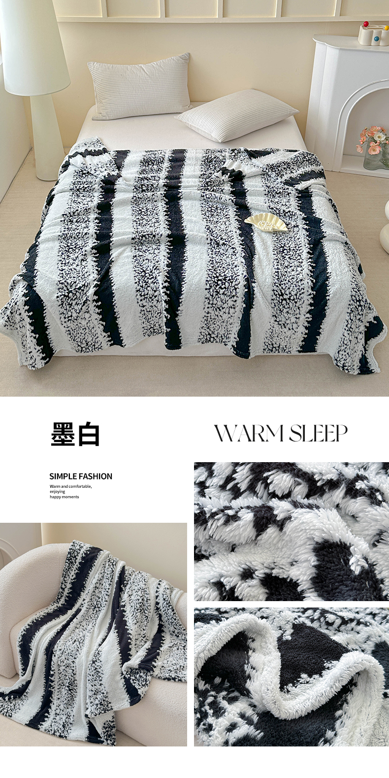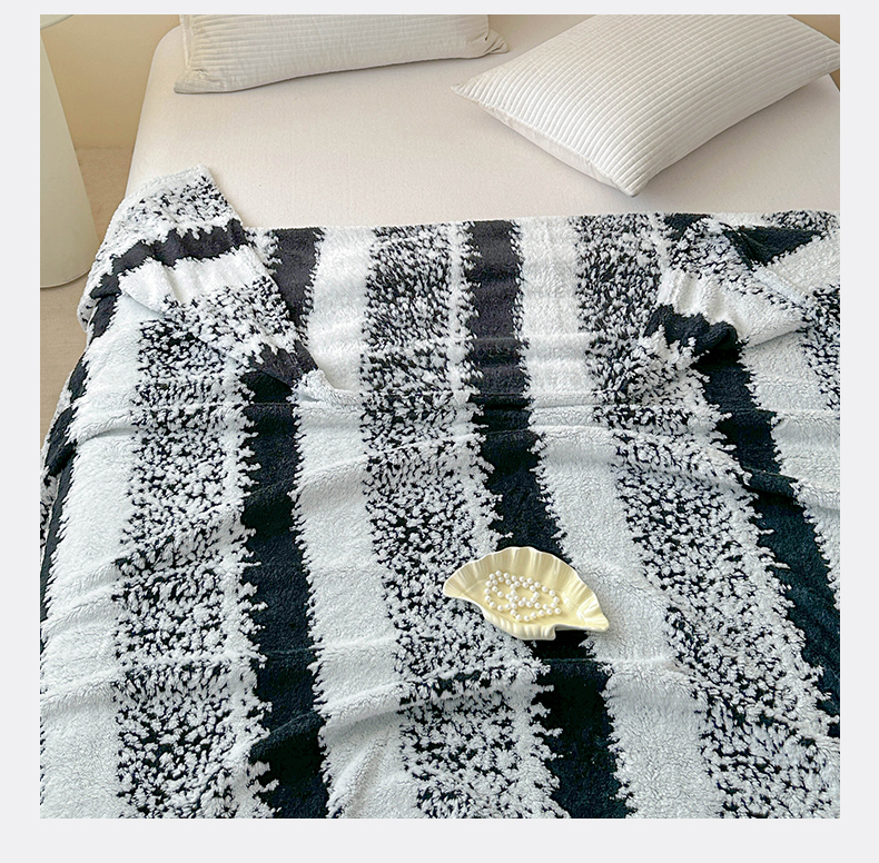 商品名称:枋梢家纺 2025新款ins风条纹阳离子提花保暖毛毯 墨白