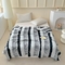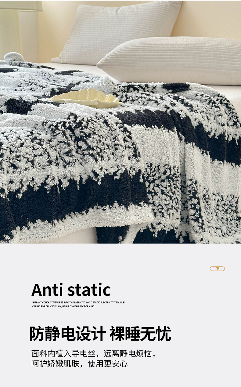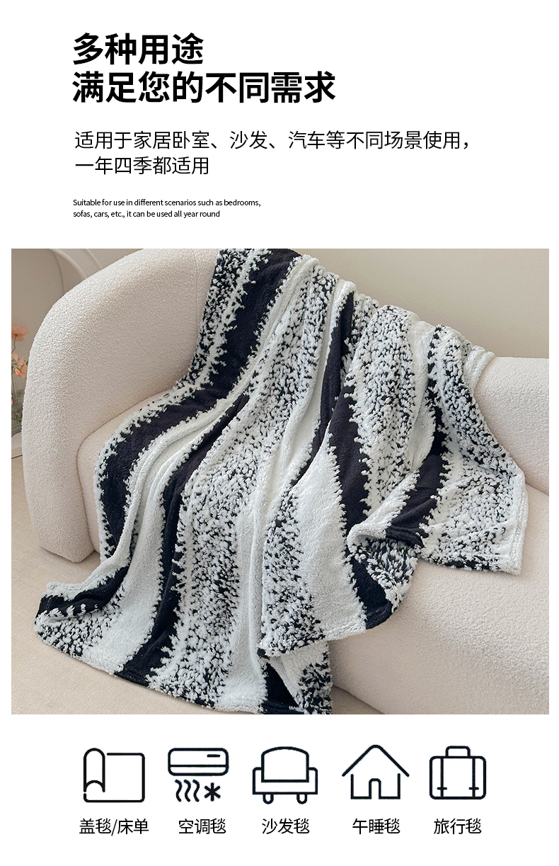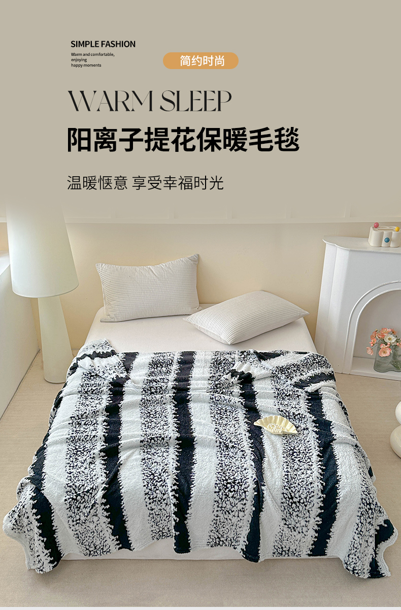 枋梢家纺 2025新款ins风条纹阳离子提花保暖毛毯 墨白
