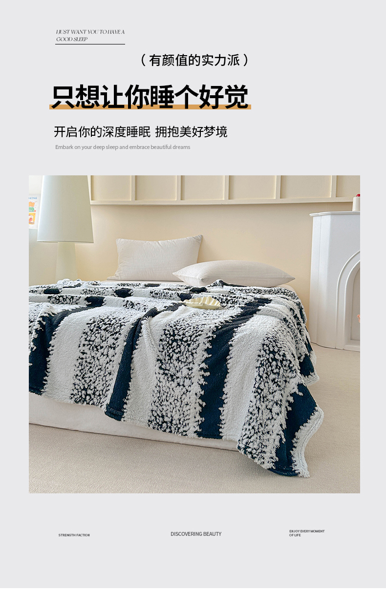 (总)枋梢家纺 2025新款仿兔毛绒大抽条羊羔绒毛毯反包双层条纹羊羔绒法兰绒毛毯跨境外贸,宝蓝,驼色,米白,豆沙粉,香芋紫,果绿,深灰,蓝灰,银灰