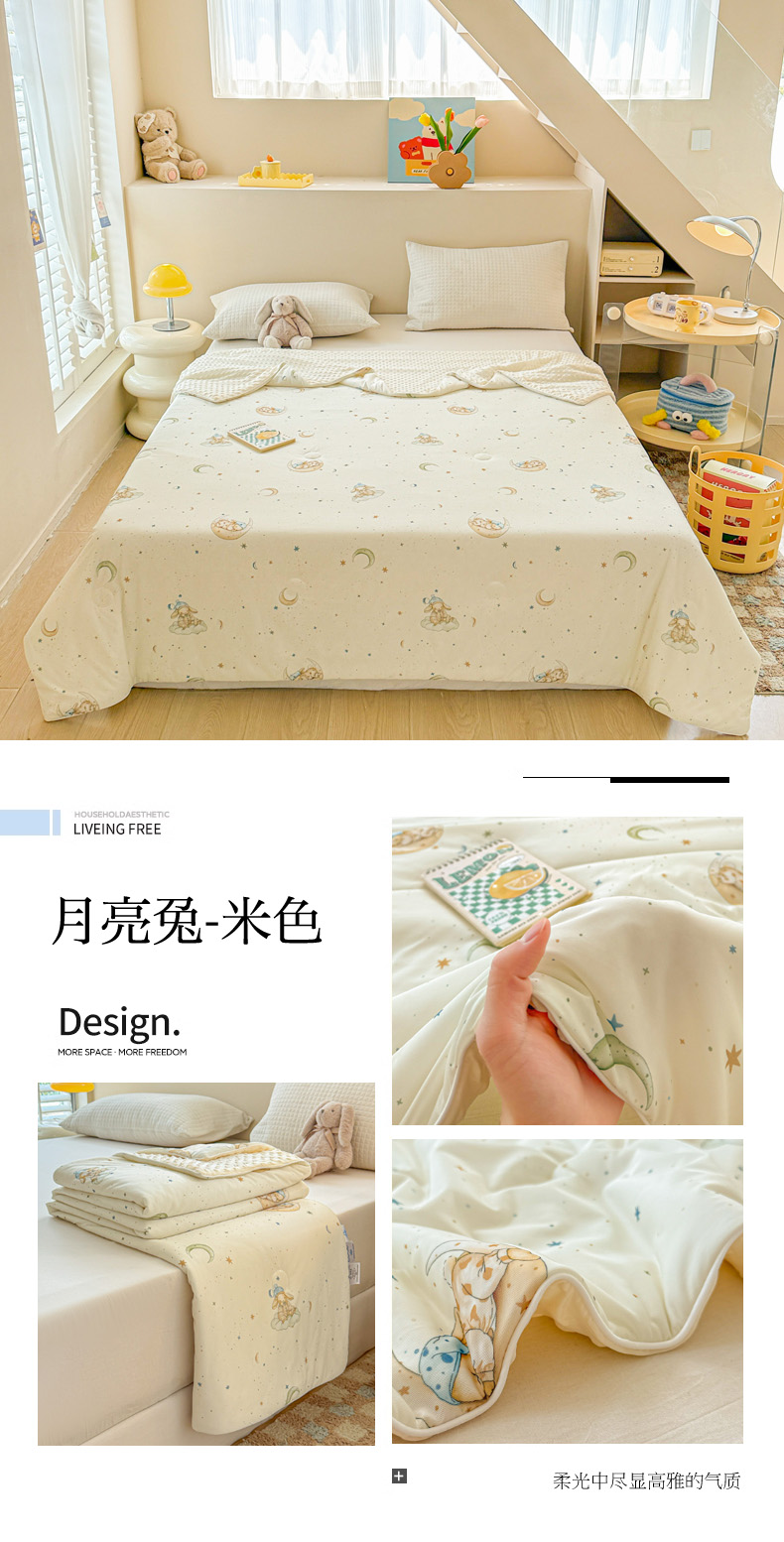 商品名称:米可 2025新款A类凉感丝冰豆豆夏凉被 月亮兔-米色