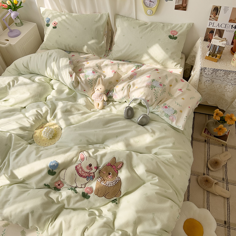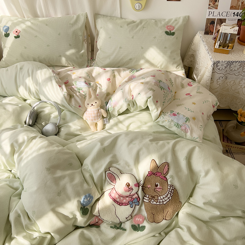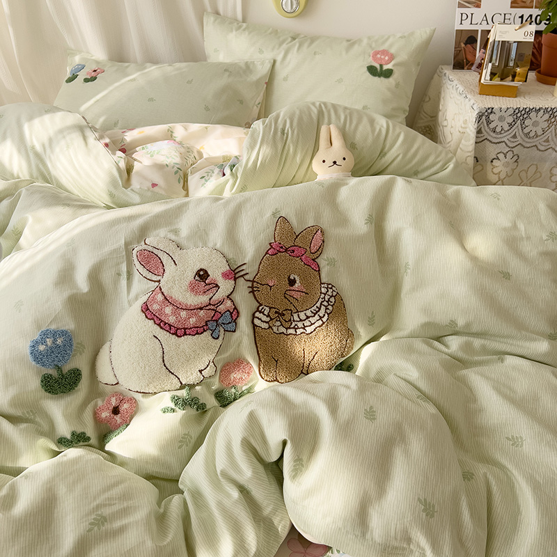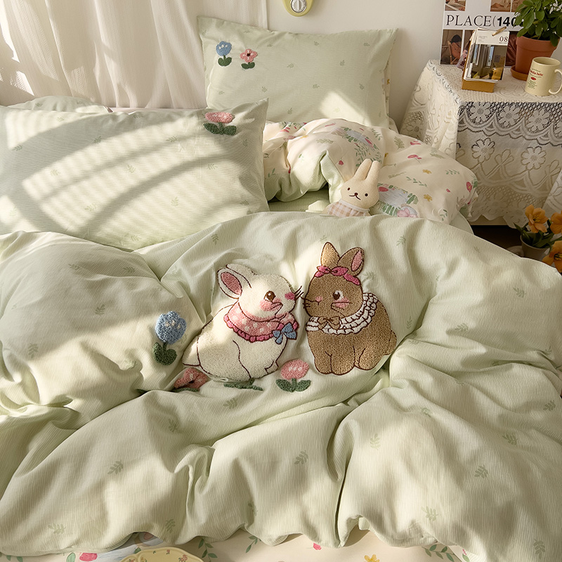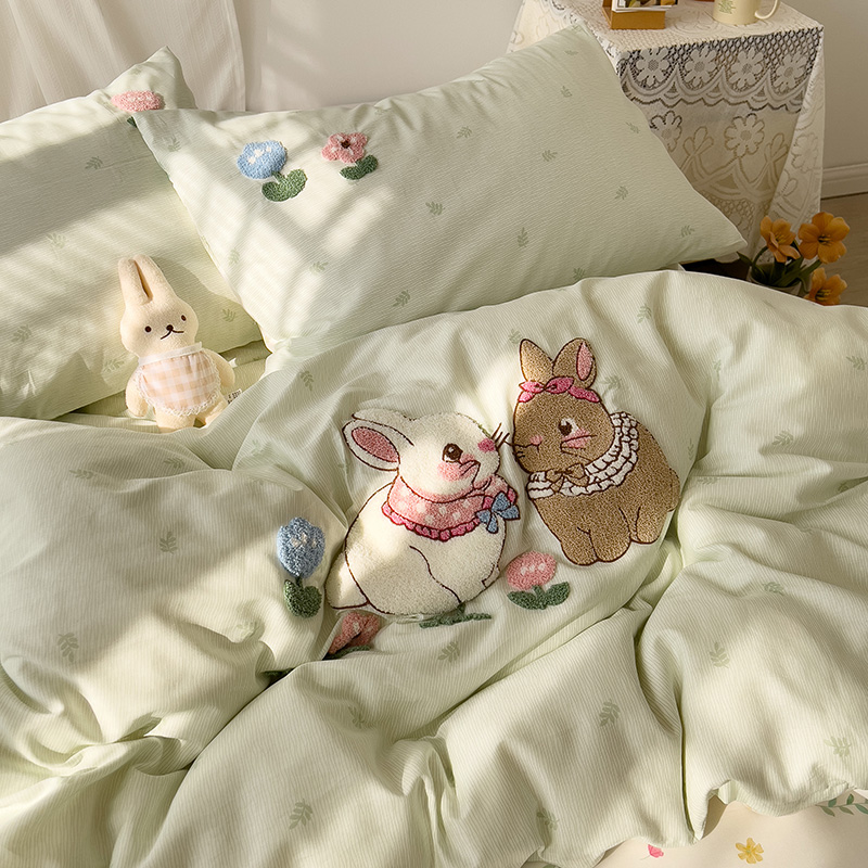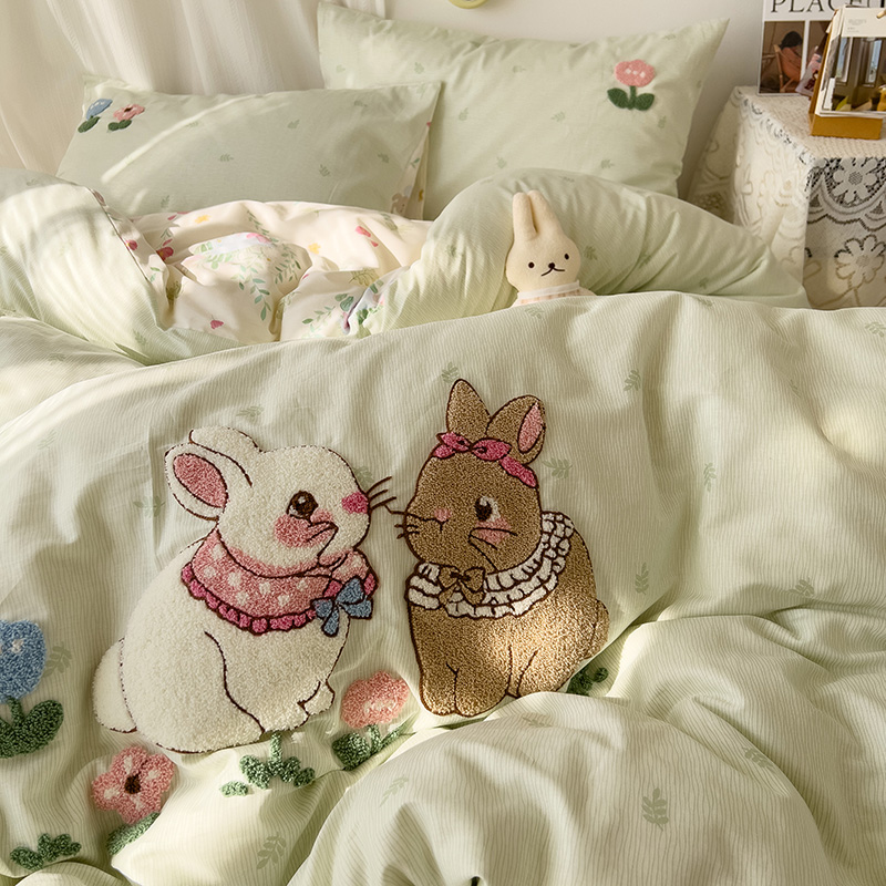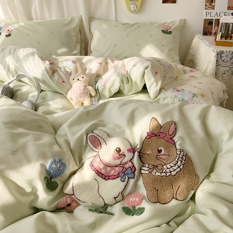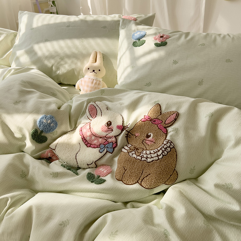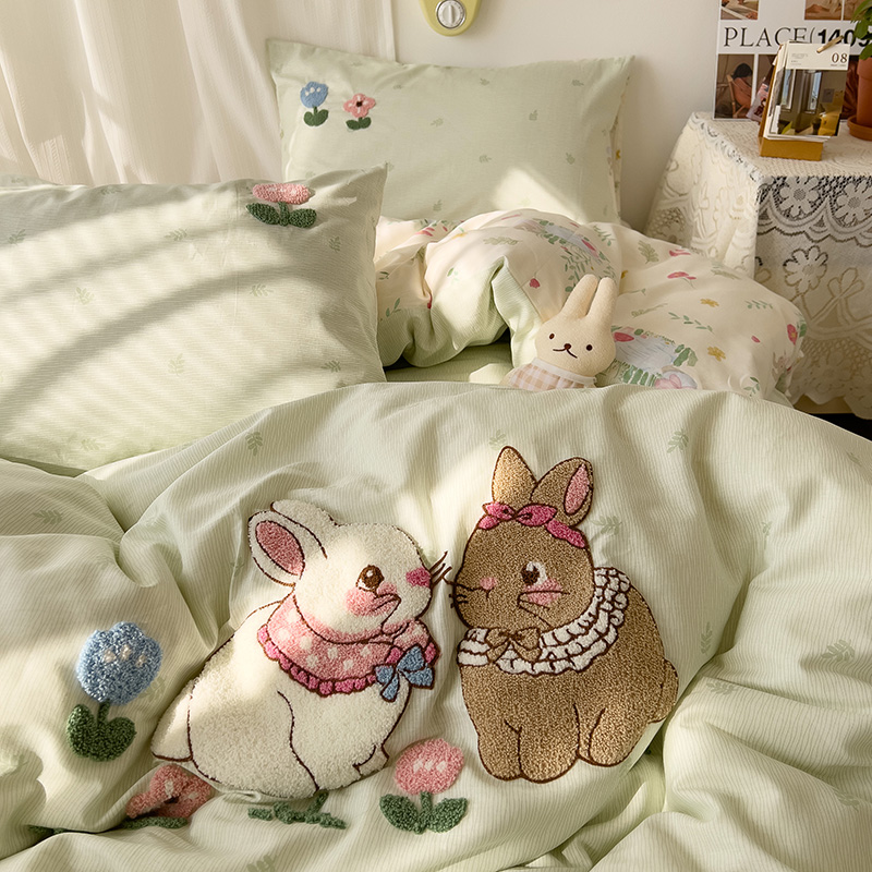 乐童家纺 2025新款13370纯棉毛巾绣呆萌系列四件套第二波 精灵小兔