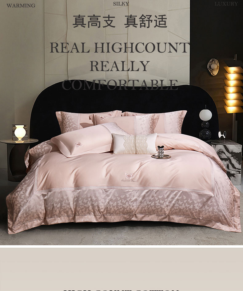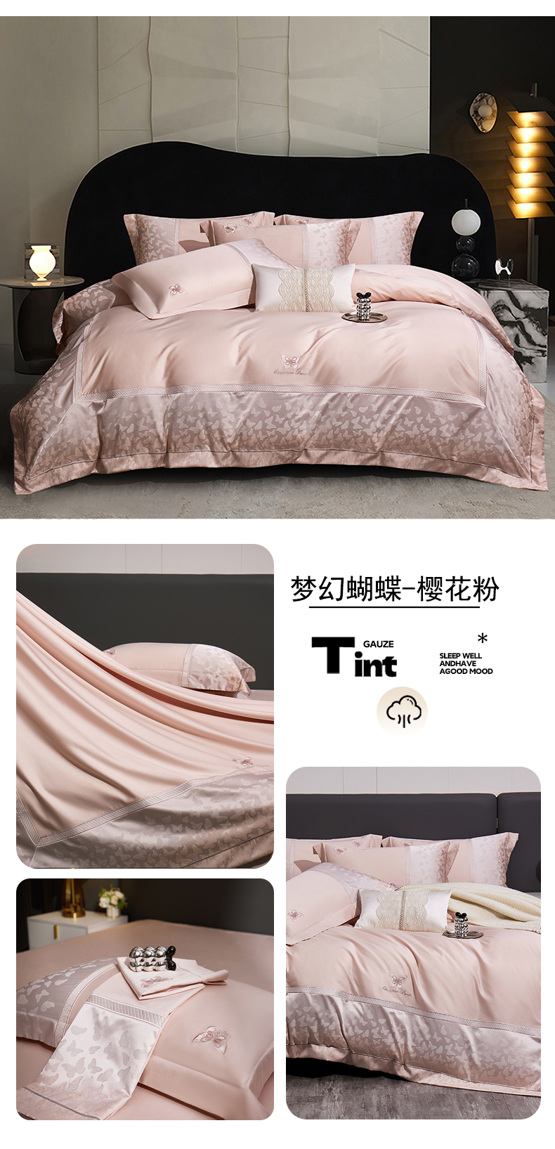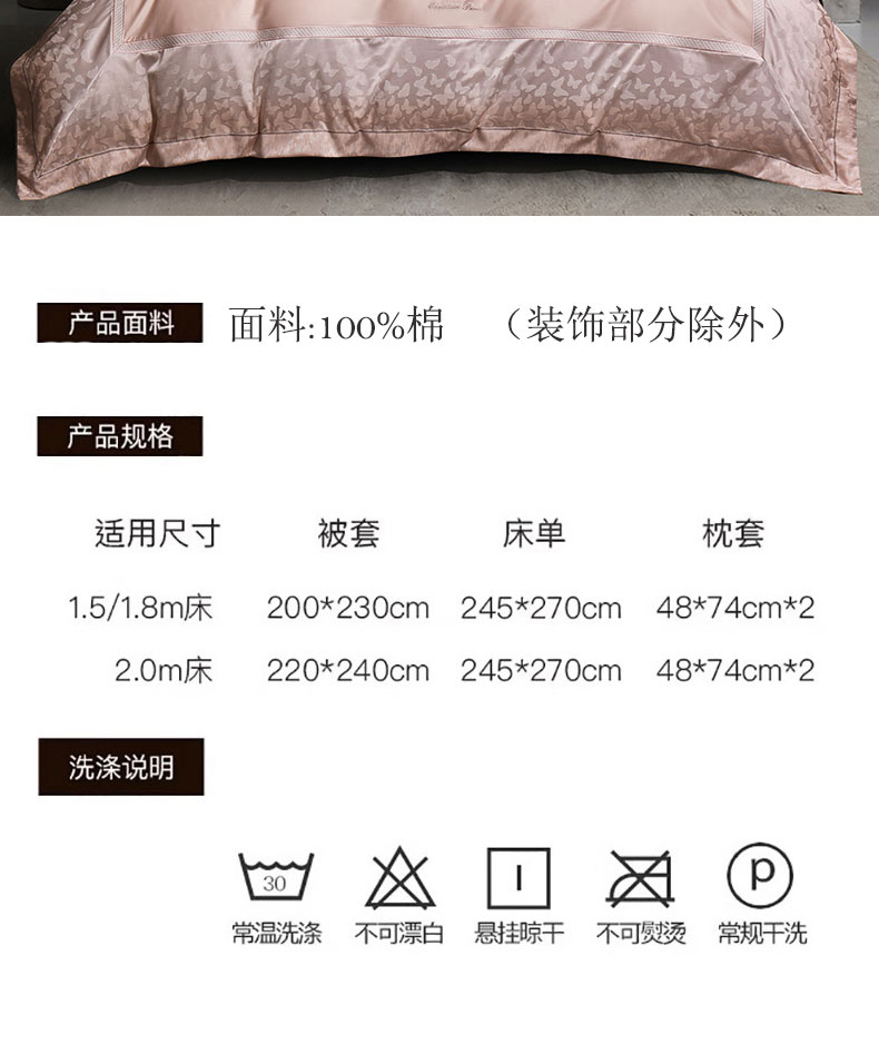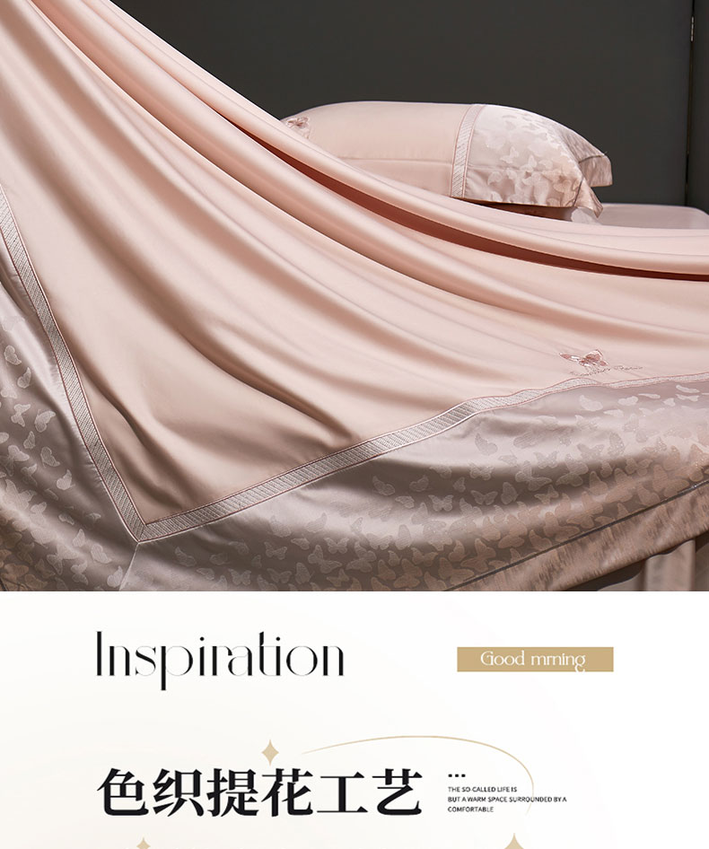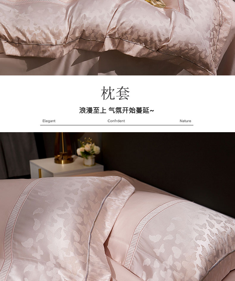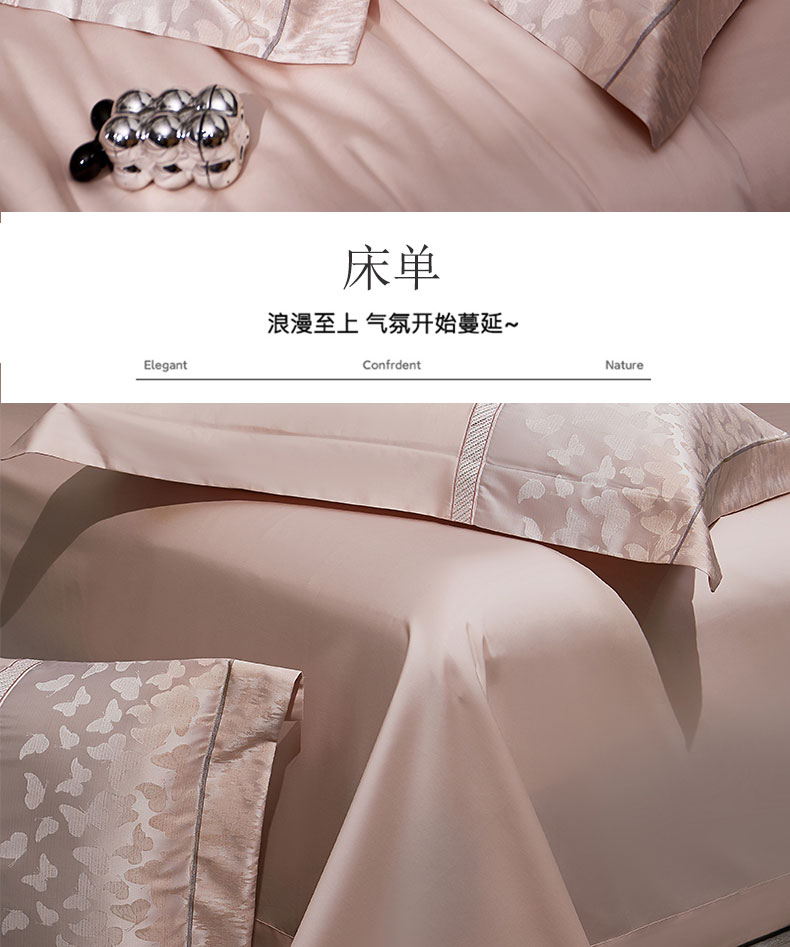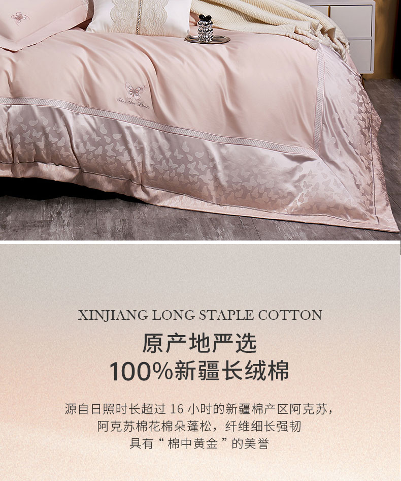 商品名称:蒂爵 2025新款居家长绒棉提花四件套梦幻蝴蝶系列 樱花粉