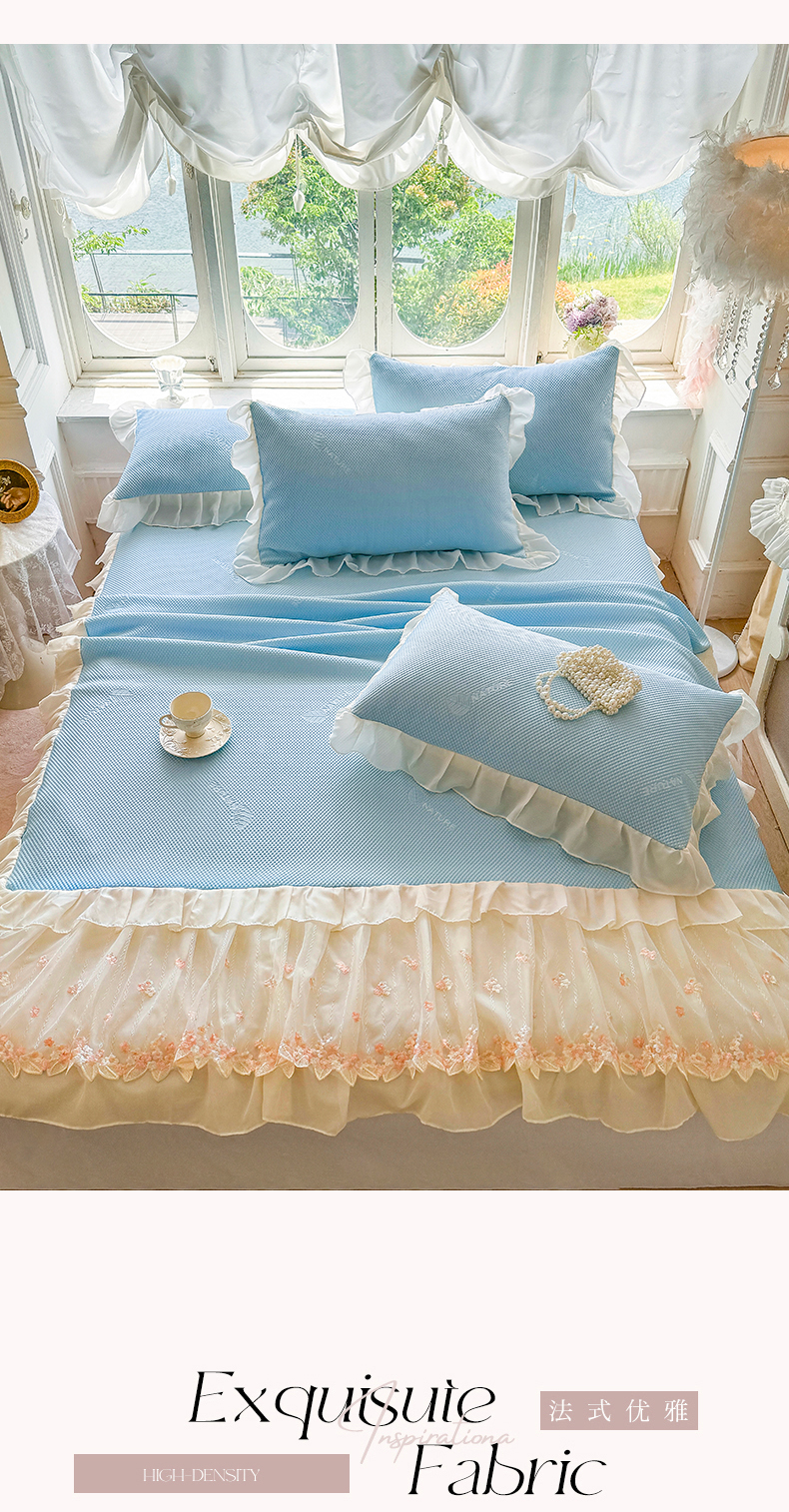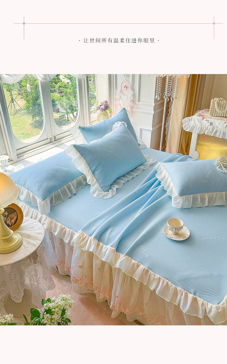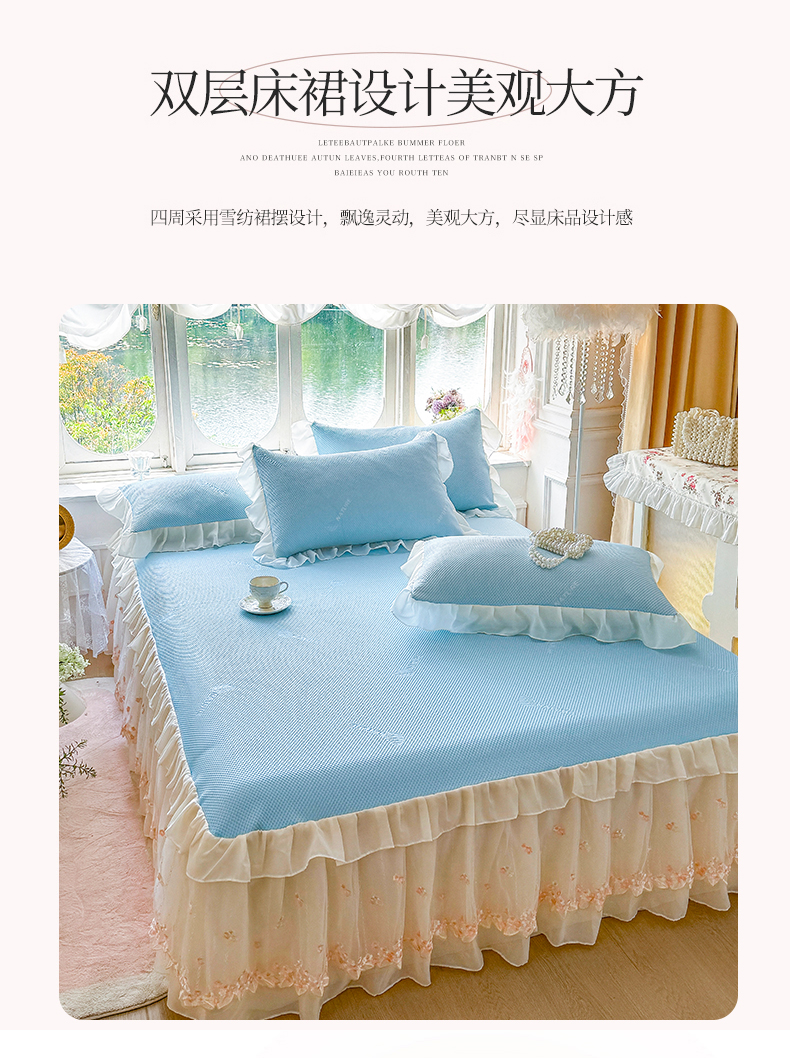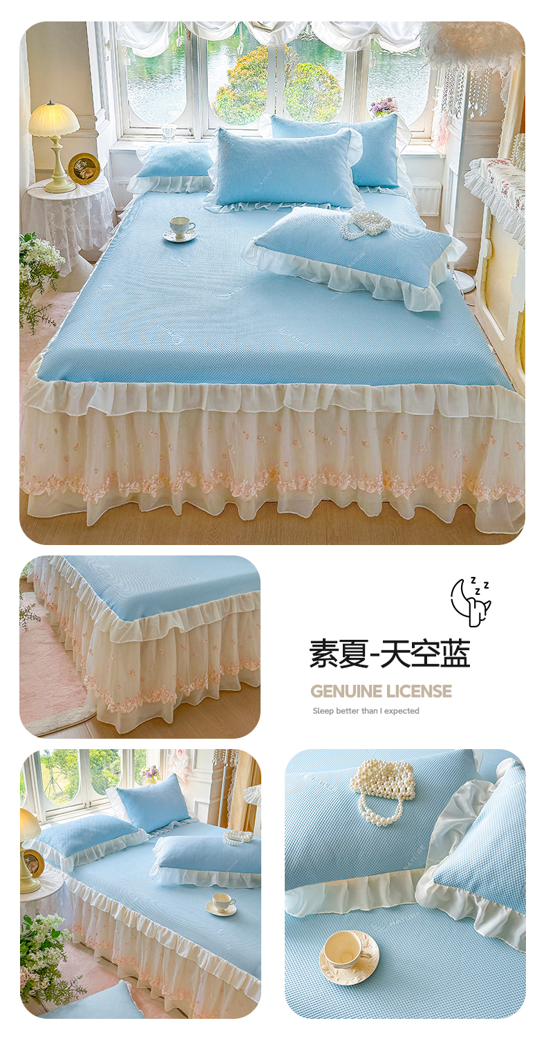商品名称:虹星家纺 2025新款A类冰感凉豆豆床裙席三件套-素夏 素夏-天空蓝