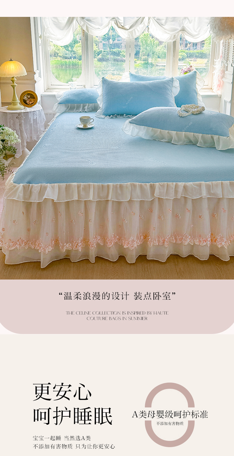 虹星家纺 2025新款A类冰感凉豆豆床裙席三件套-素夏 素夏-天空蓝