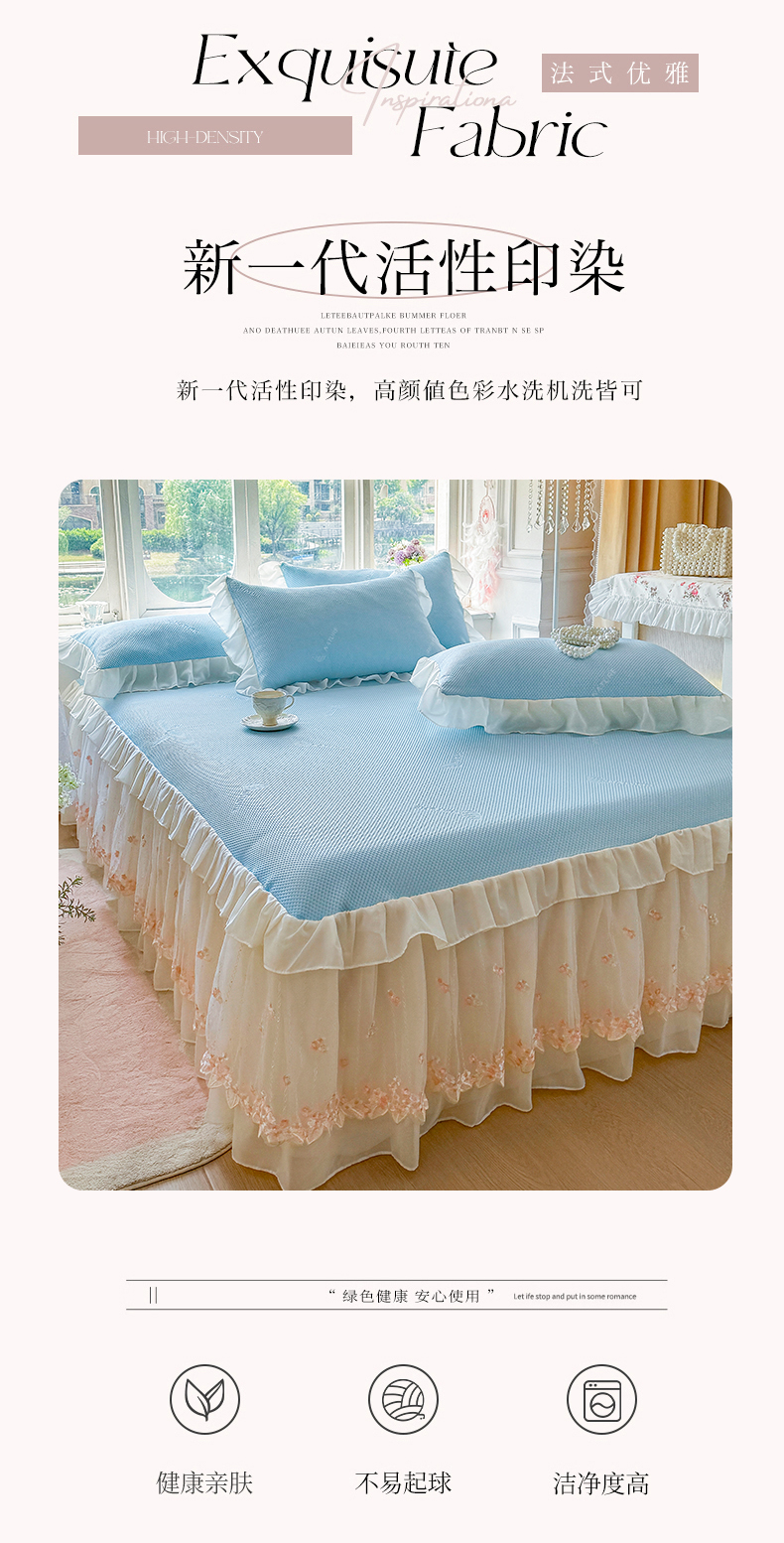 (总)虹星家纺 2025新款A类冰感凉豆豆床裙席三件套-素夏,素夏-抹茶绿,素夏-蜜桃粉,素夏-青果绿,素夏-天空蓝,素夏-月光灰