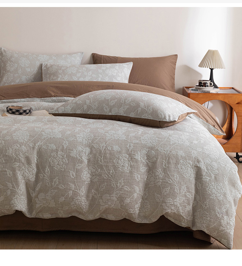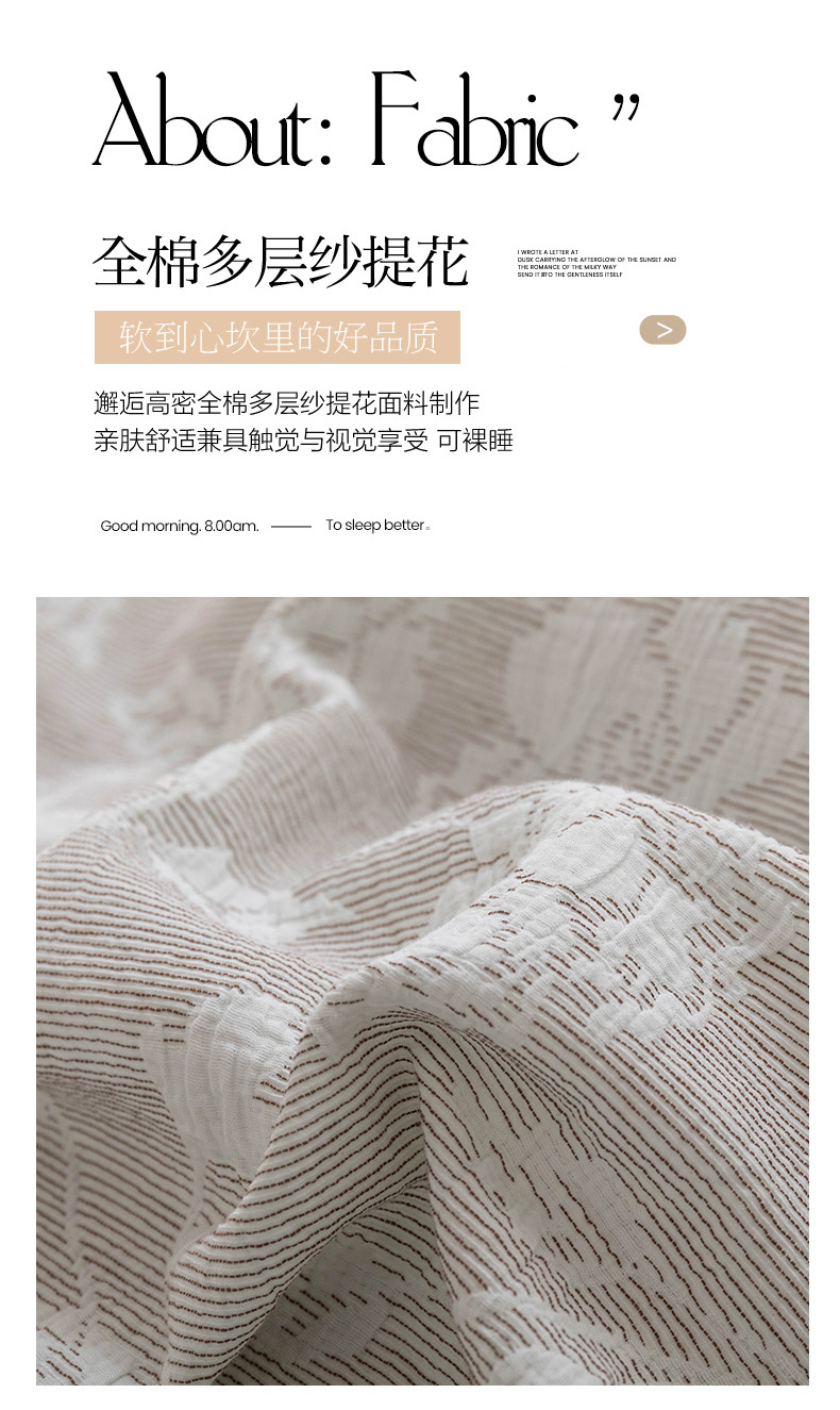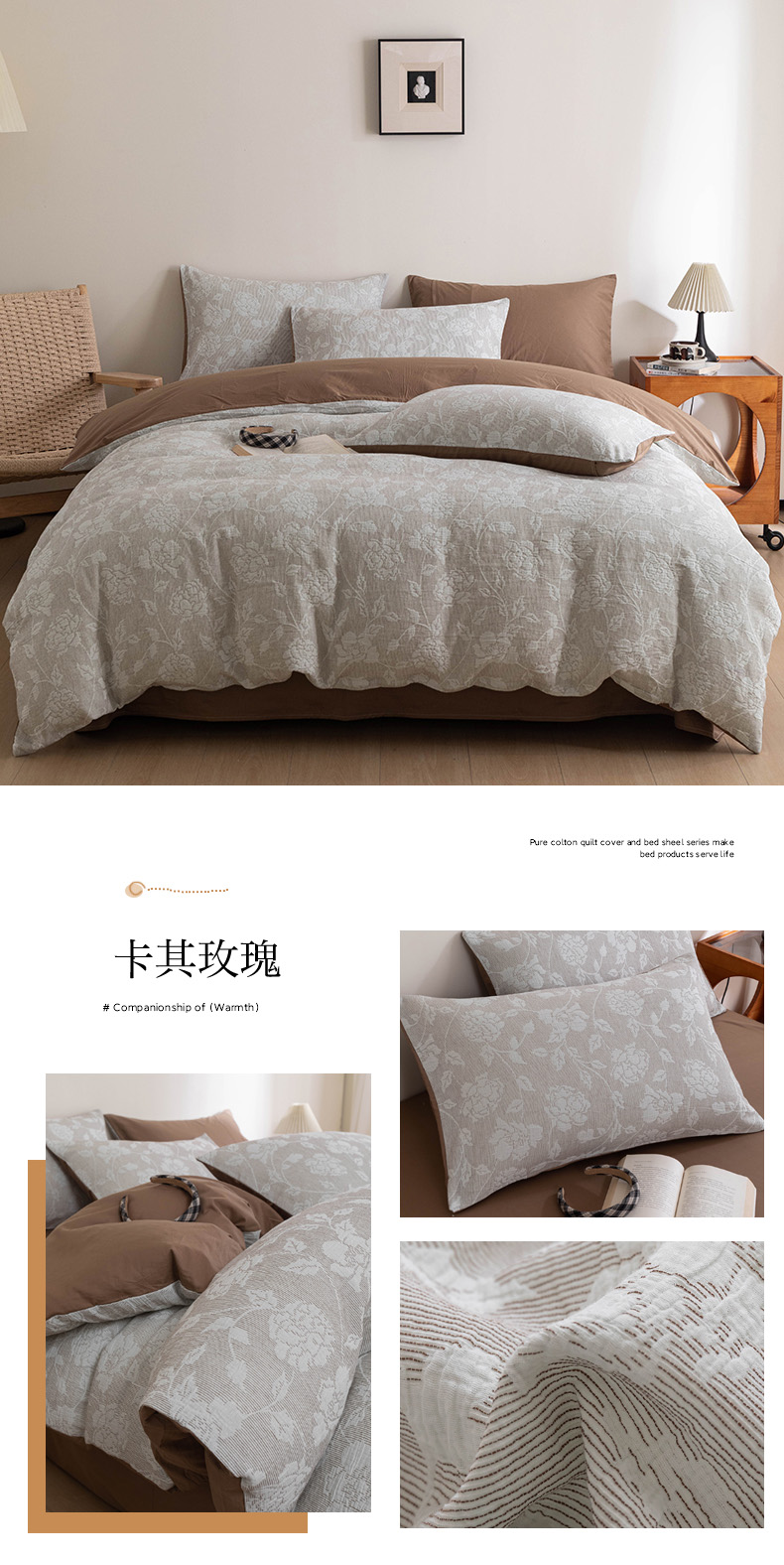 商品名称:倾慕 2025新款A类全棉多层纱玫瑰单被套系列 卡其玫瑰