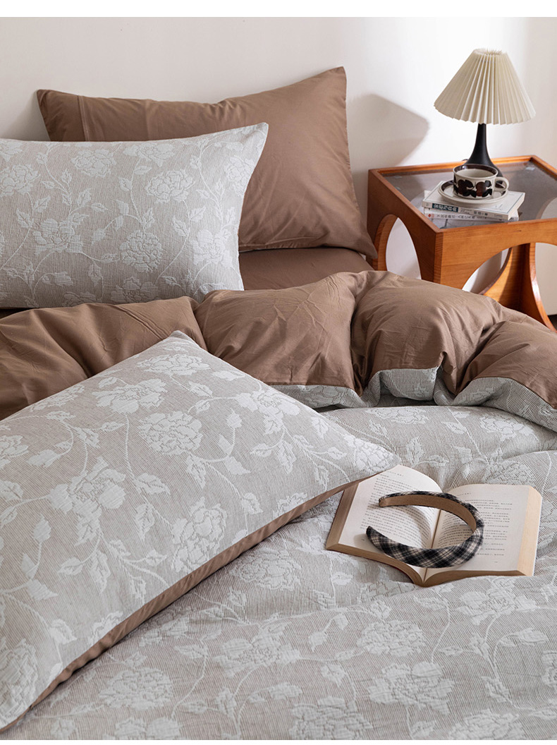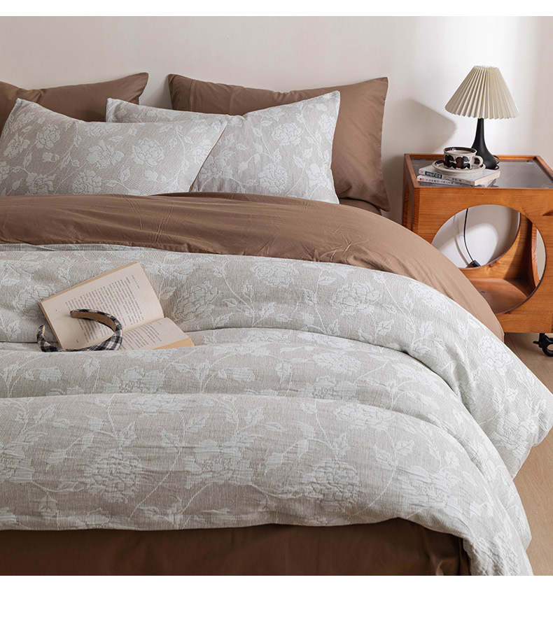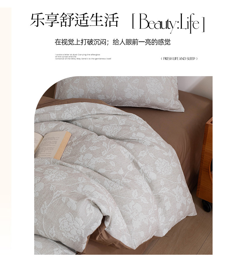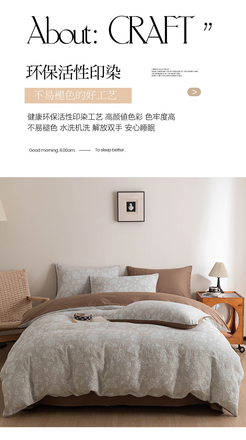 商品名称:倾慕 2025新款A类全棉多层纱玫瑰单被套系列 卡其玫瑰