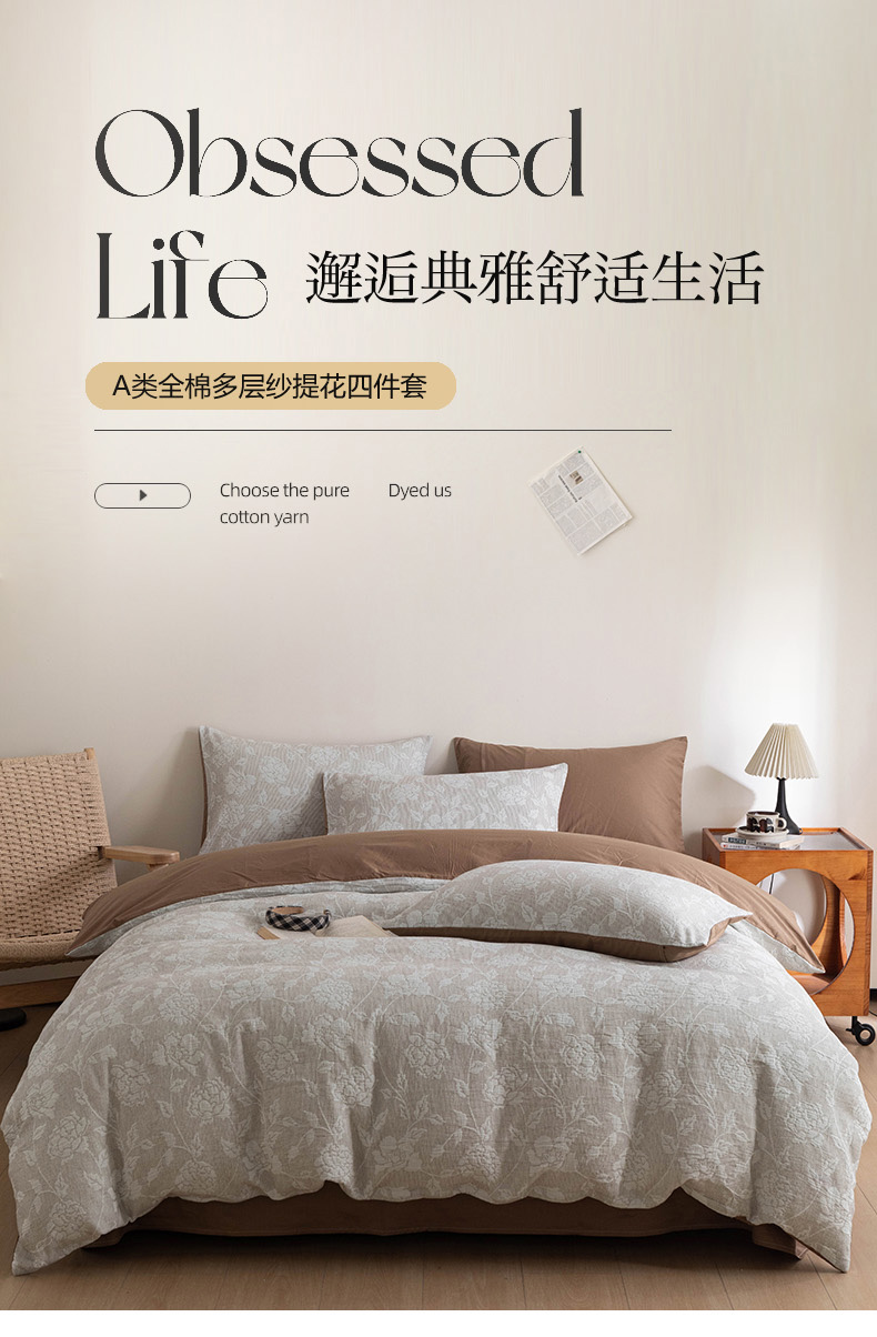 倾慕 2025新款A类全棉多层纱玫瑰单被套系列 卡其玫瑰