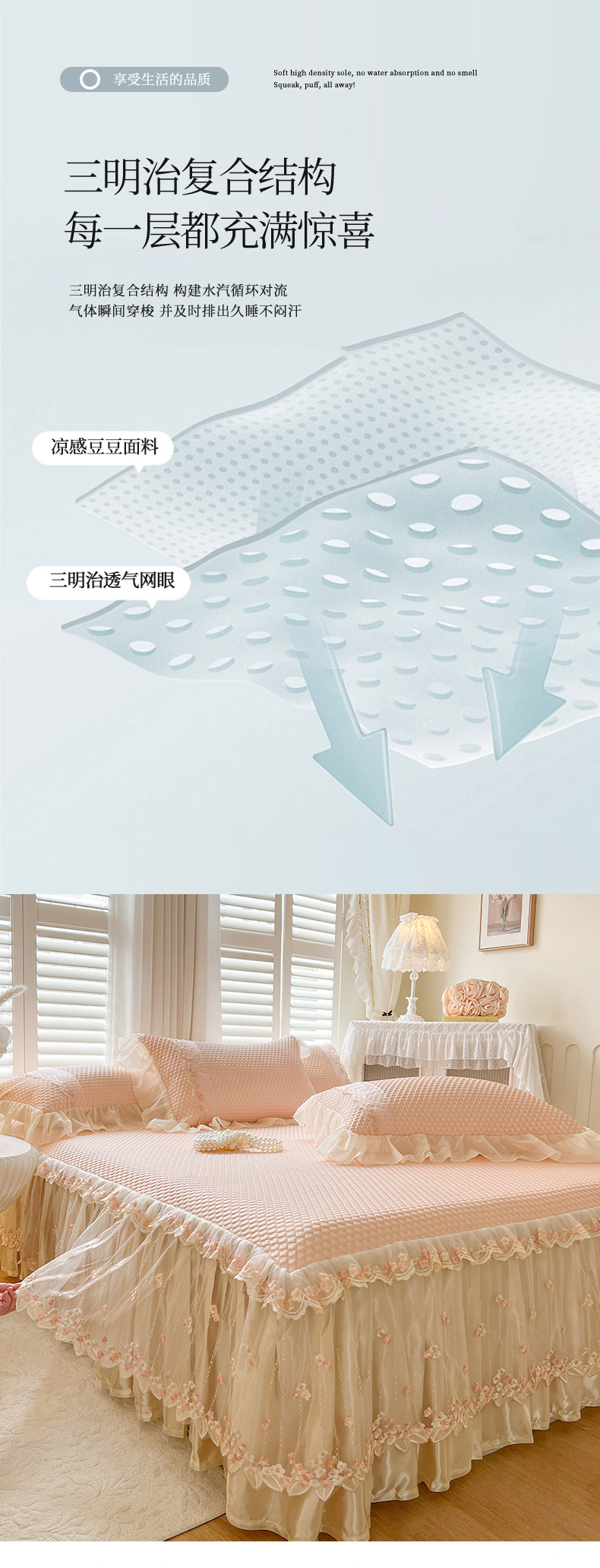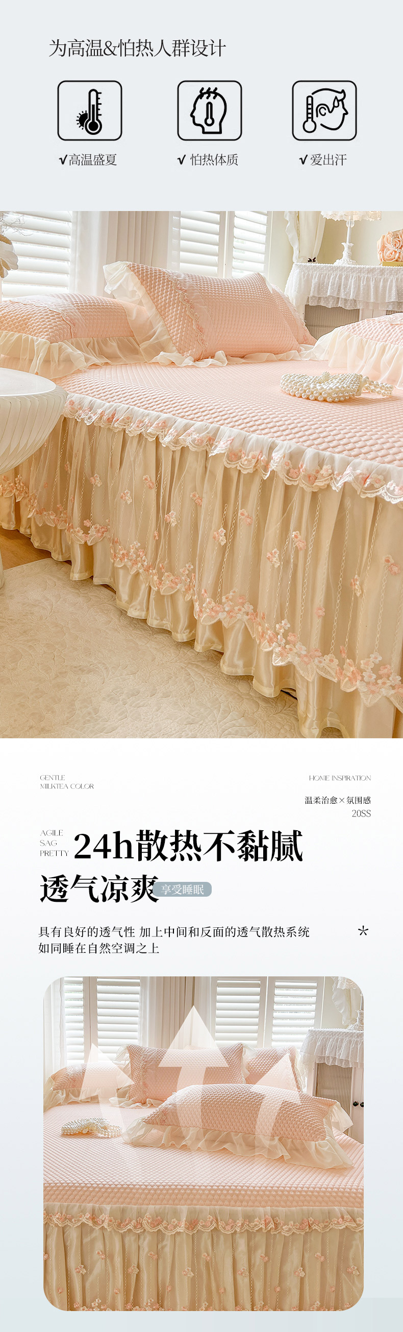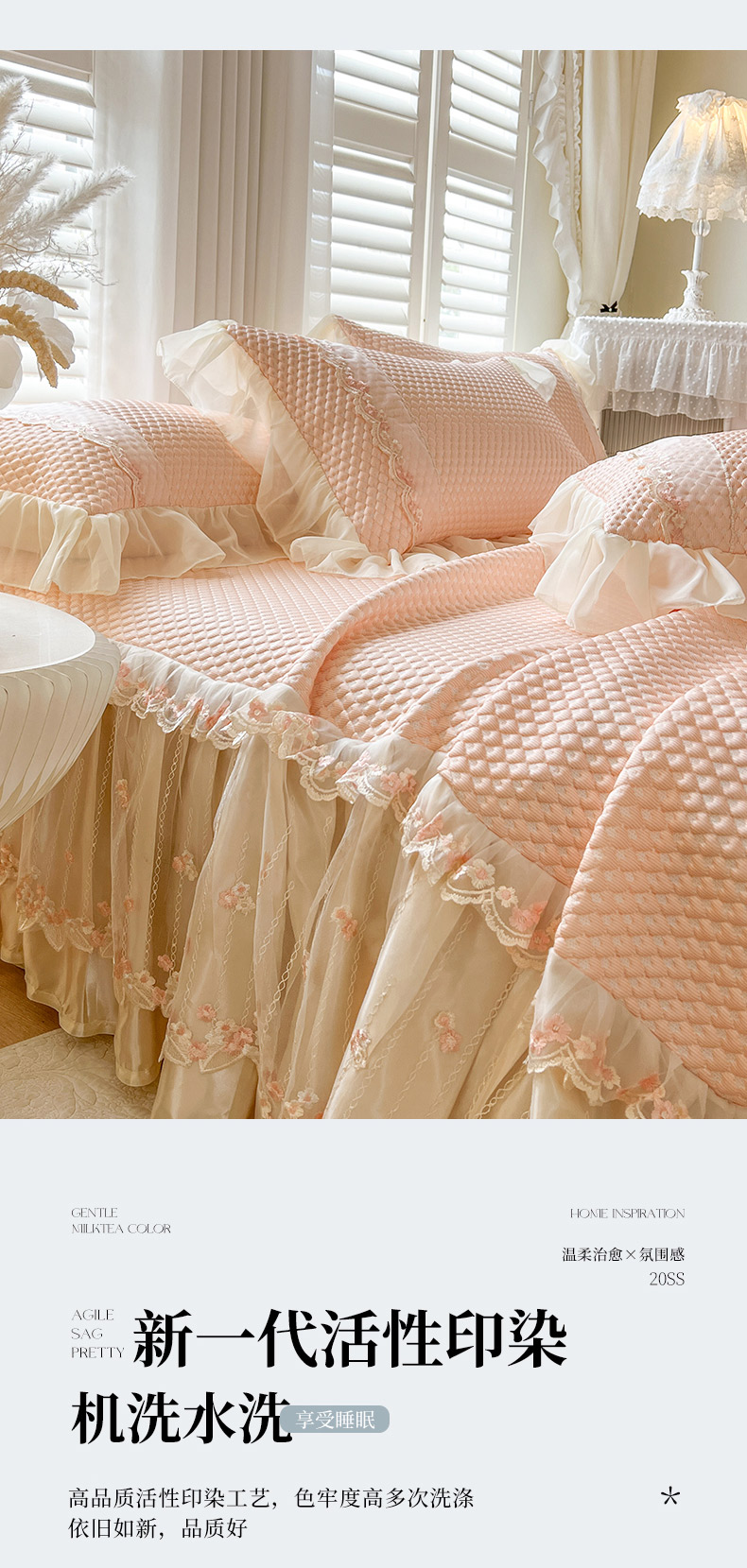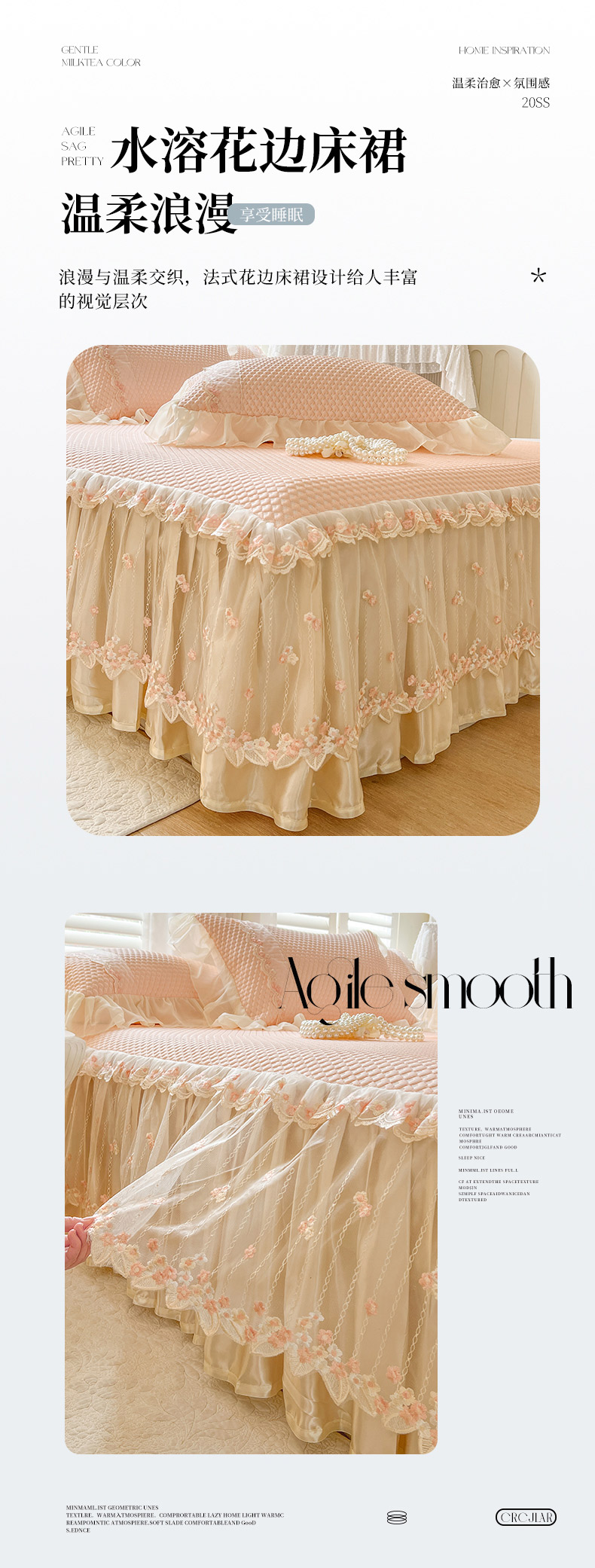 瑞宝 2025新款法式高级凉豆豆床裙三件套-花漾(控价165起) 花漾-粉玉色