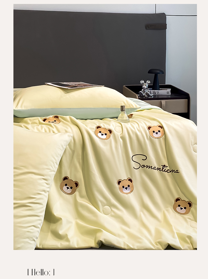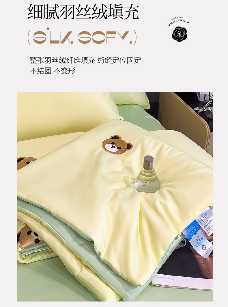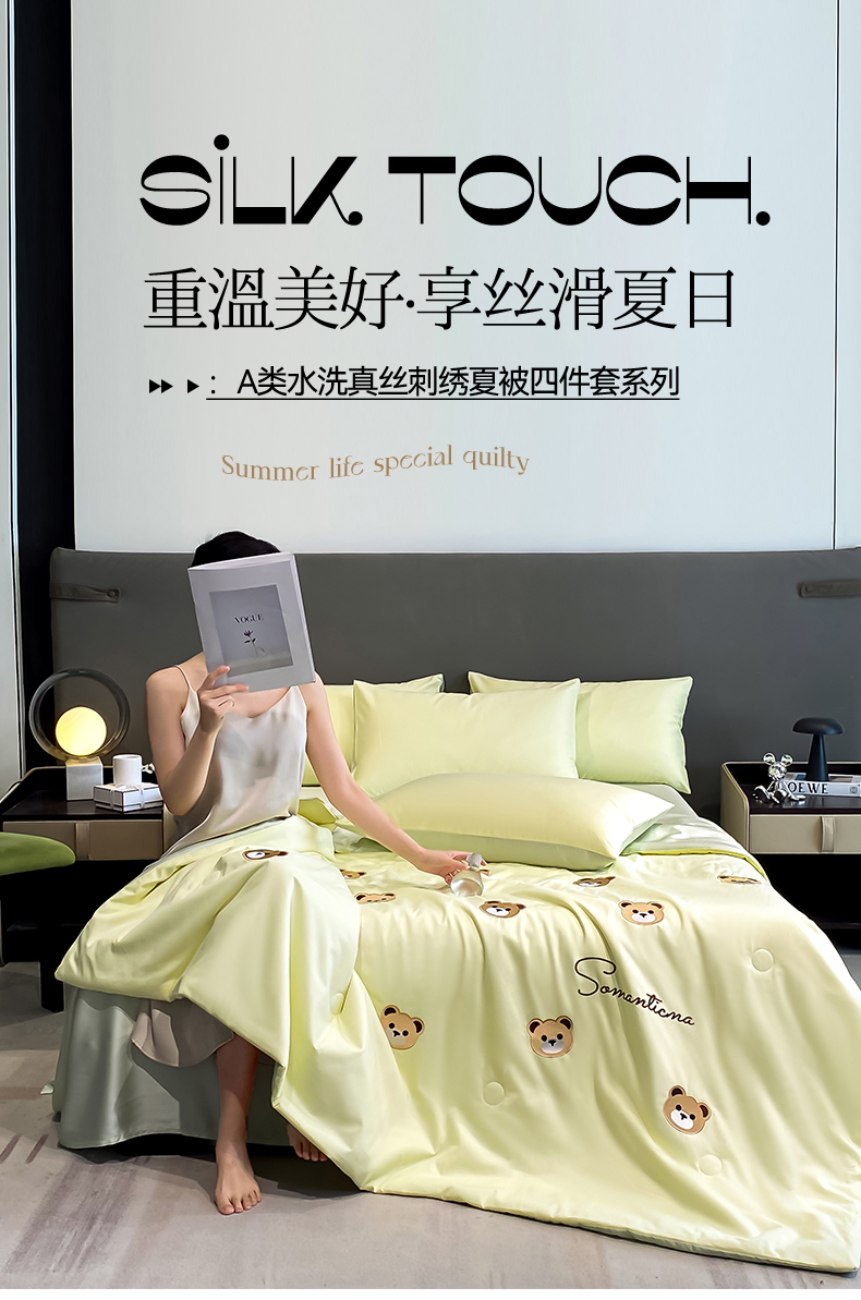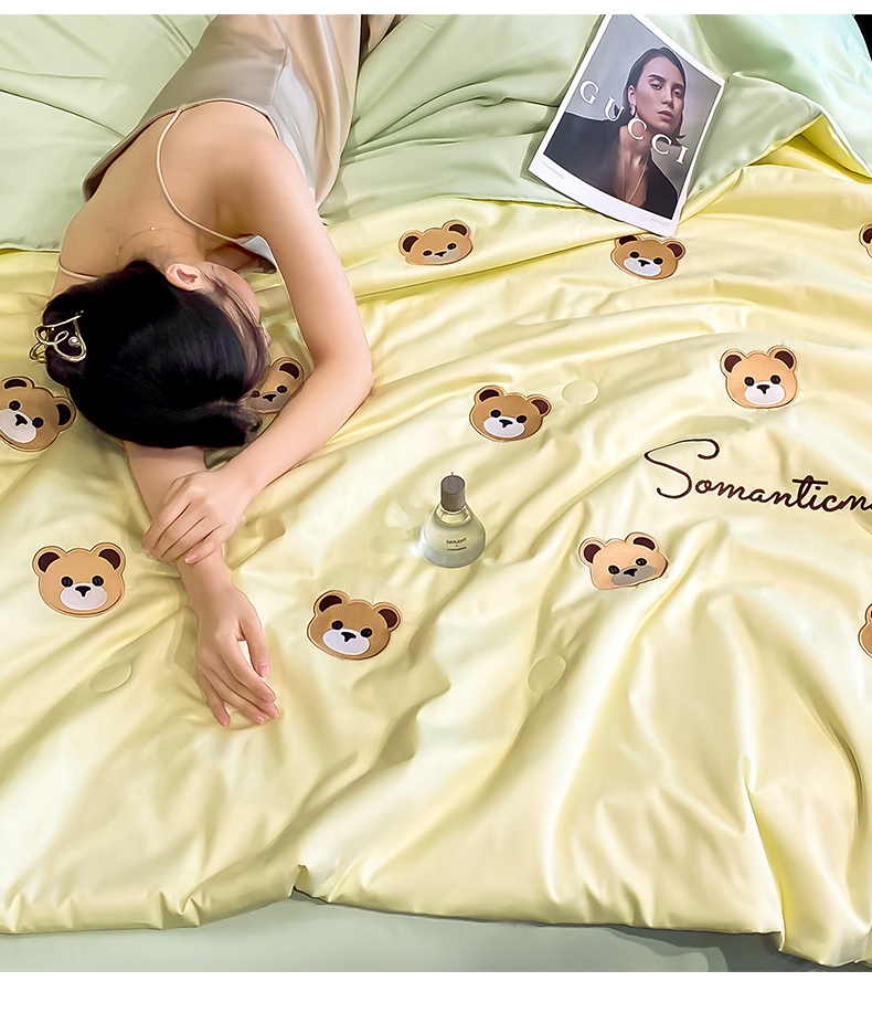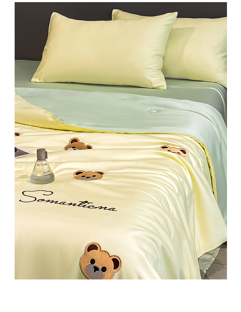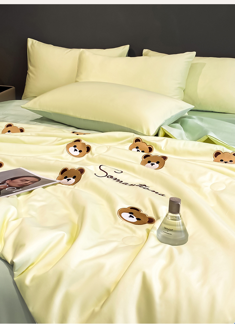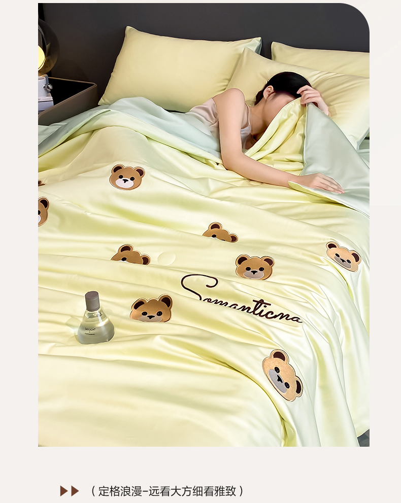 当前位置: 91家纺网 > 商品网购 > 床品套件 > 四件套 > 水洗真丝四件套 > 笙意家纺 2025新款水洗真丝夏被夏凉被空调被四件套-满绣系列 曲奇熊-奶黄+绿