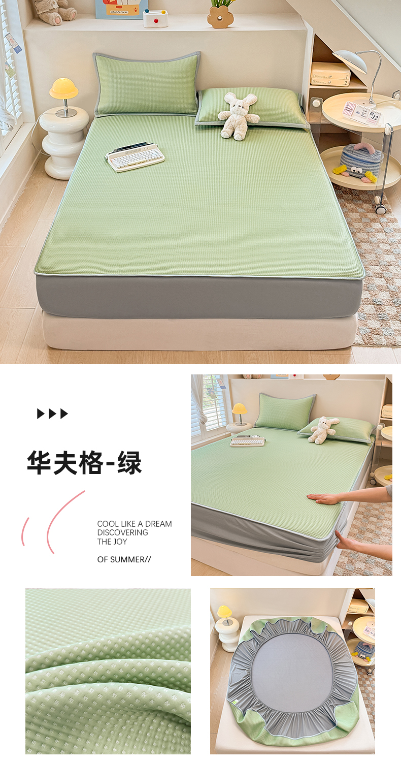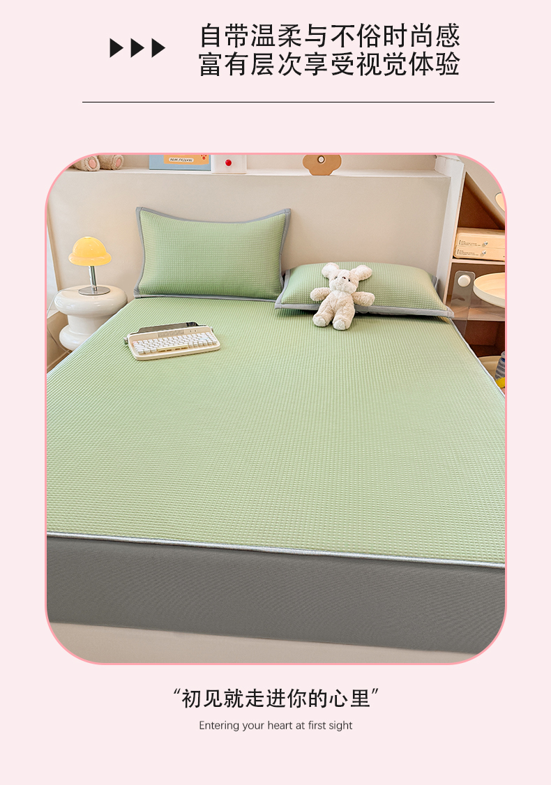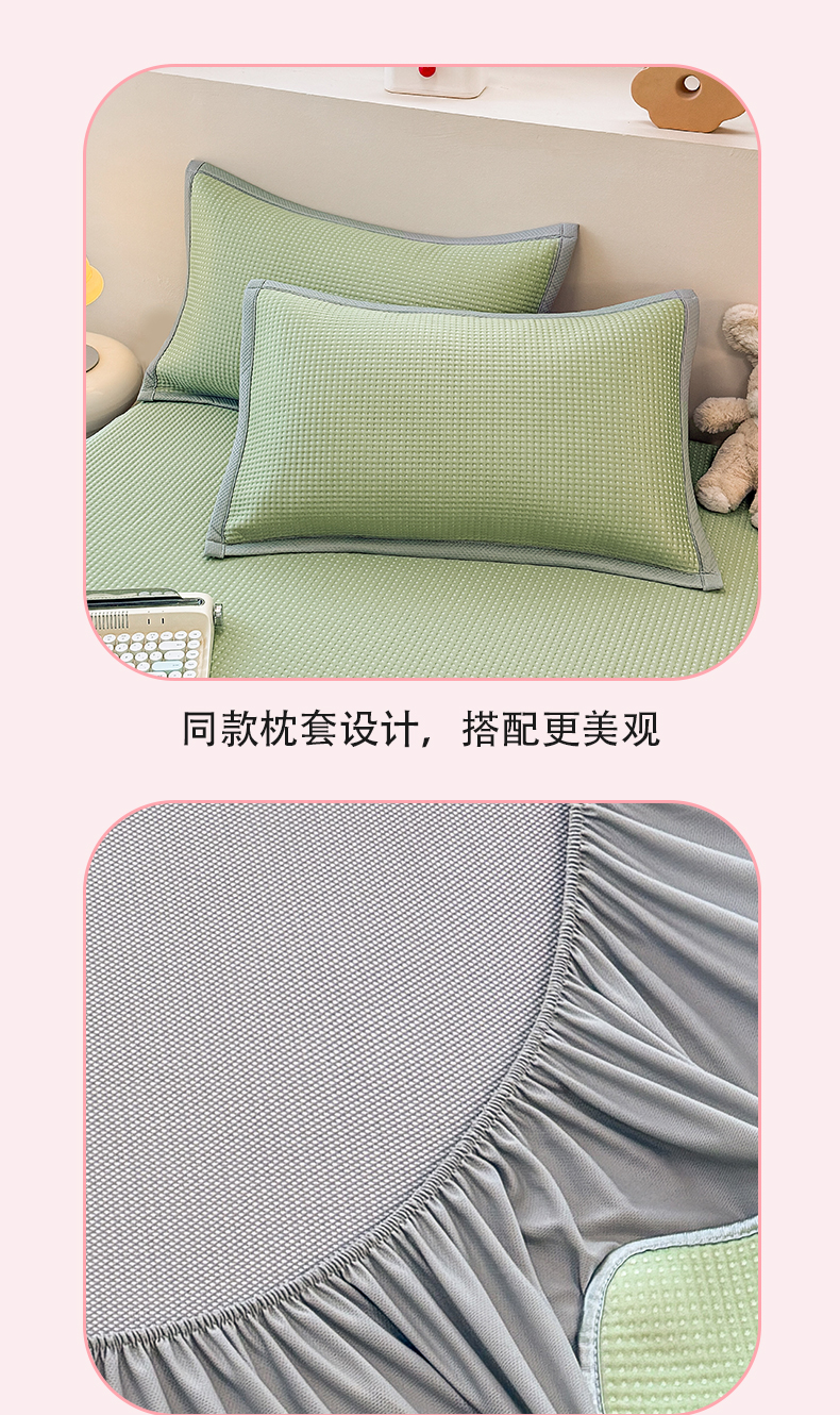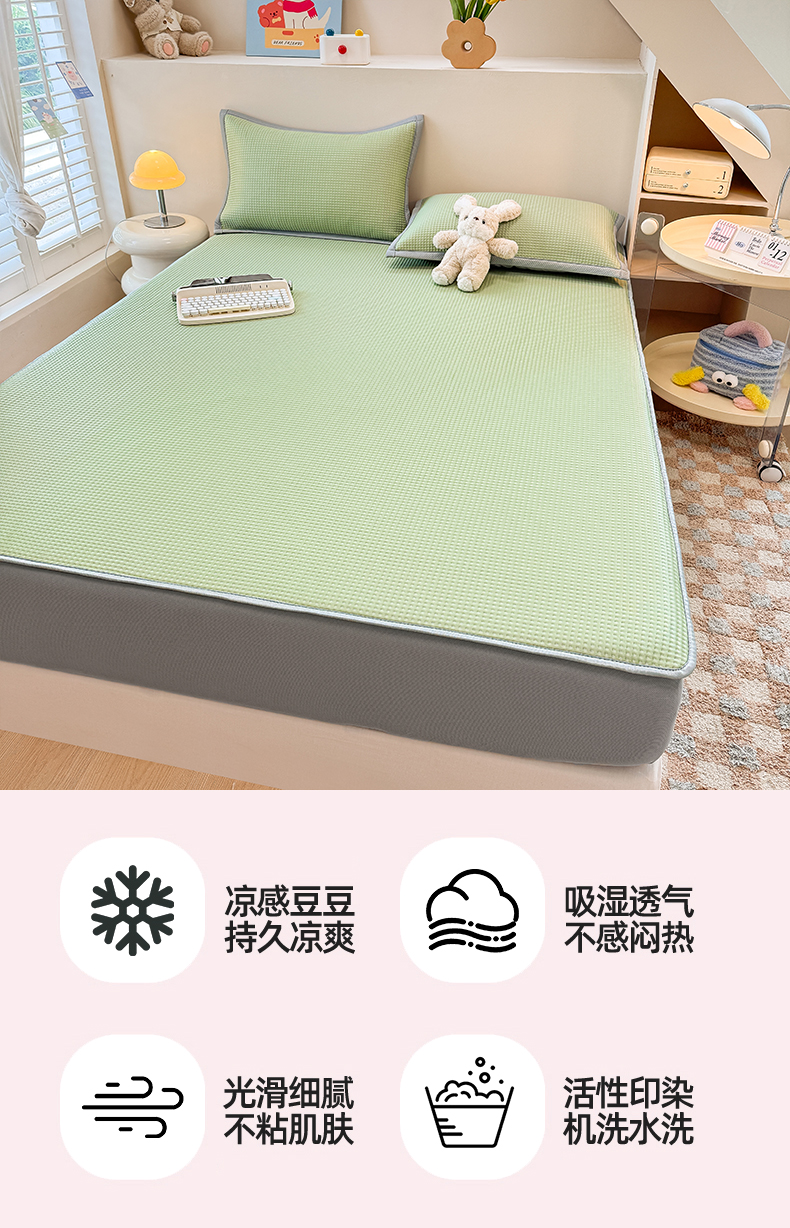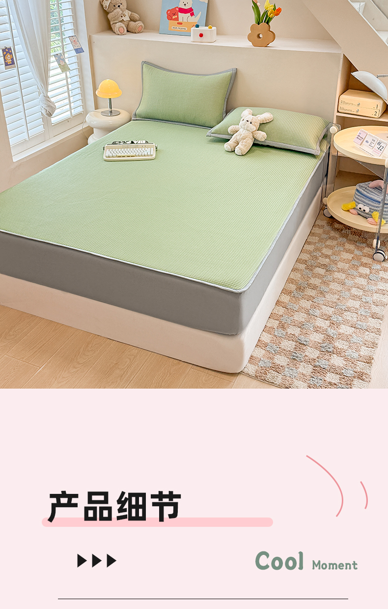 • 91家纺网 家纺一手货源 找家纺 金盛纺 2025新款冰豆豆凉席-床笠款 华夫格-绿