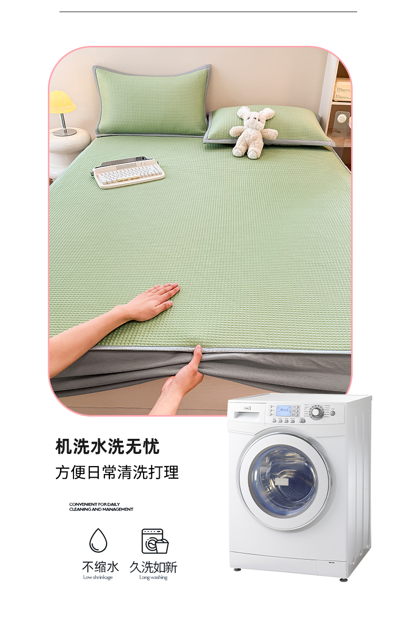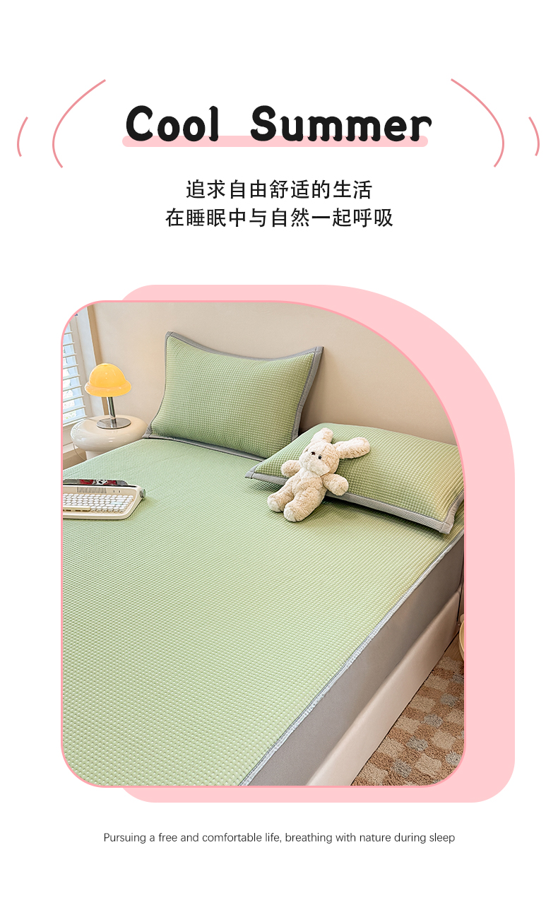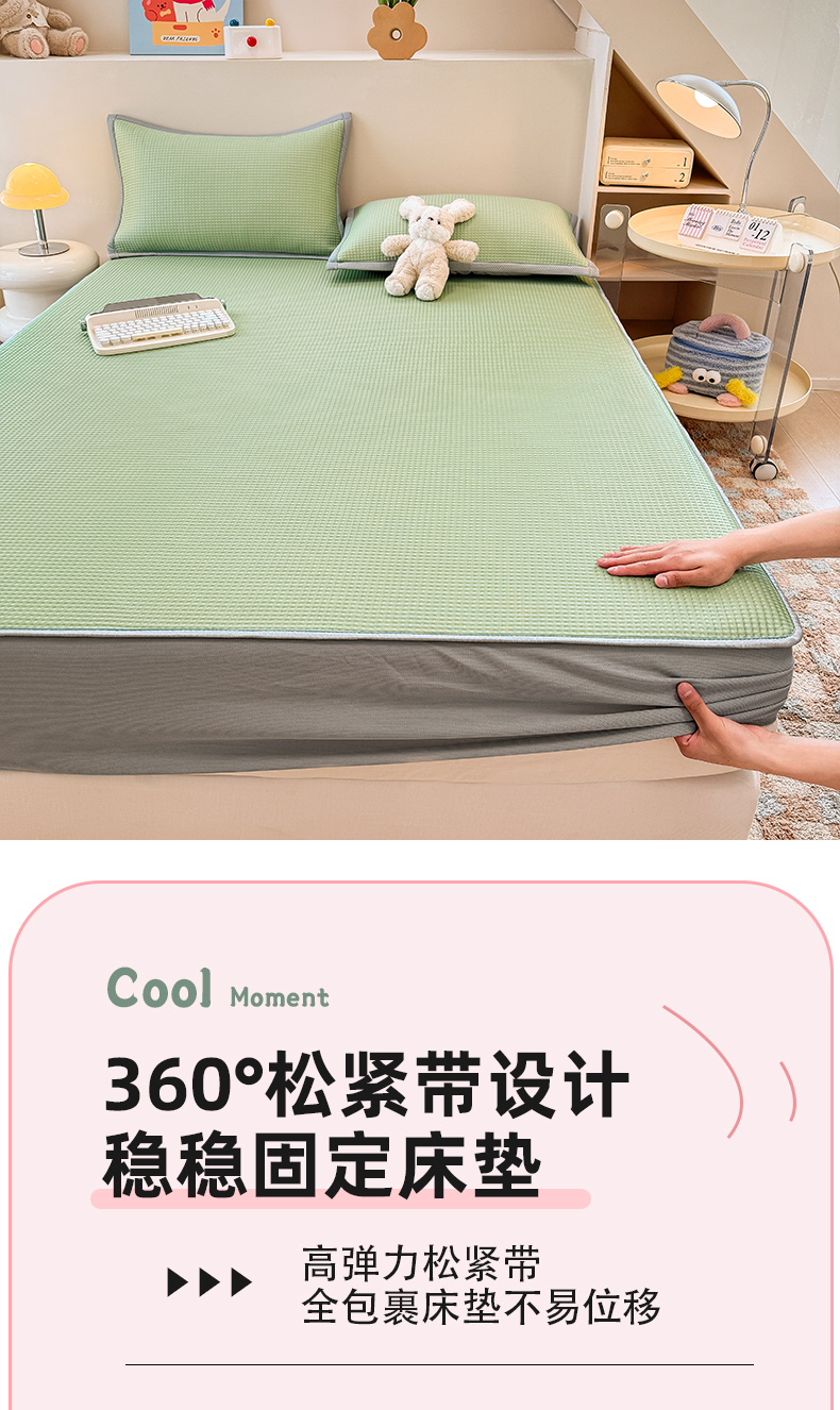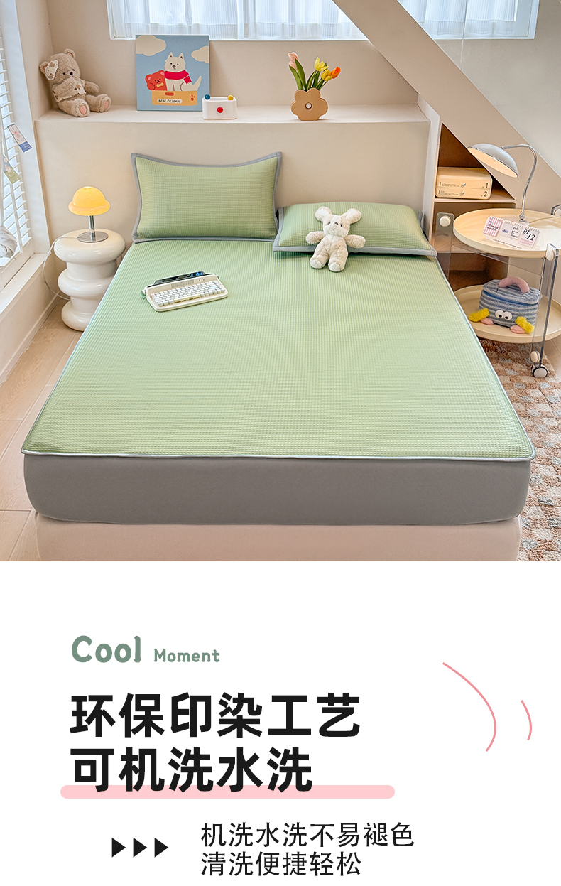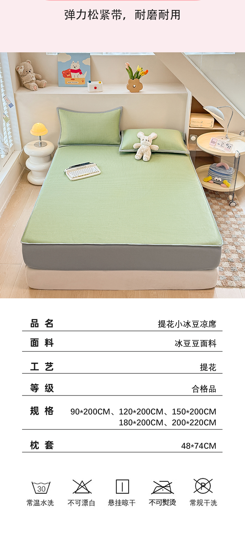 • 91家纺网 家纺一手货源 找家纺 金盛纺 2025新款冰豆豆凉席-床笠款 华夫格-绿