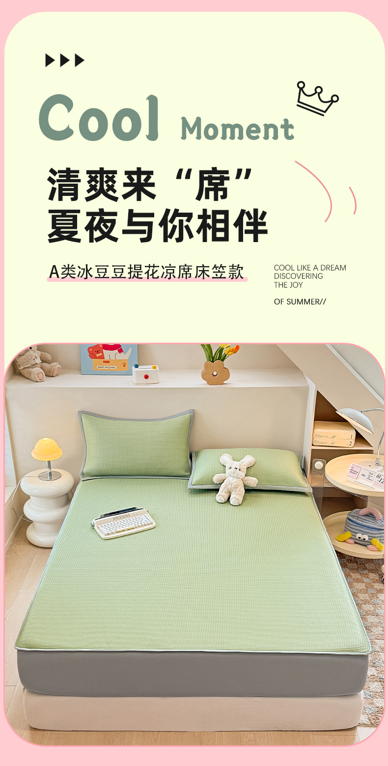 金盛纺 2025新款冰豆豆凉席-床笠款 华夫格-绿