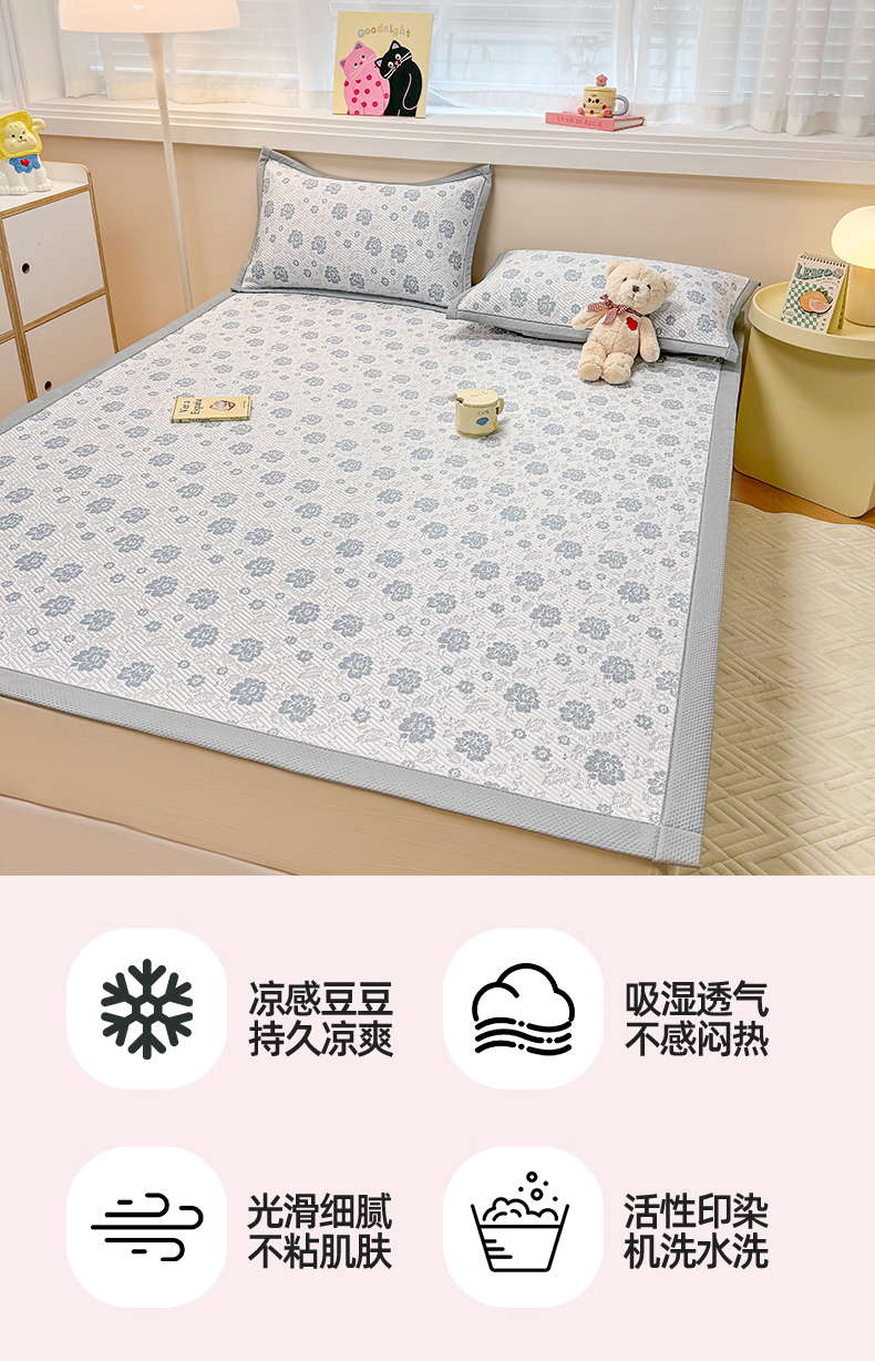 • 91家纺网 家纺一手货源 找家纺 金盛纺 2025新款冰豆豆凉席-床席款 花期-兰