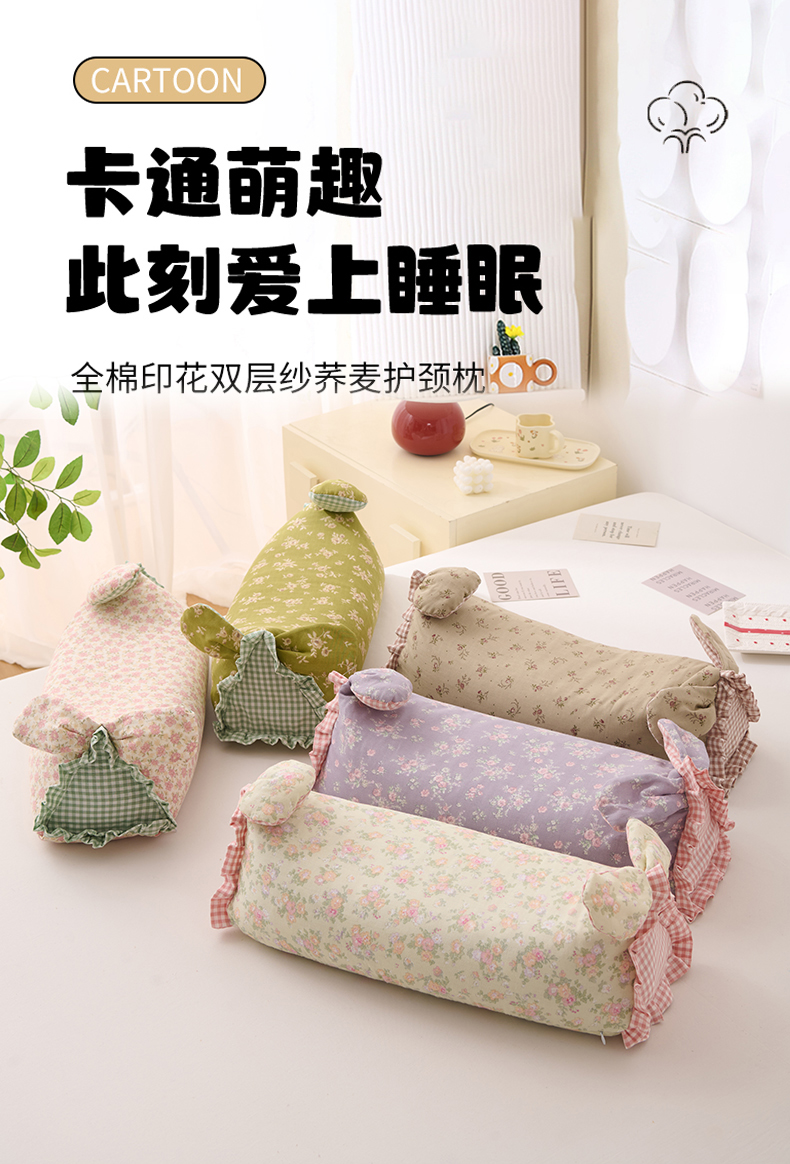 当前位置: 91家纺网 > 商品网购 > 枕头/枕芯/保健枕/颈椎枕 > 普通枕芯 > 大熊枕芯 2025新款田园风全棉印花双层纱萌趣兔子三角荞麦护颈枕枕头枕芯 田园兔三角枕-绿50*15*15cm/只